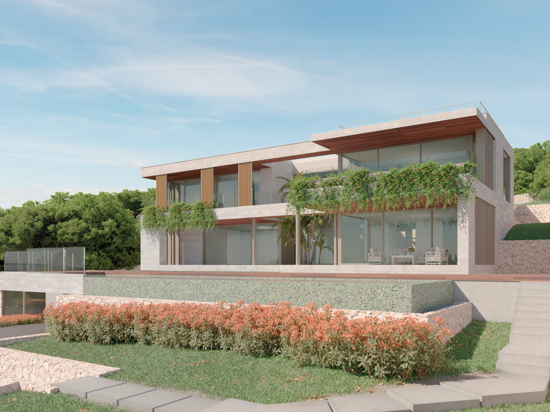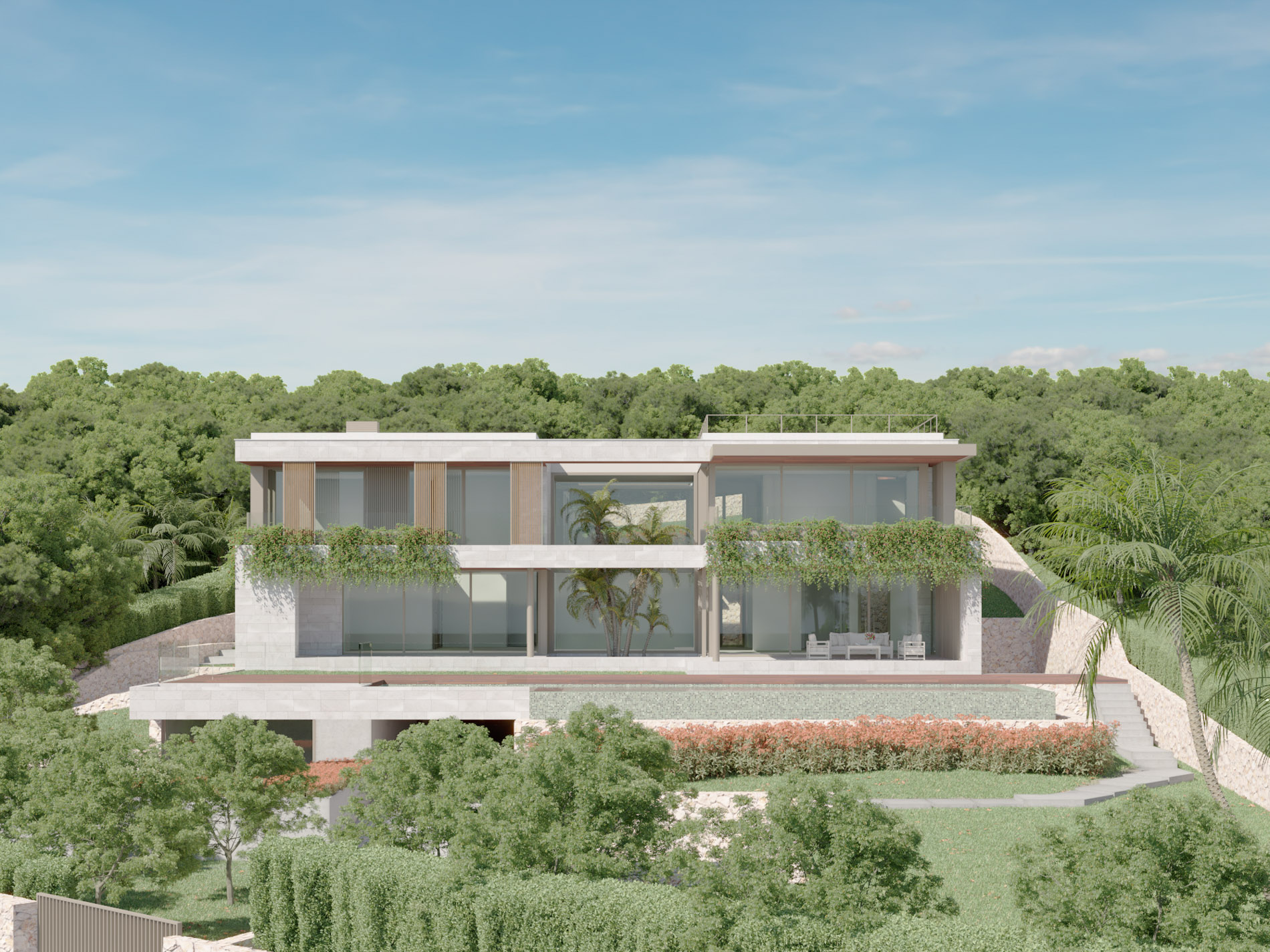 Esta espectacular villa de nueva construcción en Cas Català redefine el concepto de lujo y sostenibilidad. Con una arquitectura abierta y contemporánea, la propiedad destaca por su impresionante panorámica sobre la bahía de Bendinat, creando una experiencia visual inigualable desde cada rincón de la casa. Situada en una parcela de más de 2.100 m², ofrece una integración perfecta entre interior y exterior, maximizando la conexión con el entorno natural. El diseño combina elementos de la arquitectura tradicional española con materiales regionales y las tecnologías más avanzadas, logrando una estética atemporal sin renunciar a la eficiencia energética. La propiedad ha sido concebida para un funcionamiento casi neutro en emisiones de CO₂, apoyado por energías renovables y controlado fácilmente mediante un sistema domótico de última generación. Distribuida en espacios amplios y luminosos, la villa cuenta con seis dormitorios, seis baños y dos aseos, además de una cocina principal y una cocina secundaria completamente equipadas. El interior ha sido ejecutado con materiales de primera calidad y detalles artesanales que reflejan la maestría de los oficios locales combinados con precisión alemana. La elegancia y la funcionalidad se encuentran en perfecta armonía, desde el mobiliario hasta la iluminación. Entre sus comodidades destacan una impresionante terraza en la azotea, un ascensor privado, una piscina infinity con zona de barbacoa, sauna, gimnasio, vinoteca, chimenea y sistema de calefacción por suelo radiante con función de refrigeración. La vivienda también dispone de garaje subterráneo, trastero, estación de carga para vehículos eléctricos y paneles solares. Este proyecto exclusivo ofrece el equilibrio ideal entre sofisticación, confort y conciencia medioambiental, en una ubicación privilegiada del suroeste mallorquín.