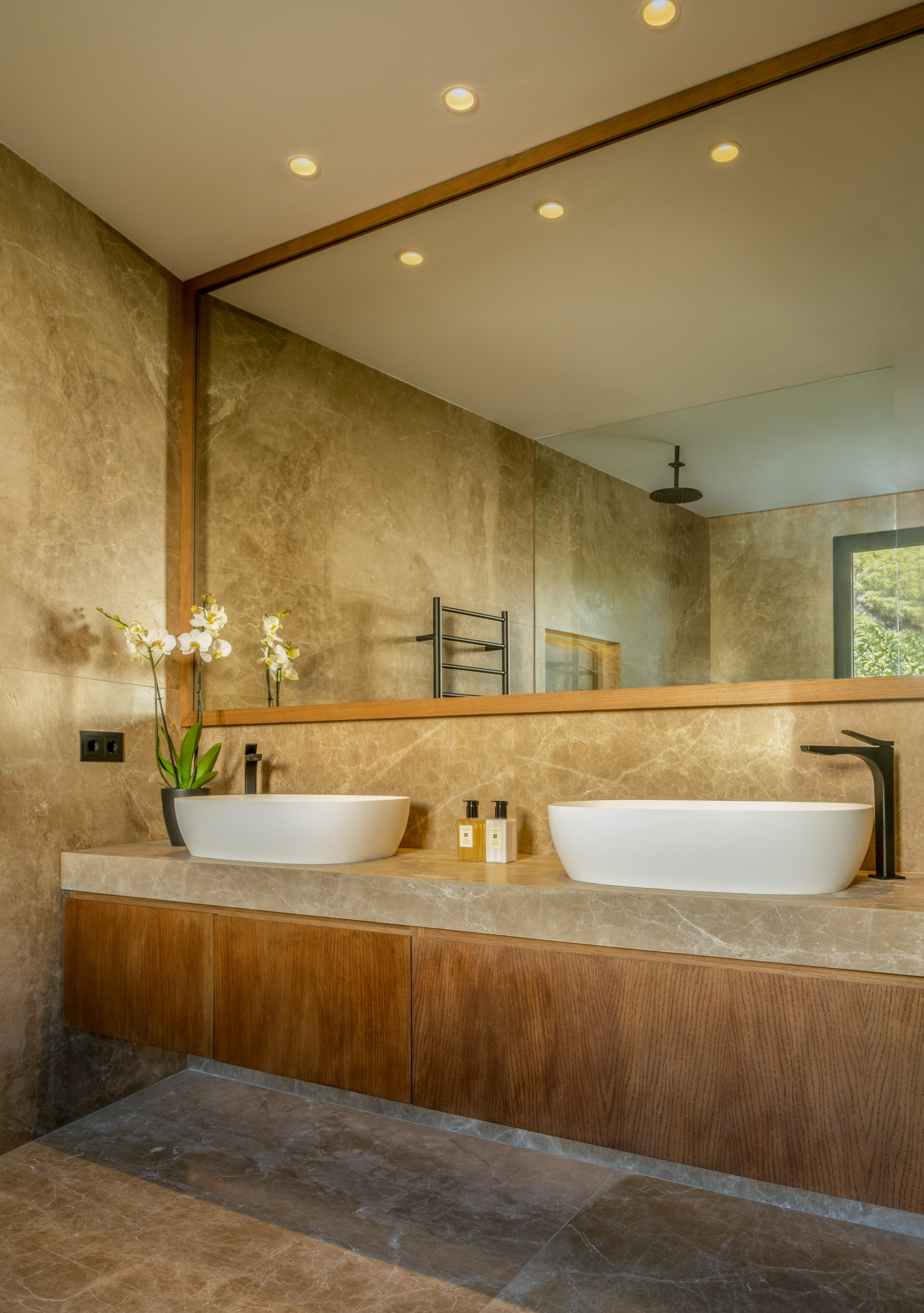 Bienvenido a un paraíso en la tierra: esta majestuosa villa, bañada por el sol mediterráneo, te espera con los brazos abiertos para brindarte una vida de ensueño. Con una ubicación envidiable en un terreno de aproximadamente 2,465m2, y un área de construcción de 900m2, esta residencia ha sido concebida con una excelencia inigualable y acabados impecables. Imagina despertar cada mañana en una de las 4 exquisitas habitaciones en suite, cada una con acceso a su propia terraza privada. Además, disfruta de una exclusiva sorpresa: un apartamento de huéspedes con cocina equipada que puede servir como una quinta habitación, brindando un espacio adicional para tus seres queridos. La suite principal es un remanso de lujo, con un amplio vestidor y un baño equipado con una lujosa bañera, donde el relax y la privacidad están asegurados. En la planta baja, un cautivador espacio abierto te recibe con una cocina de diseño y una elegante área de comedor, perfecta para deleitarse con los manjares que ofrece la isla. Desde aquí, una conexión fluida te lleva a la terraza y zona de piscina, que incluye una encantadora cocina al aire libre con barbacoa, ideal para celebrar momentos inolvidables con tus seres queridos. ¡Y eso no es todo! Los amplios ventanales panorámicos inundan de luz cada rincón de la propiedad, realzando el mobiliario de diseño que complementa con gracia cada espacio. Si buscas momentos de relajación y entretenimiento, la planta subterránea alberga un spa generoso con piscina cubierta, sauna, y gimnasio completamente equipado, además de una sala de cine para disfrutar de tus películas favoritas. Y, ¿por qué no transformar ese espacioso cuarto en una sala de billar? MallorcaSite, su agencia inmobiliaria en Mallorca, recomienda esta joya de propiedad por su perfecto equilibrio entre elegancia, calidad y privacidad. Es el hogar perfecto para una vida moderna y llena de comodidades, donde cada día será una celebración de la belleza y la serenidad que solo Mallorca puede ofrecer.
