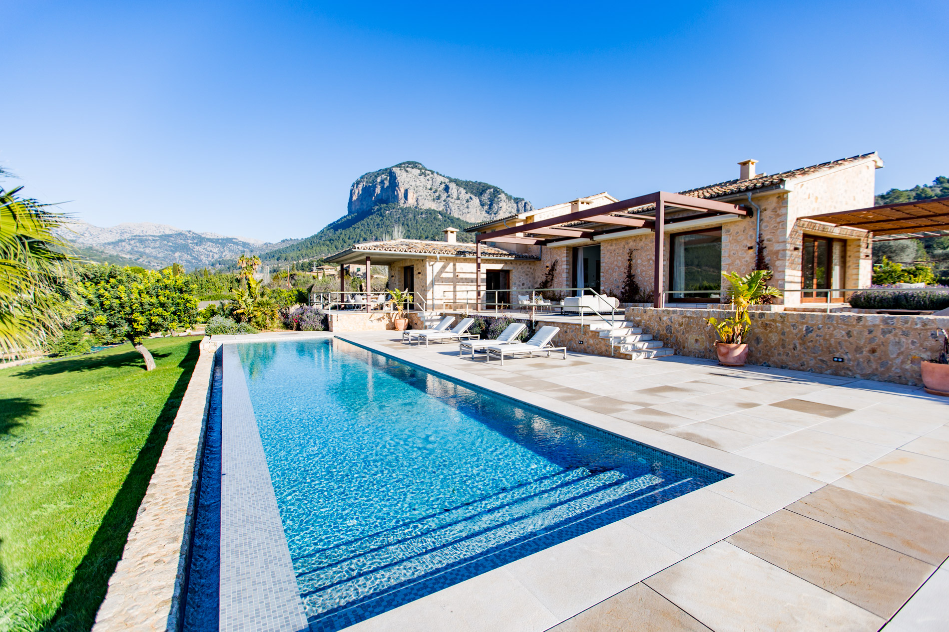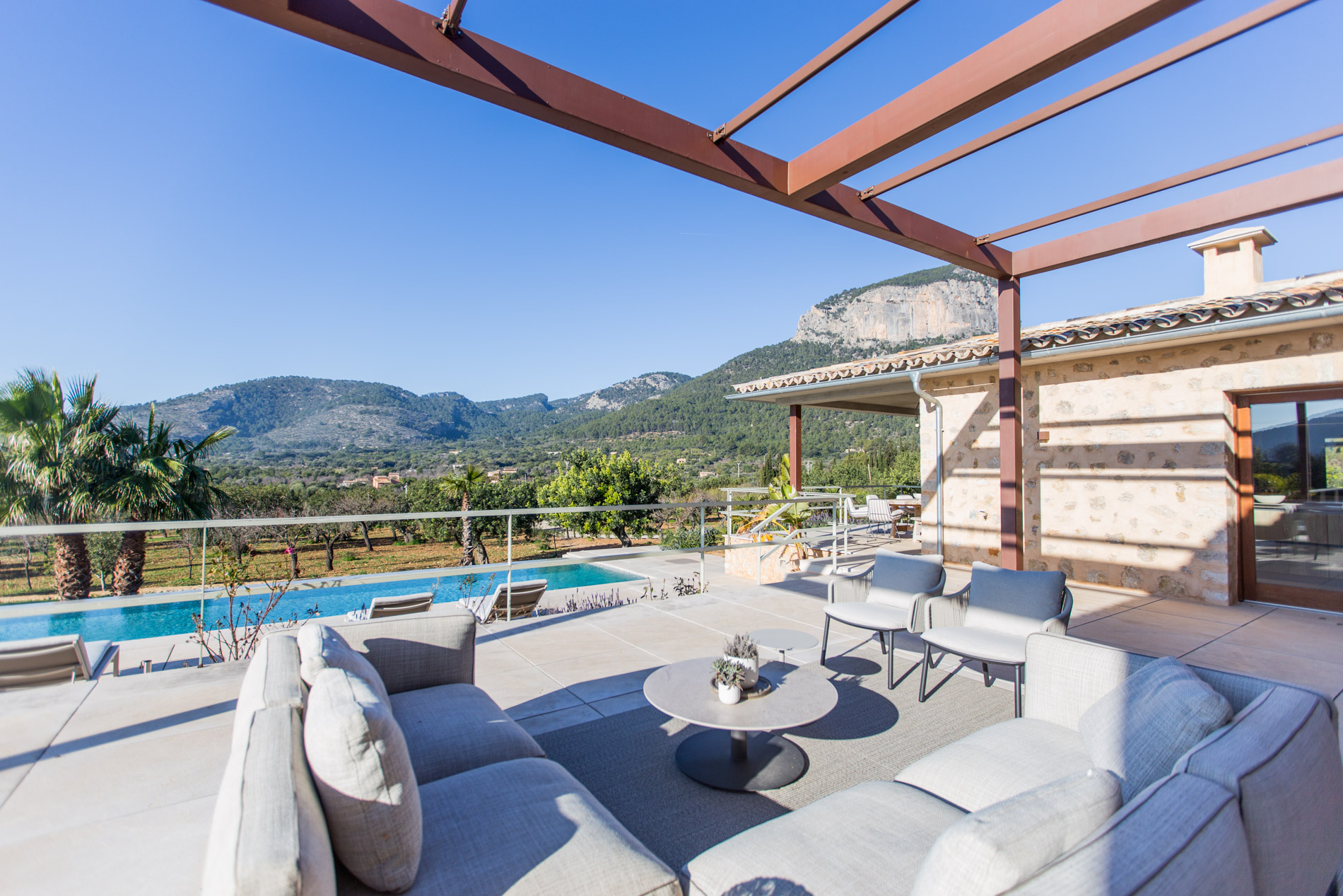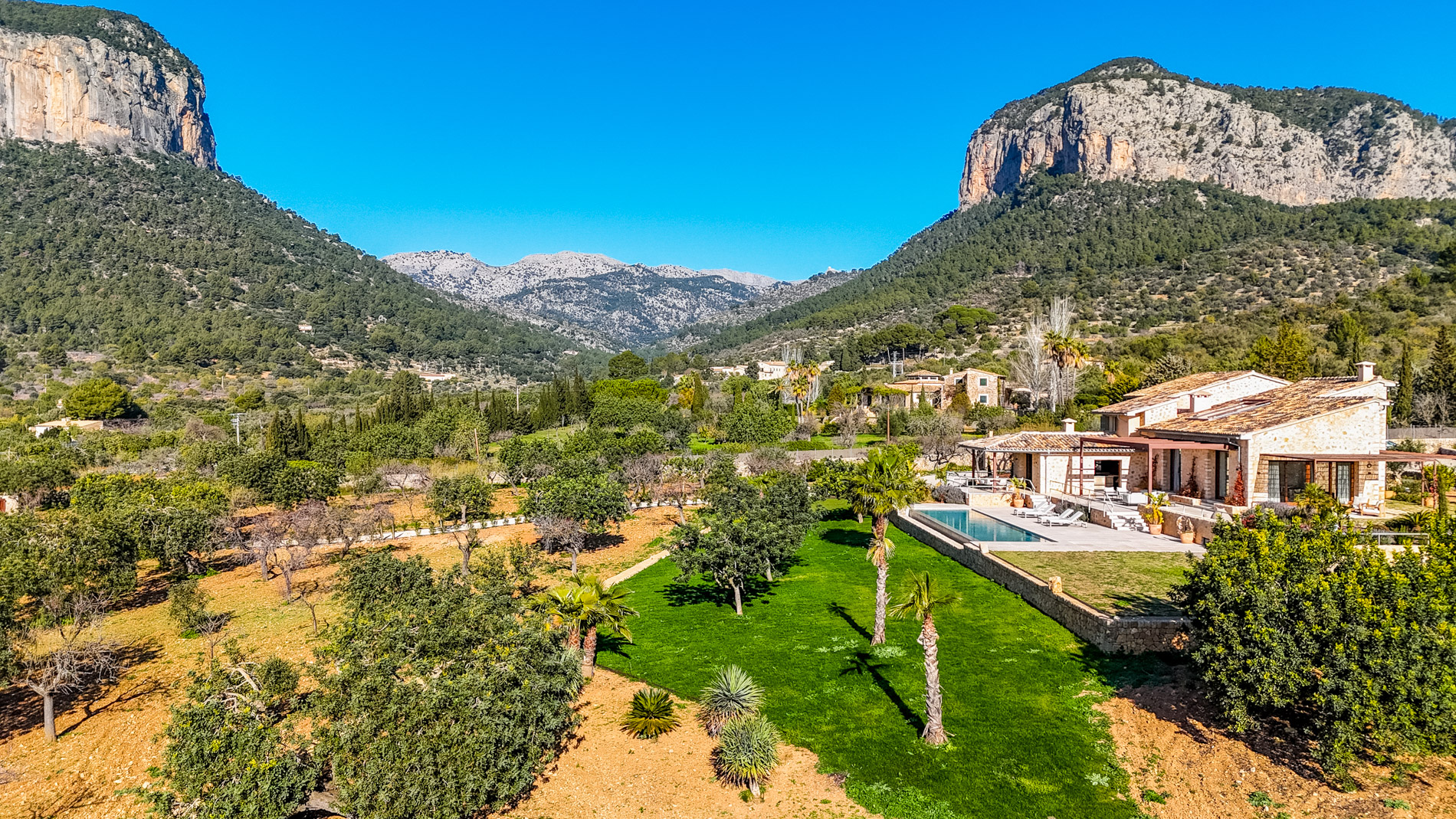 ¡Descubre el paraíso en el corazón del valle de Alaró! Con impresionantes vistas panorámicas que abarcan el valle, los árboles frutales y las majestuosas montañas gemelas: Puig del Castell y s'Alcadena, con el imponente Puig Major en el horizonte, este lugar es un verdadero paraíso para los amantes de la naturaleza y la serenidad.La finca cuenta con una extensión de terreno privilegiada, donde se encuentran olivos centenarios que producen aproximadamente 300 litros de aceite de oliva mallorquín al año, un campo de algarrobos, naranjos, limoneros y almendros, brindando una conexión auténtica con la tierra y sus frutos.La casa principal, de nueva construcción y diseñada con materiales nobles como la piedra y la madera natural, ofrece un estilo de vida sofisticado y confortable. Con un amplio salón-comedor inundado de luz natural gracias a sus grandes ventanales y skylights, un encantador patio interior con un olivo, y una moderna cocina equipada con isla y electrodomésticos Gaggenau, cada espacio ha sido cuidadosamente diseñado para ofrecer una experiencia de vida excepcional.El sótano cuenta con una bodega perfectamente acondicionada, así como una zona de gimnasio con spa, que incluye jacuzzi y sauna, para relajarse y rejuvenecer en la comodidad del hogar. El gran garaje con capacidad para 4 coches.En el exterior, destacar sus amplias terrazas y su impresionante piscina de 16 metros de largo.Además, la propiedad cuenta con una encantadora casa de invitados de 150 m2, con su propia piscina privada y acceso independiente. MallorcaSite, su agencia inmobiliaria en Mallorca, le recomienda esta propiedad por estar en un lugar fantástico, por estar cerca de un bonito pueblo como Alaró, por las vistas, por el diseño interior y exterior de la vivienda, por la amplitud de la vivienda.