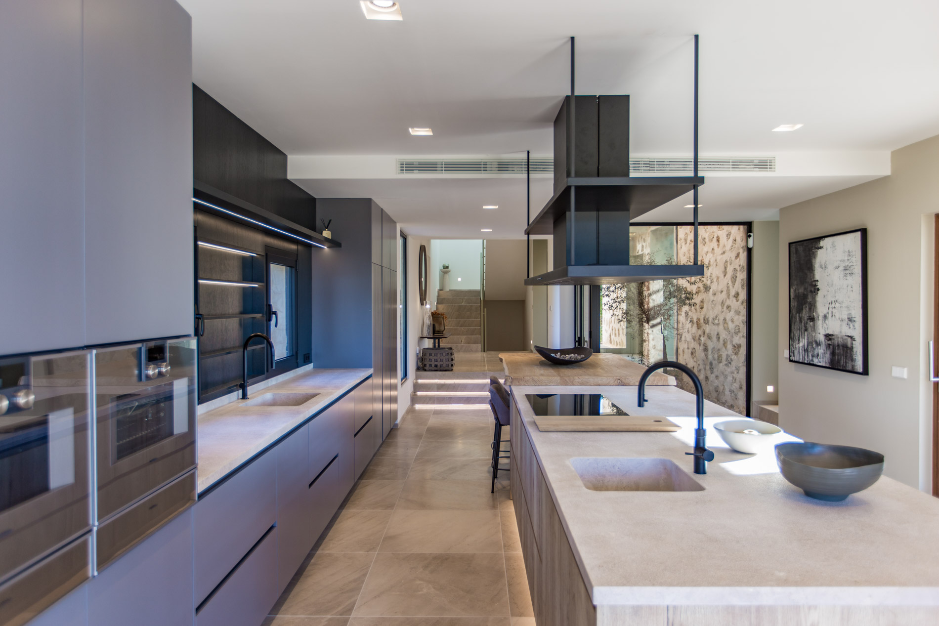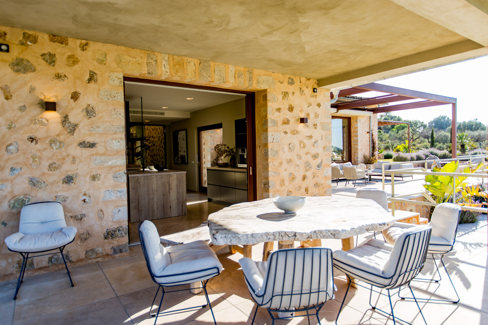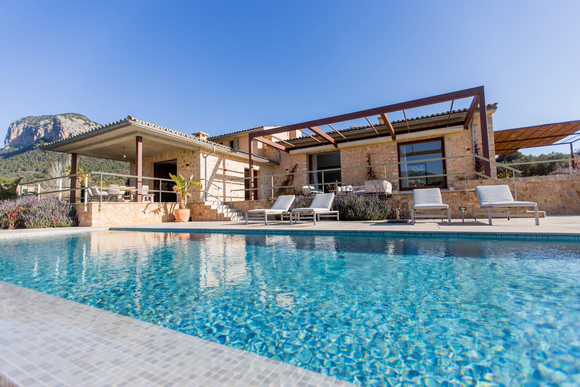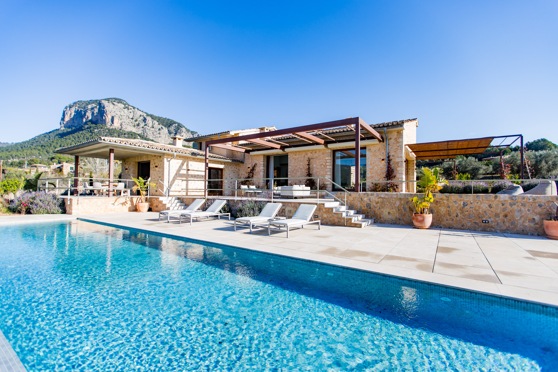 ¡Descubre el paraíso en el corazón del valle de Alaró! Con impresionantes vistas panorámicas que abarcan el valle, los árboles frutales y las majestuosas montañas gemelas: Puig del Castell y s'Alcadena, con el imponente Puig Major en el horizonte, este lugar es un verdadero paraíso para los amantes de la naturaleza y la serenidad.La finca cuenta con una extensión de terreno privilegiada, donde se encuentran olivos centenarios que producen aproximadamente 300 litros de aceite de oliva mallorquín al año, un campo de algarrobos, naranjos, limoneros y almendros, brindando una conexión auténtica con la tierra y sus frutos.La casa principal, de nueva construcción y diseñada con materiales nobles como la piedra y la madera natural, ofrece un estilo de vida sofisticado y confortable. Con un amplio salón-comedor inundado de luz natural gracias a sus grandes ventanales y skylights, un encantador patio interior con un olivo, y una moderna cocina equipada con isla y electrodomésticos Gaggenau, cada espacio ha sido cuidadosamente diseñado para ofrecer una experiencia de vida excepcional.El sótano cuenta con una bodega perfectamente acondicionada, así como una zona de gimnasio con spa, que incluye jacuzzi y sauna, para relajarse y rejuvenecer en la comodidad del hogar. El gran garaje con capacidad para 4 coches.En el exterior, destacar sus amplias terrazas y su impresionante piscina de 16 metros de largo.Además, la propiedad cuenta con una encantadora casa de invitados de 150 m2, con su propia piscina privada y acceso independiente. MallorcaSite, su agencia inmobiliaria en Mallorca, le recomienda esta propiedad por estar en un lugar fantástico, por estar cerca de un bonito pueblo como Alaró, por las vistas, por el diseño interior y exterior de la vivienda, por la amplitud de la vivienda.