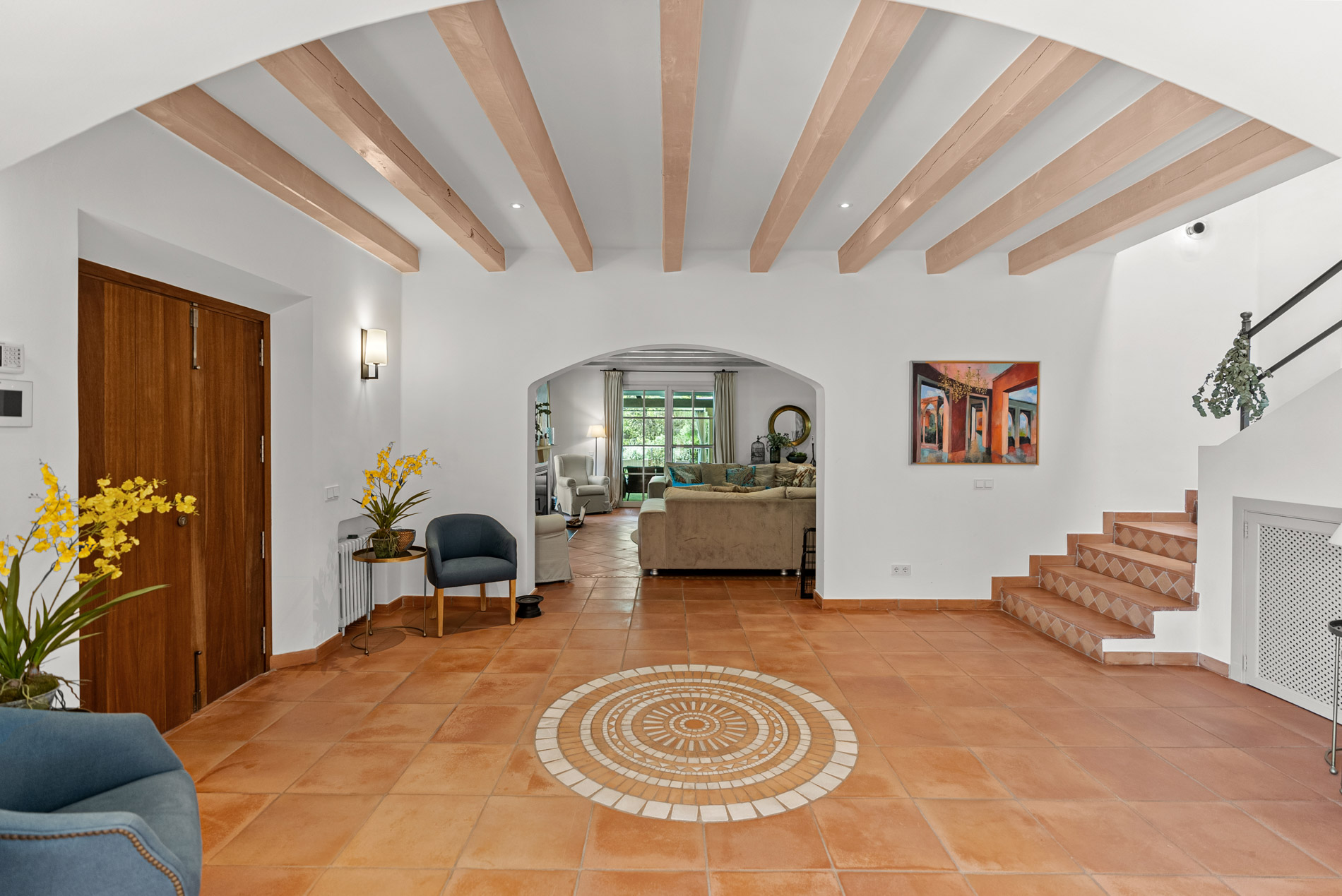 En una de las zonas más discretas y valoradas del suroeste de Mallorca, esta finca se revela como un refugio de calma absoluta, rodeado de naturaleza y con vistas abiertas al mar que garantizan privacidad y una sensación constante de amplitud. El conjunto se asienta sobre una extensa parcela, donde el paisaje mediterráneo envuelve la arquitectura y acompaña cada recorrido por la propiedad. La vivienda principal se distribuye en varios niveles pensados para una vida cómoda y fluida, con espacios generosos que combinan carácter tradicional y funcionalidad contemporánea. El corazón de la casa lo ocupa un amplio salón con chimenea, cálido y acogedor, que se abre de forma natural hacia la cocina y el comedor, creando un ambiente ideal tanto para el día a día como para recibir invitados. Desde aquí, las terrazas cubiertas prolongan la vida interior hacia el exterior, con vistas al jardín y a la piscina infinita de agua salina, climatizable, que se integra con elegancia en el entorno. La propiedad ofrece múltiples dormitorios y zonas de invitados, incluyendo áreas independientes que aportan flexibilidad y privacidad, ideales para familia, amigos o personal de servicio. Los materiales naturales, como los suelos de piedra, refuerzan el carácter mediterráneo de la finca, mientras que equipamientos como la climatización, la calefacción central y los sistemas de seguridad garantizan confort durante todo el año. El exterior ha sido concebido como un verdadero espacio de disfrute: jardines amplios, zonas de descanso, cocina exterior, barbacoa, ducha al aire libre, sauna y área de fitness junto a la piscina crean un entorno pensado para el bienestar y la vida social. Todo ello acompañado por una cuidada infraestructura técnica, amplias zonas de almacenamiento, garaje doble y accesos cómodos. Además, la finca ofrece un atractivo excepcional para quienes buscan personalizar su hogar en Mallorca, con la posibilidad de una redefinición arquitectónica completa, manteniendo una base sólida y un enclave difícil de igualar. MallorcaSite recomienda esta propiedad como una oportunidad única para crear una residencia privada de carácter, privacidad y vistas privilegiadas en el suroeste de la isla.