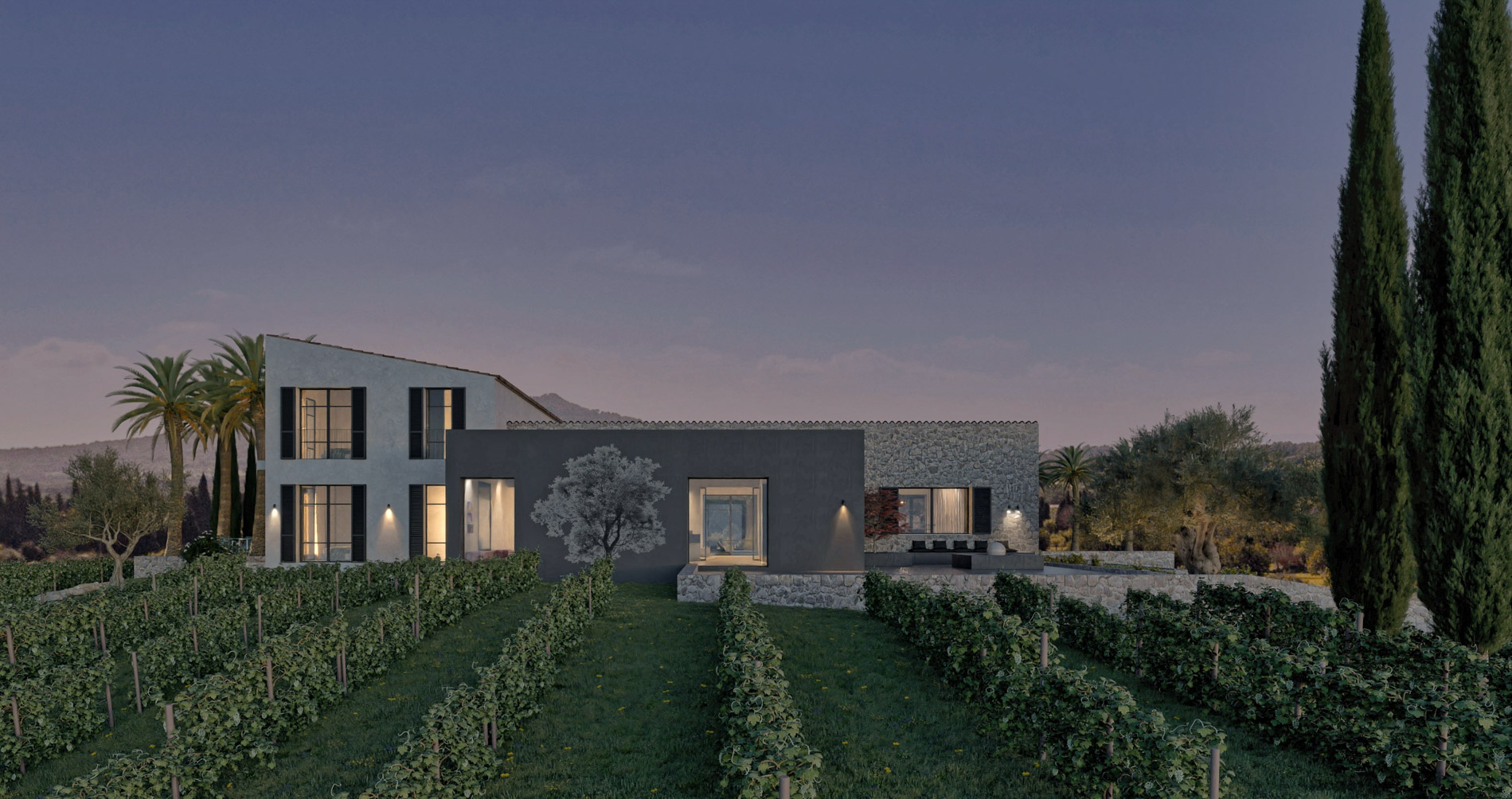 Ubicada al pie de la majestuosa sierra de la Tramuntana, esta finca de obra nueva representa una nueva forma de entender el lujo. Con un terreno de 21.000 m² y 680 m² de superficie construida, la propiedad ofrece un refugio de privacidad, belleza natural y la oportunidad de crear tu propio viñedo.
