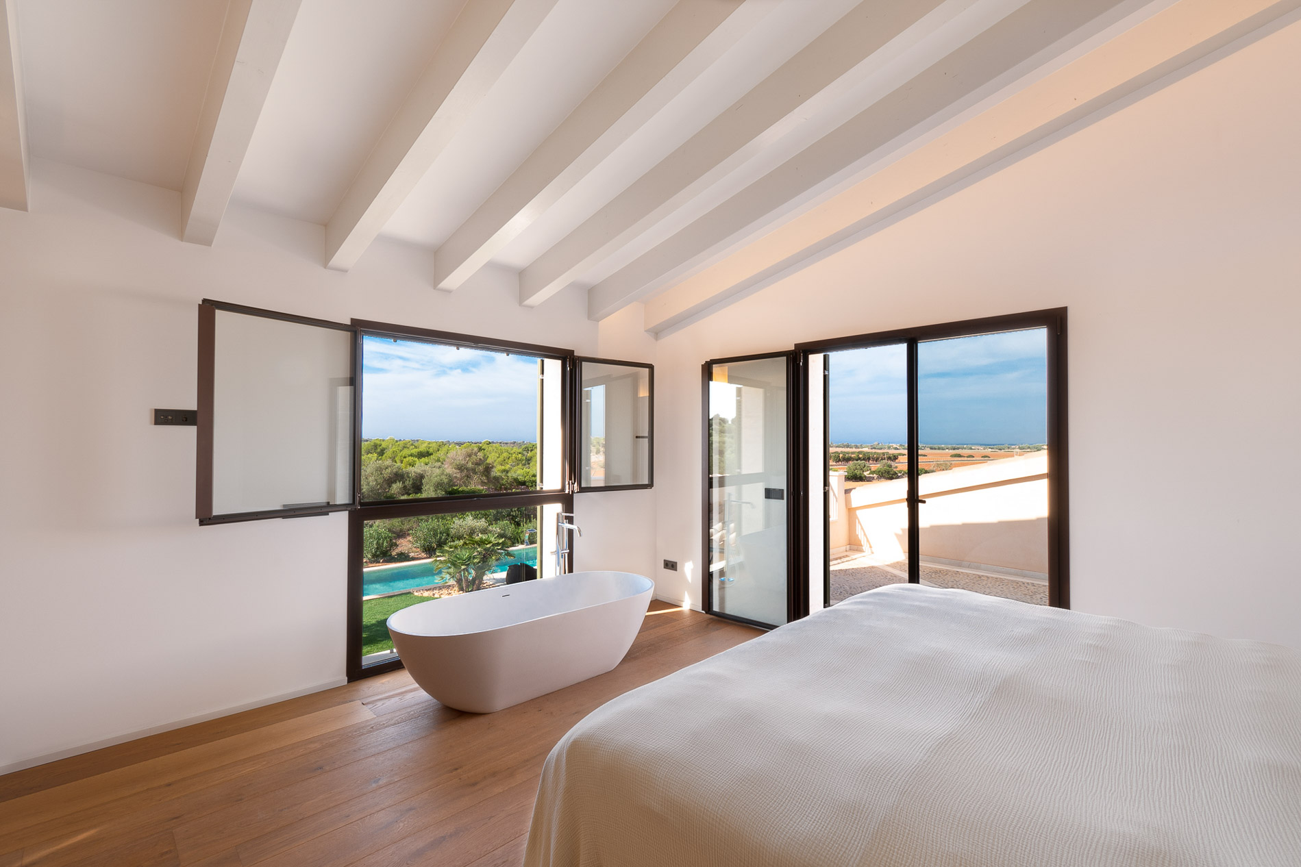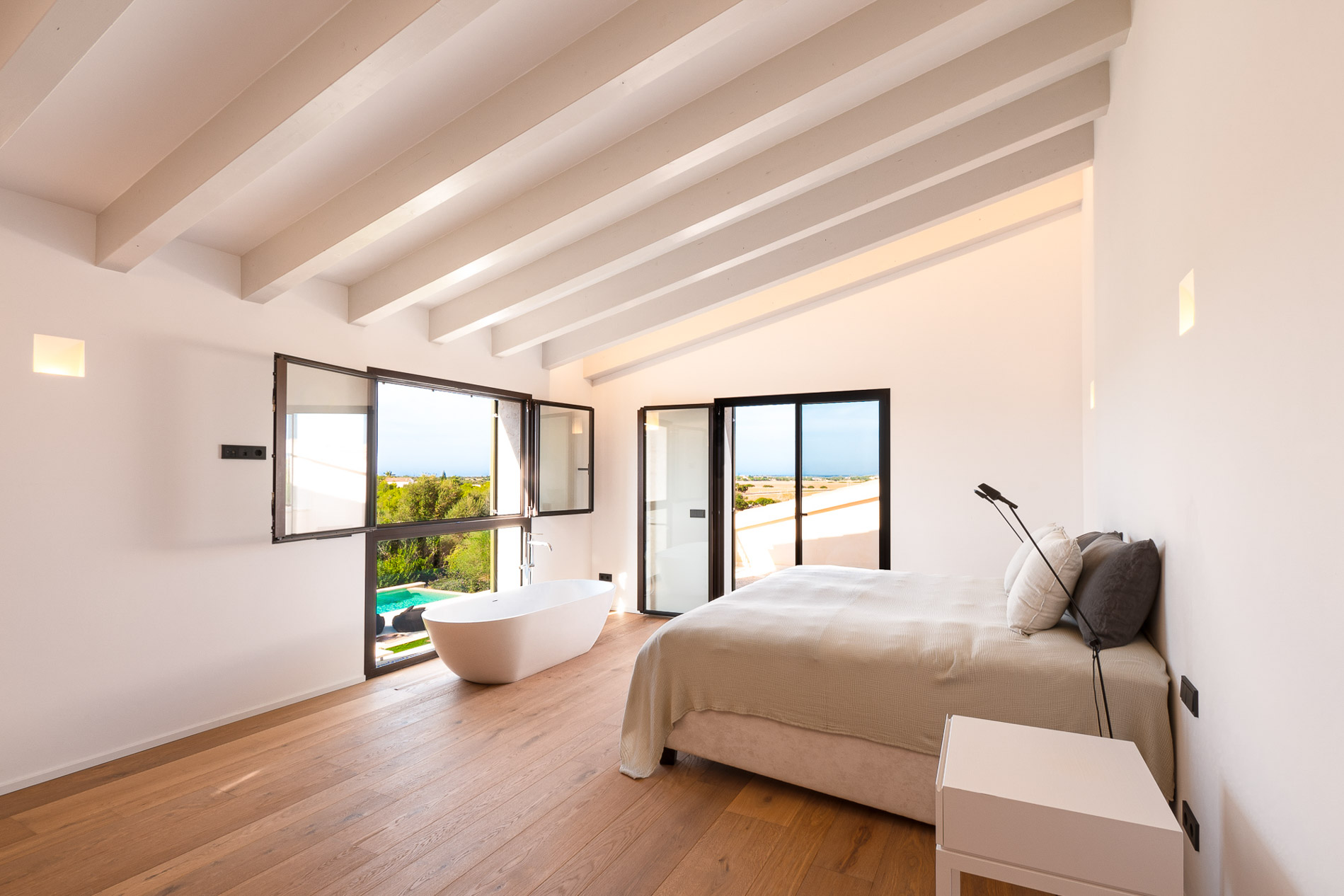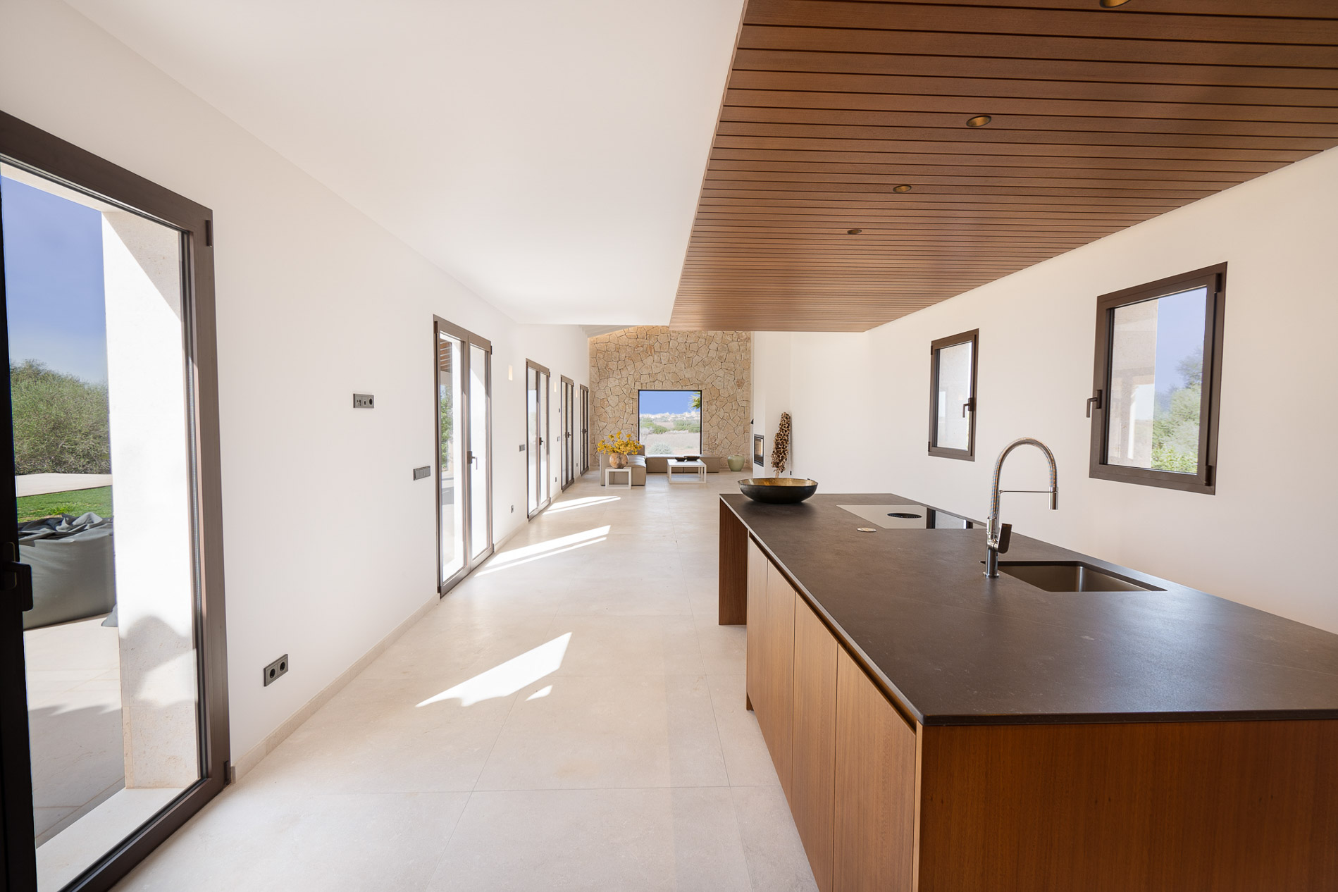 Descubra la elegancia de esta finca, donde el lujo moderno se une al encanto mallorquín. Ubicada en una extensa finca de 16.550 m², esta finca disfruta de su posición privilegiada con vistas panorámicas del pintoresco campo mallorquín. Esta obra maestra arquitectónica, terminada en 2023, es un testimonio de una vida opulenta. Fusiona a la perfección la estética contemporánea con el encanto atemporal de Mallorca, ofreciendo un generoso espacio habitable de 260 m² adornado con amplios ventanales que combinan sin esfuerzo los espacios interiores y exteriores, revelando vistas ininterrumpidas del pueblo de Ses Salines y la belleza natural que lo envuelve. Ingrese a un mundo de refinamiento en la planta baja, donde una sala de estar y comedor de concepto abierto, con una acogedora chimenea, se integra perfectamente con una cocina de madera marrón totalmente equipada y adornada con una isla de cocina central. Las puertas de vidrio lo invitan a una terraza cubierta, donde la suave brisa y los sonidos de la naturaleza crean el escenario. Completan este nivel dos dormitorios meticulosamente diseñados, cada uno con su cuarto de baño privado, un cómodo aseo para invitados y una sala técnica que garantiza el máximo confort moderno. Aventúrate arriba para descubrir el dormitorio principal, un santuario de sofisticación, con su propio baño en suite y una generosa terraza que revela impresionantes vistas del paisaje mallorquín. En toda la propiedad, la calefacción por suelo radiante y el aire acondicionado ofrecen comodidad durante todo el año, adaptada a sus deseos. Al aire libre, una piscina de 12x4m y amplias terrazas, completadas con una zona de barbacoa, crean un espacio encantador para la relajación y las reuniones con familiares y amigos. La finca personifica el pináculo de la vida mallorquina moderna. MallorcaSite, su agencia inmobiliaria en Mallorca, recomienda esta propiedad por ser de nueva construcción, sus calidades y la privacidad. Fotos LovaDesignStudio