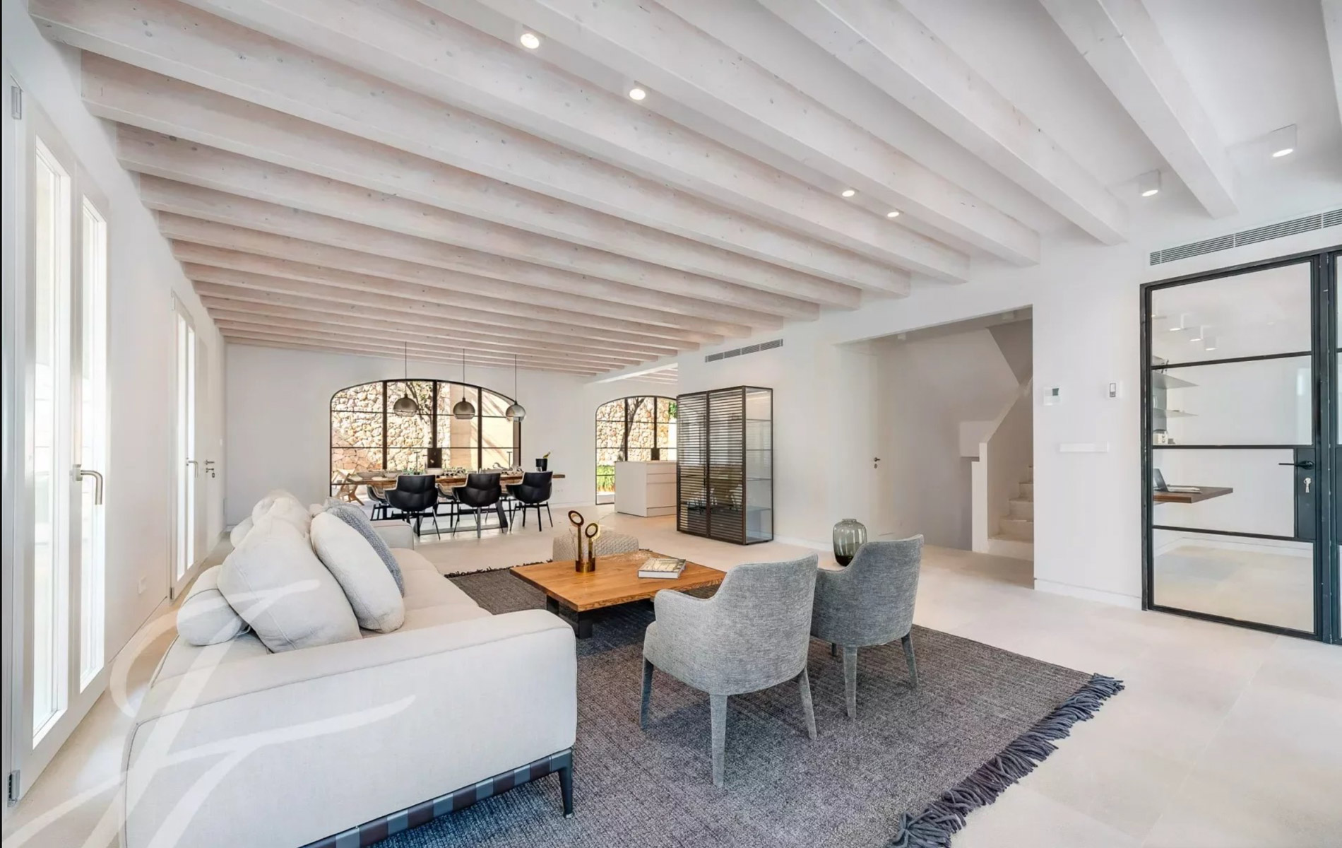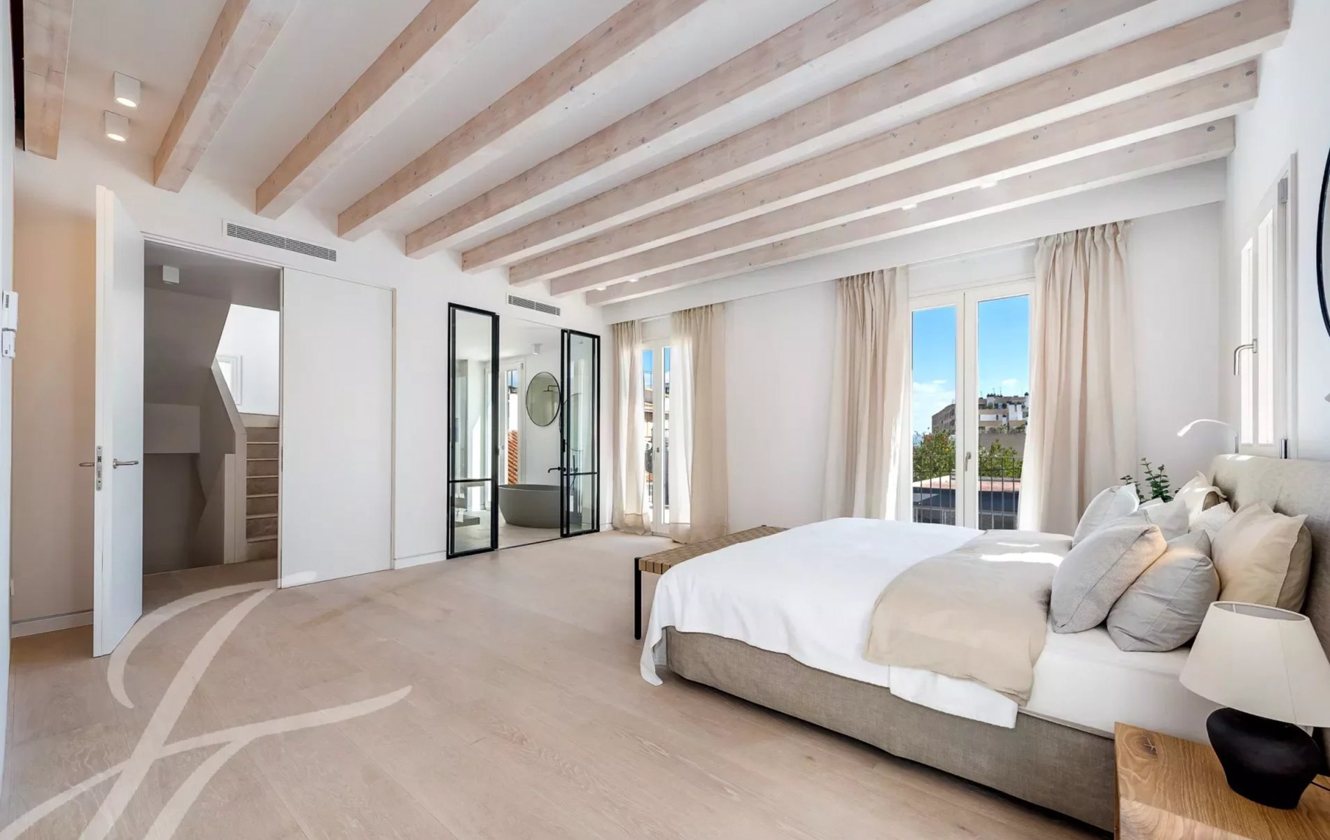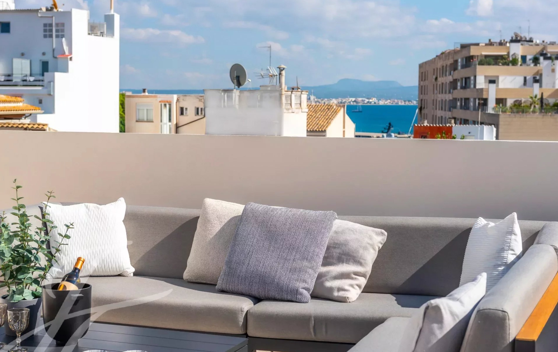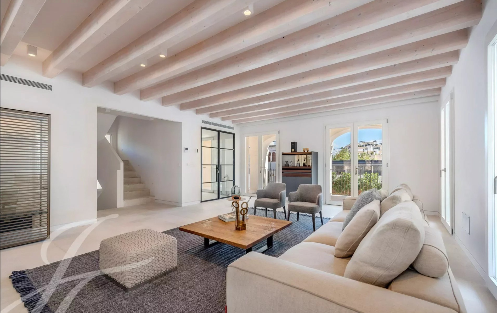 Antigua residencia del artista Santiago Rusiñol, la historia de la villa se puede reconocer a primera vista, especialmente en el estuco único de la fachada y las estatuas históricamente protegidas, que han sido restauradas con meticuloso esmero y devuelta a la vida Al acceder a la villa, nos encontramos con una amplia zona exterior con piscina privada de 23 m2 y una terraza soleada que conduce a la entrada. Además, la planta baja ofrece un aljibe histórico que ha sido reformado y ofrece un espacio perfecto para una bodega, gimnasio o zona de spa. Este nivel se completa con un baño completo y espacio para un trastero. La planta principal es el mejor ejemplo de espacio diáfano que incorpora espacios interiores y exteriores para garantizar el máximo confort y calidad de vida. Su luminoso espacio incluye un amplio salón, comedor y cocina totalmente equipada con electrodomésticos Siemens / Bora / Liebherr. Esta zona se abre al porche con vistas al jardín / piscina y en la parte trasera a un magnífico patio privado rodeado de hermosas plantas mediterráneas, árboles, cascada que fluye suave, piedra natural tallada a mano y está amueblado tanto para disfrutar de comidas al aire libre como para relajarse en total privacidad. La planta principal se completa con una oficina independiente, zona de lavandería y aseo de invitados. La planta superior está pensada para el descanso y consta de un espacioso dormitorio principal con baño en-suite y acceso a una amplia terraza con vistas a la zona de la piscina y vistas parciales al mar. Además, dispone de dos dormitorios adicionales, cada uno con armarios empotrados, baños en-suite y acceso a su propia espaciosa terraza Un elemento absolutamente a destacar es la terraza chill-out en la azotea, amueblada acogedoramente y con vistas de 360 grados sobre el barrio, el castillo de Bellver y parcialmente al mar que completan esta propiedad única. La villa dispone de más de 200 m2 de terrazas, aire acondicionado, calefacción por suelo radiante, puerta automática garaje, parking exterior, y se vende completamente amueblada. Se encuentra a poca distancia del casco antiguo de Palma, así como a 5-10 minutos en coche de las playas, es realmente una joya escondida en la popular zona de El Terreno.
