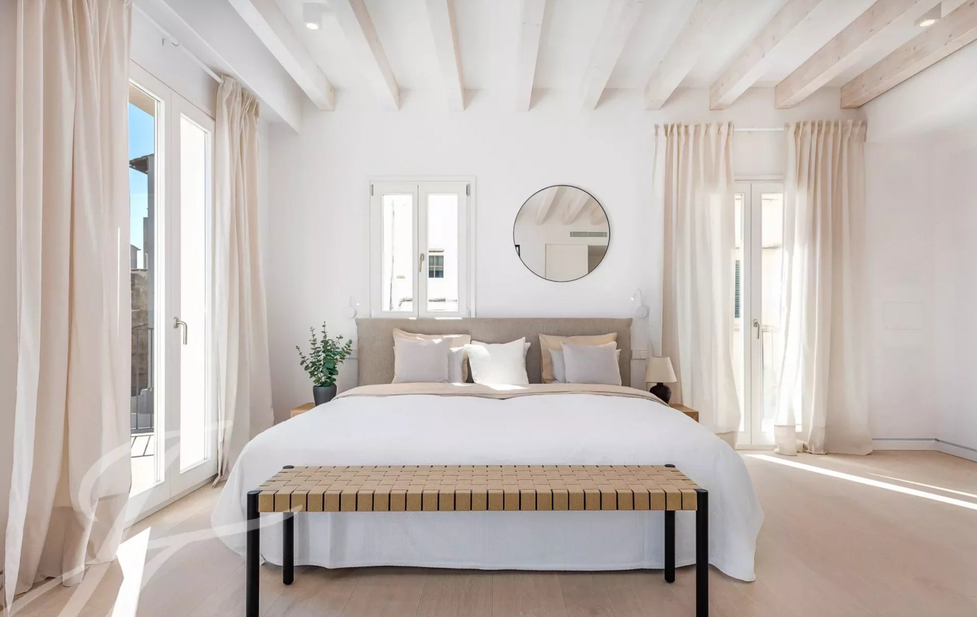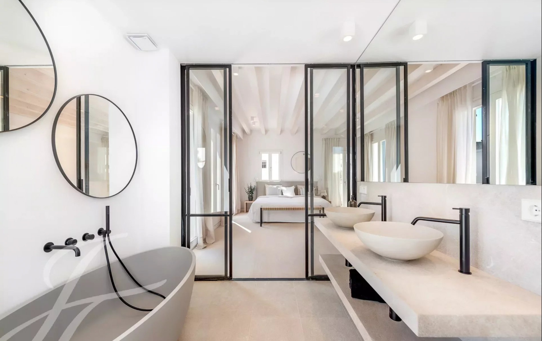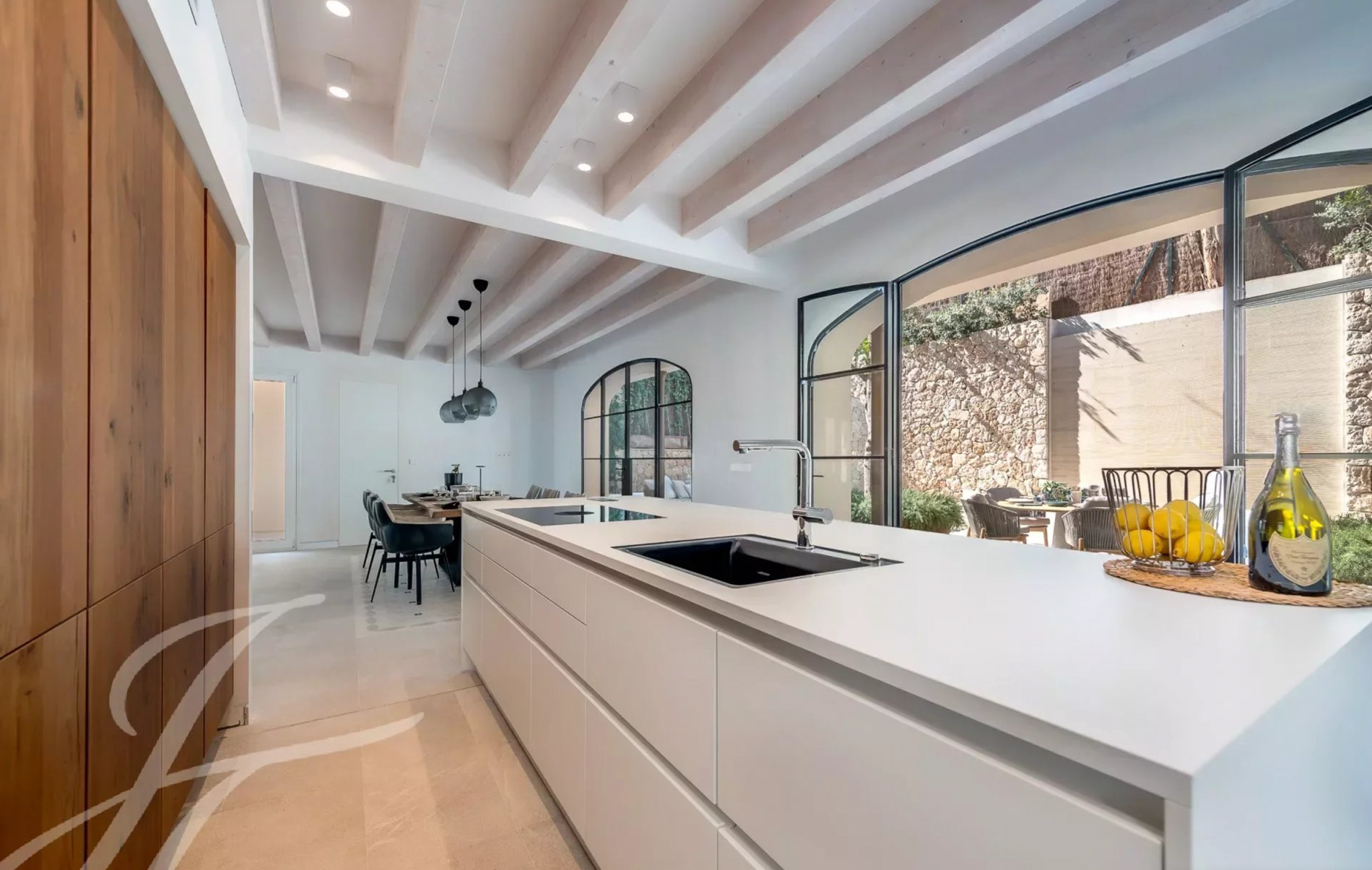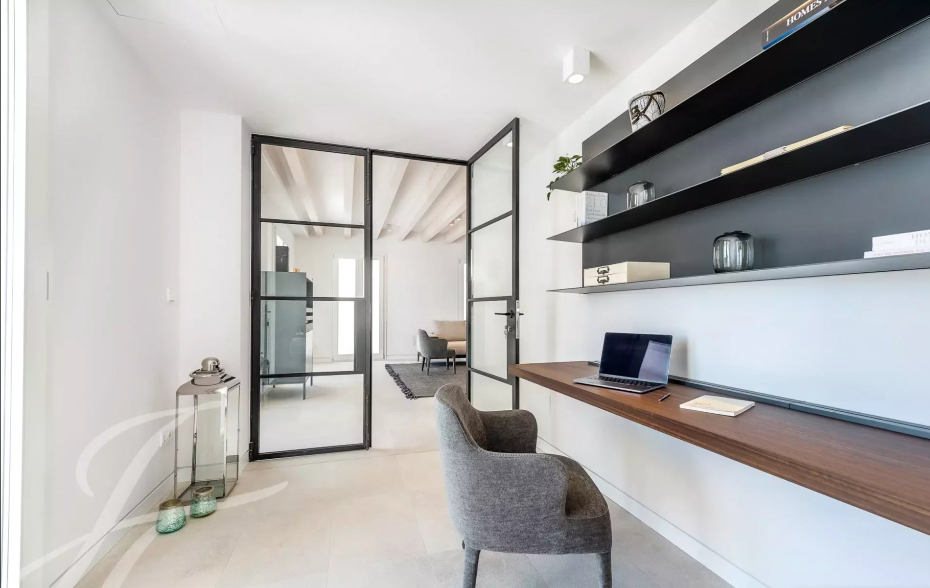 Antigua residencia del artista Santiago Rusiñol, la historia de la villa se puede reconocer a primera vista, especialmente en el estuco único de la fachada y las estatuas históricamente protegidas, que han sido restauradas con meticuloso esmero y devuelta a la vida Al acceder a la villa, nos encontramos con una amplia zona exterior con piscina privada de 23 m2 y una terraza soleada que conduce a la entrada. Además, la planta baja ofrece un aljibe histórico que ha sido reformado y ofrece un espacio perfecto para una bodega, gimnasio o zona de spa. Este nivel se completa con un baño completo y espacio para un trastero. La planta principal es el mejor ejemplo de espacio diáfano que incorpora espacios interiores y exteriores para garantizar el máximo confort y calidad de vida. Su luminoso espacio incluye un amplio salón, comedor y cocina totalmente equipada con electrodomésticos Siemens / Bora / Liebherr. Esta zona se abre al porche con vistas al jardín / piscina y en la parte trasera a un magnífico patio privado rodeado de hermosas plantas mediterráneas, árboles, cascada que fluye suave, piedra natural tallada a mano y está amueblado tanto para disfrutar de comidas al aire libre como para relajarse en total privacidad. La planta principal se completa con una oficina independiente, zona de lavandería y aseo de invitados. La planta superior está pensada para el descanso y consta de un espacioso dormitorio principal con baño en-suite y acceso a una amplia terraza con vistas a la zona de la piscina y vistas parciales al mar. Además, dispone de dos dormitorios adicionales, cada uno con armarios empotrados, baños en-suite y acceso a su propia espaciosa terraza Un elemento absolutamente a destacar es la terraza chill-out en la azotea, amueblada acogedoramente y con vistas de 360 grados sobre el barrio, el castillo de Bellver y parcialmente al mar que completan esta propiedad única. La villa dispone de más de 200 m2 de terrazas, aire acondicionado, calefacción por suelo radiante, puerta automática garaje, parking exterior, y se vende completamente amueblada. Se encuentra a poca distancia del casco antiguo de Palma, así como a 5-10 minutos en coche de las playas, es realmente una joya escondida en la popular zona de El Terreno.