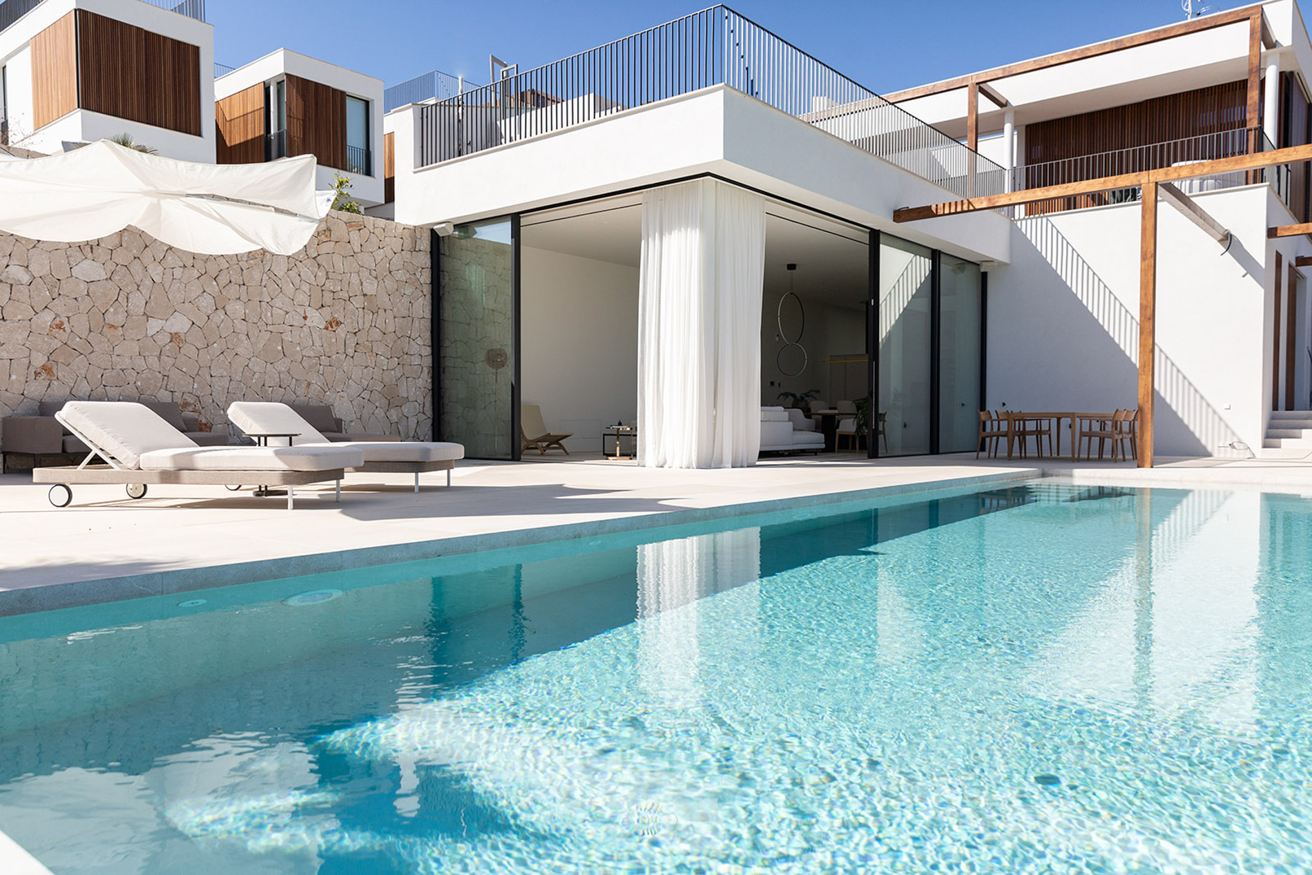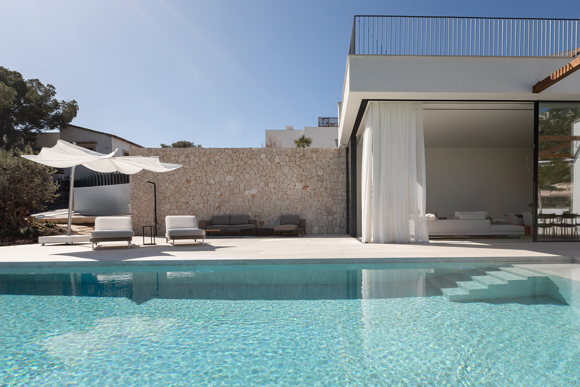 Villa contemporánea y sofisticada que difumina las líneas entre el interior y el exterior con vistas a las montañas en GenovaConstrucción de alto nivel, los mejores materiales y electrodomésticos de alta calidad se utilizarán en esta moderna casa mallorquina. El uso continuo de maderas pálidas, revestimientos de piedra natural y una gran cantidad de vidrio tanto en el interior como en el exterior, une a esta propiedad estéticamente, asegurando que sea cálida, ligera y contemporánea, mientras disfruta de la proximidad a la naturaleza y el fácil acceso a Palma y la costa.
