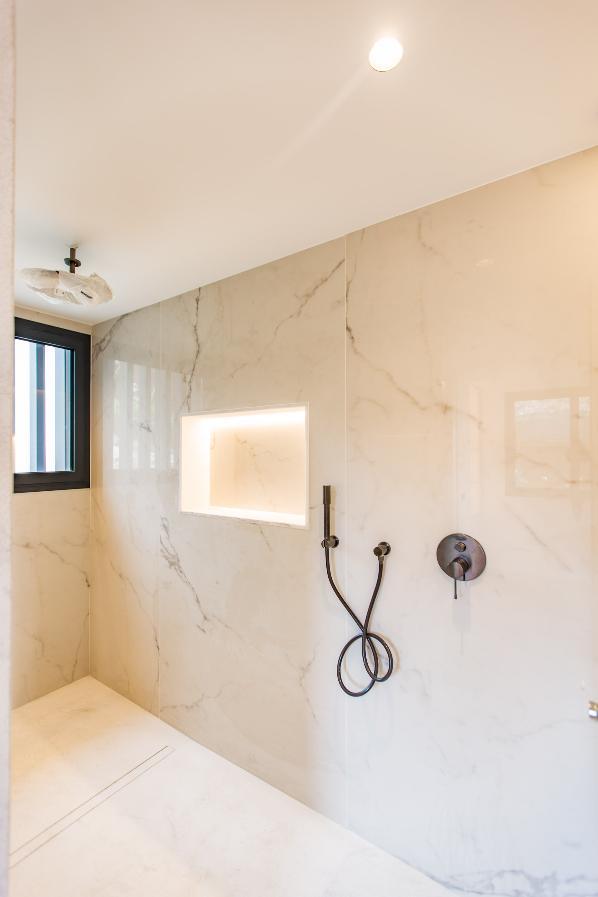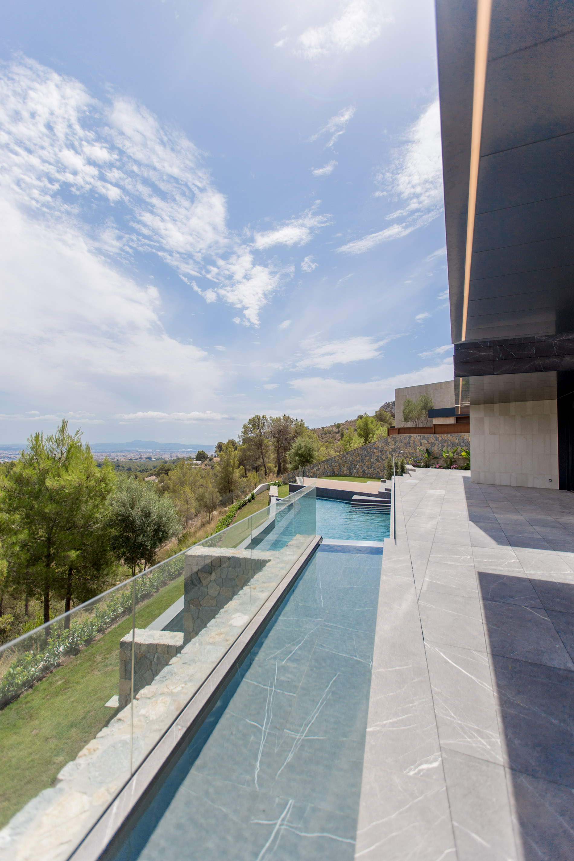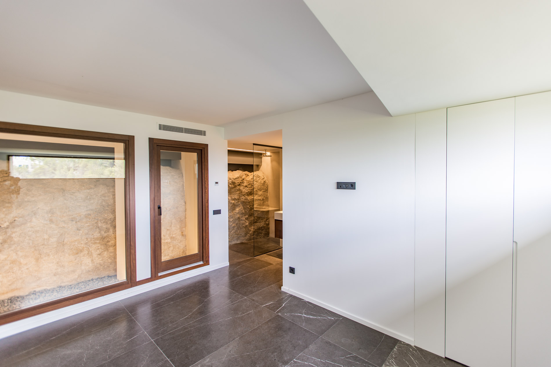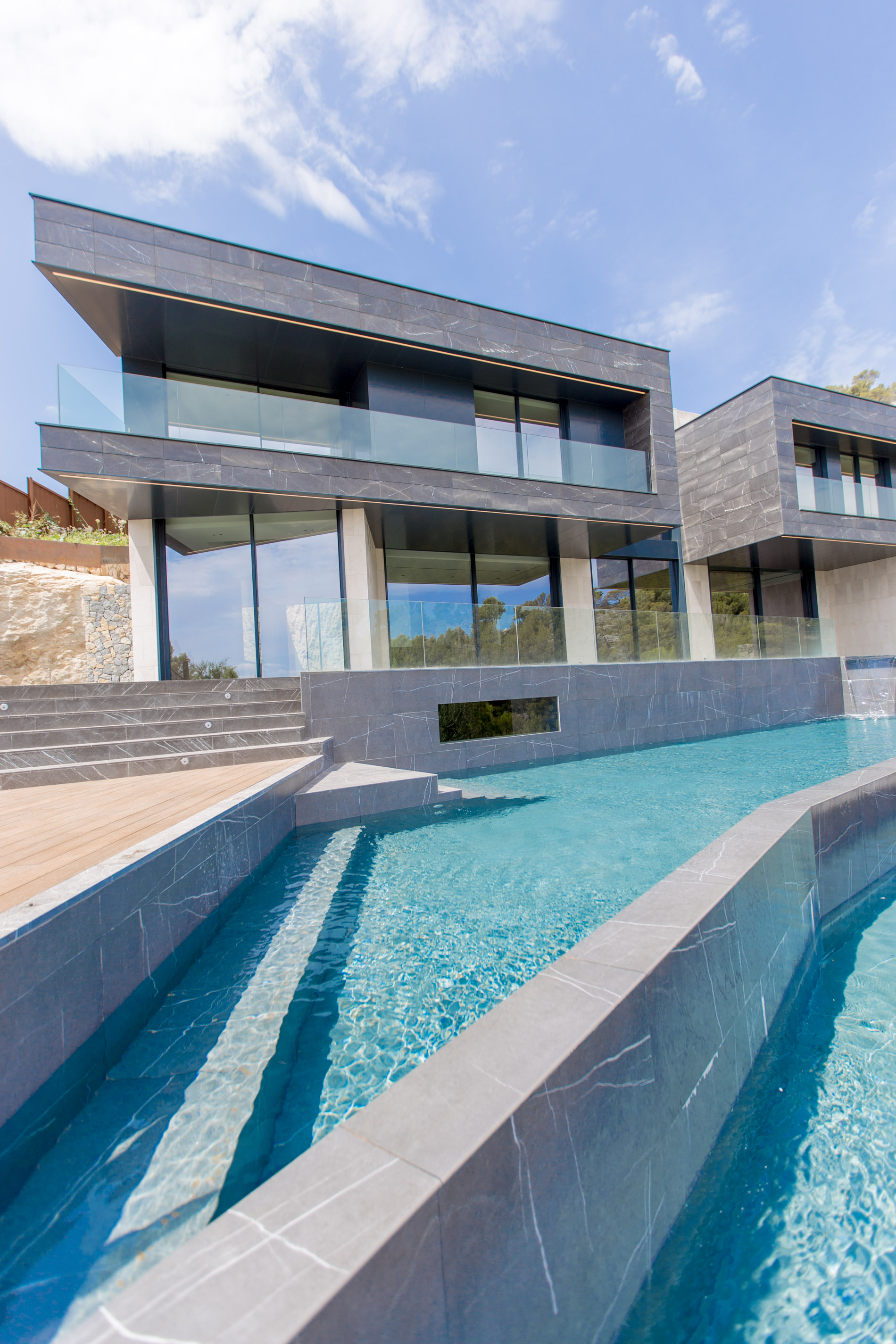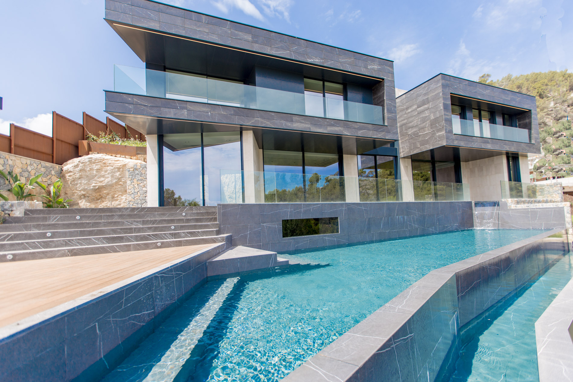 Diseño con alma - villa de nueva construcción en las colinas de Son Vida, Palma, en una de las mejores ubicaciones, orientada al este y con impresionantes vistas a la ciudad de Palma. La villa se asienta sobre una parcela de 2000 m2 y tiene una superficie construida de 600 m2 distribuidos en dos plantas con 5 dormitorios y 6 baños, cinco de los cuales son en suite. Es una vivienda moderna con techos altos y grandes ventanales para disfrutar al máximo de las vistas, y con una gran piscina desbordante con la mejor orientación. También dispone de una zona independiente para invitados o personal de la casa. MallorcaSite, su agencia inmobiliaria en Mallorca, recomienda esta propiedad por su excelente ubicación, sus calidades y su amplitud.