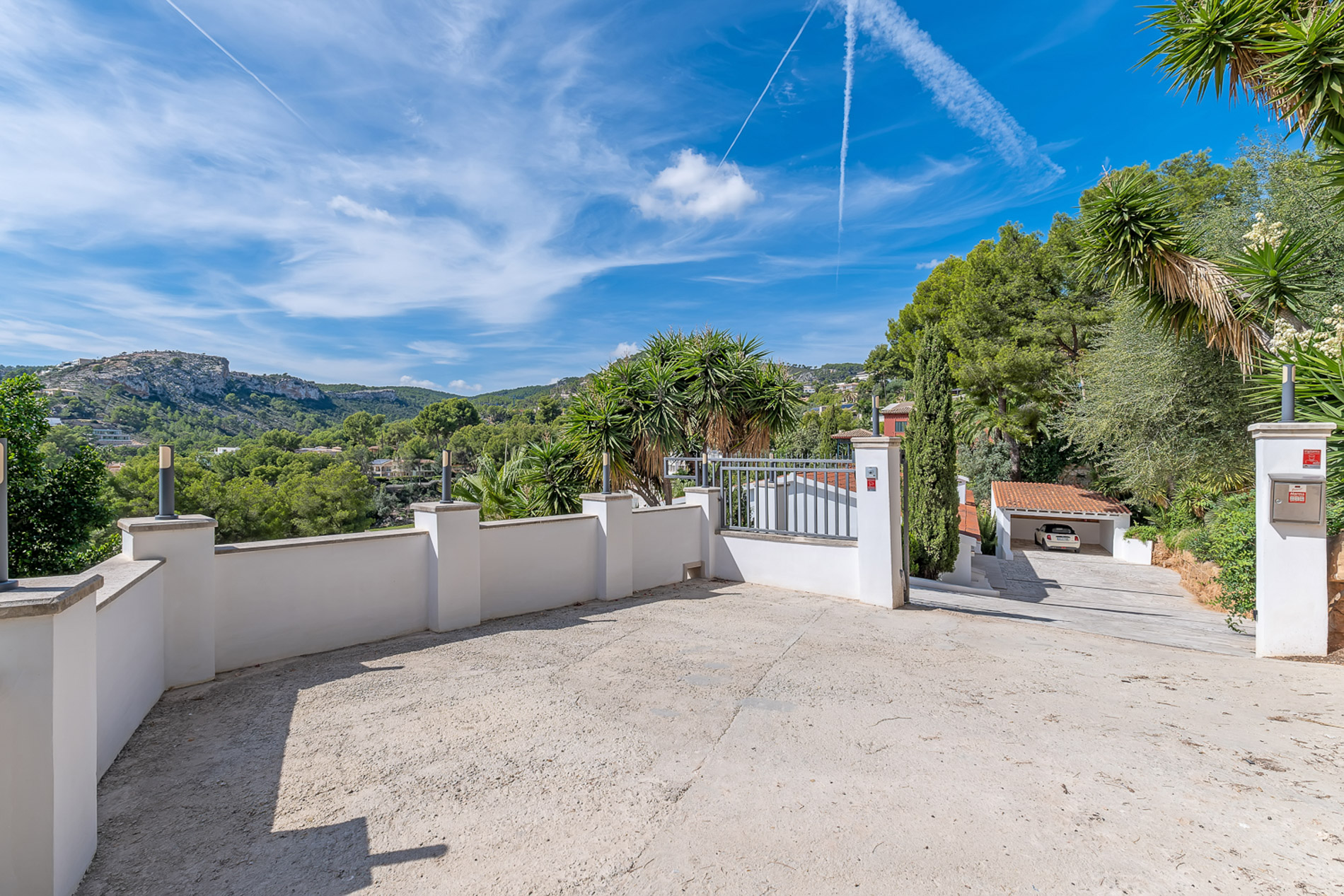 Descubre esta villa en Son Vida, un rincón mediterráneo de lujo. Con 537 m2 en una parcela de 1854 m2 junto al campo de golf de Son Vida, es más que una casa, es un estilo de vida. La villa cuenta con 5 habitaciones y 4 baños distribuidos en tres niveles, fusionando diseño moderno con vistas asombrosas. La cocina fluye hacia una sala de estar luminosa, donde la elegancia se encuentra con la funcionalidad. La iluminación destaca los interiores, capturando la esencia de la belleza de Mallorca. Al salir al exterior, te sumerges en un paraíso privado: un jardín bien cuidado rodeando una piscina de agua salada. Varias terrazas, algunas cubiertas, ofrecen vistas panorámicas al mar y las montañas. La zona de comedor al aire libre y la barbacoa son ideales para momentos especiales, rodeados de vegetación mediterránea. MallorcaSite destaca la propiedad no solo por su ubicación en Son Vida, sino también por la proximidad a campos de golf.