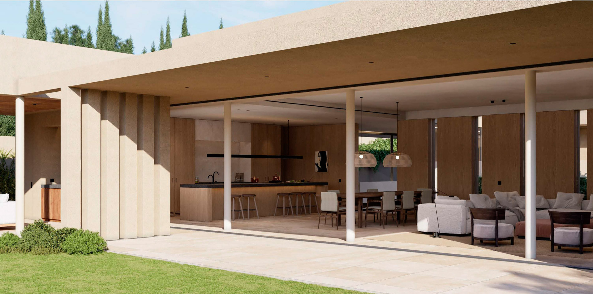 Presentamos un exclusivo proyecto de villa en Son Vida, diseñada en una sola planta para maximizar la comodidad y la integración con el entorno. Con un estilo arquitectónico contemporáneo y acabados de la más alta calidad, esta futura residencia ofrecerá una experiencia de vida única, ideal para quienes buscan un hogar sofisticado y funcional en una de las zonas más exclusivas de Mallorca. El diseño interior se ha planteado con una distribución abierta y luminosa. Al entrar, un elegante vestíbulo da paso a una amplia zona de estar con techos altos y grandes ventanales que inundan el espacio de luz natural. La sala se integra con el comedor y la cocina de diseño moderno, equipada con electrodomésticos de última generación y una isla central perfecta para disfrutar de momentos en familia o con amigos. La villa contará con seis amplios dormitorios, cada uno con su propio baño en suite, pensados para ofrecer privacidad y comodidad en un entorno de lujo. La suite principal incluirá un vestidor y acceso directo al jardín, creando un espacio privado de retiro. Todas las habitaciones están diseñadas con acceso directo a las terrazas y vistas al jardín, reforzando la conexión entre los espacios interiores y exteriores. En el sótano, la villa dispondrá de un gimnasio totalmente equipado con spa privado, diseñado para ofrecer un espacio de bienestar exclusivo sin salir de casa. Este área incluirá zona de fitness, sauna y jacuzzi, creando un oasis de relajación y cuidado personal. El área exterior se diseñará como una extensión natural de la villa: una gran terraza cubierta rodeará la piscina de borde infinito, proporcionando un espacio ideal para el descanso y el entretenimiento al aire libre. La parcela incluirá también zonas de solárium y un jardín mediterráneo, que brindarán un entorno de tranquilidad y privacidad. Este proyecto también contará con un garaje con capacidad para tres vehículos y un amplio espacio de almacenamiento. La villa estará equipada con tecnología de hogar inteligente, calefacción por suelo radiante y aire acondicionado, garantizando un confort óptimo y eficiencia energética durante todo el año. Esta futura construcción en Son Vida representa la oportunidad de adquirir una villa de lujo con diseño moderno y una ubicación privilegiada, donde cada detalle ha sido cuidadosamente concebido para ofrecer una vida exclusiva en Mallorca. MallorcaSite le recomienda esta villa como la inversión perfecta para disfrutar de un estilo de vida exclusivo en el corazón de la isla.