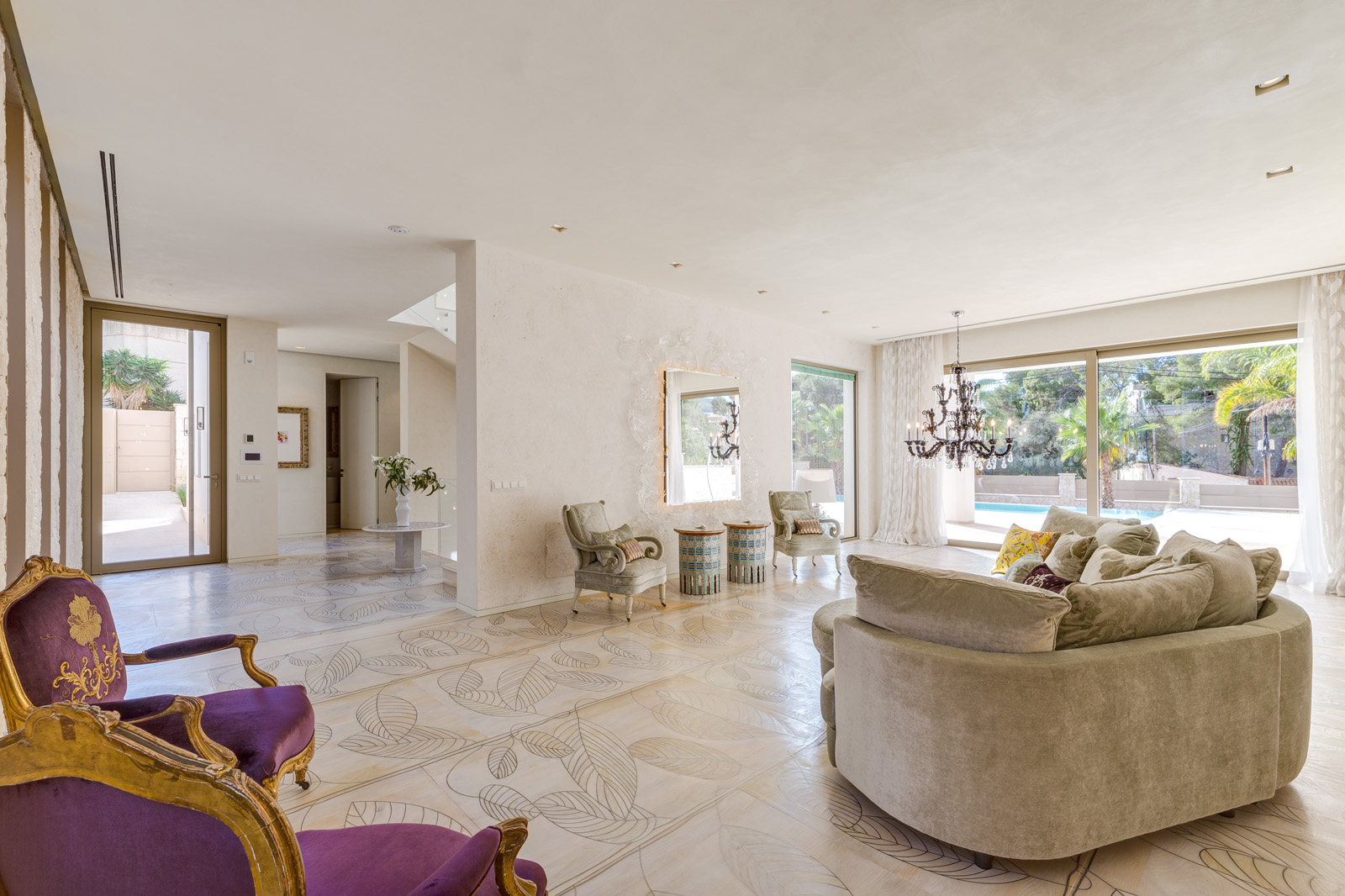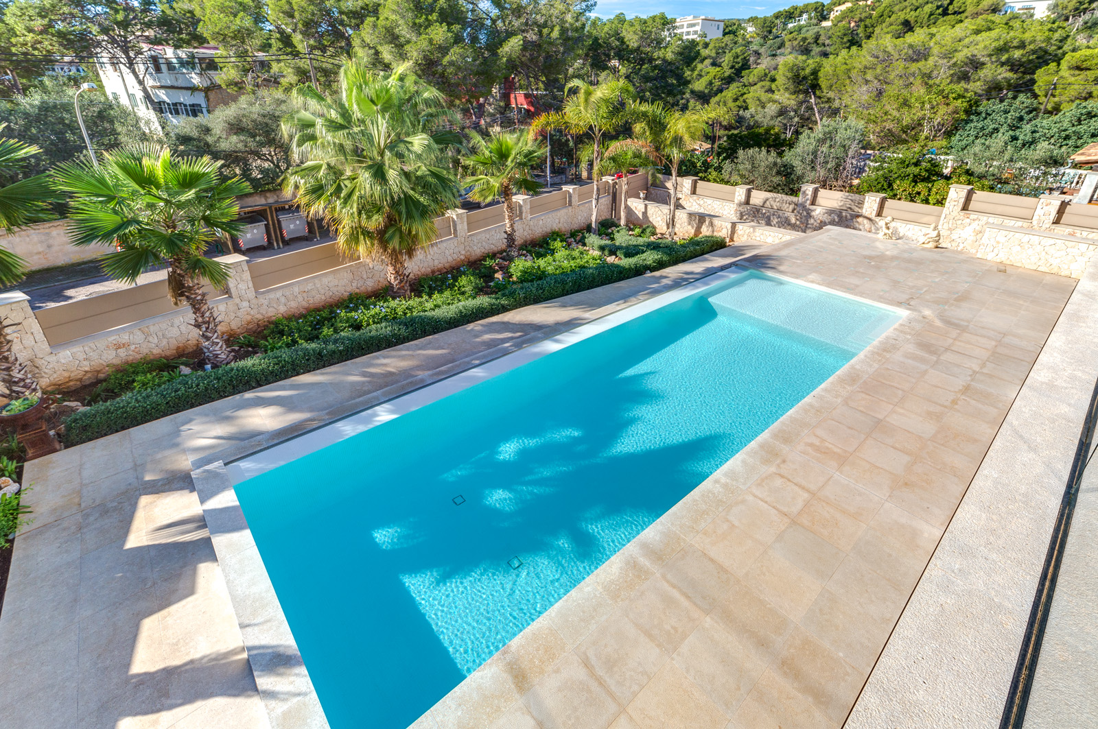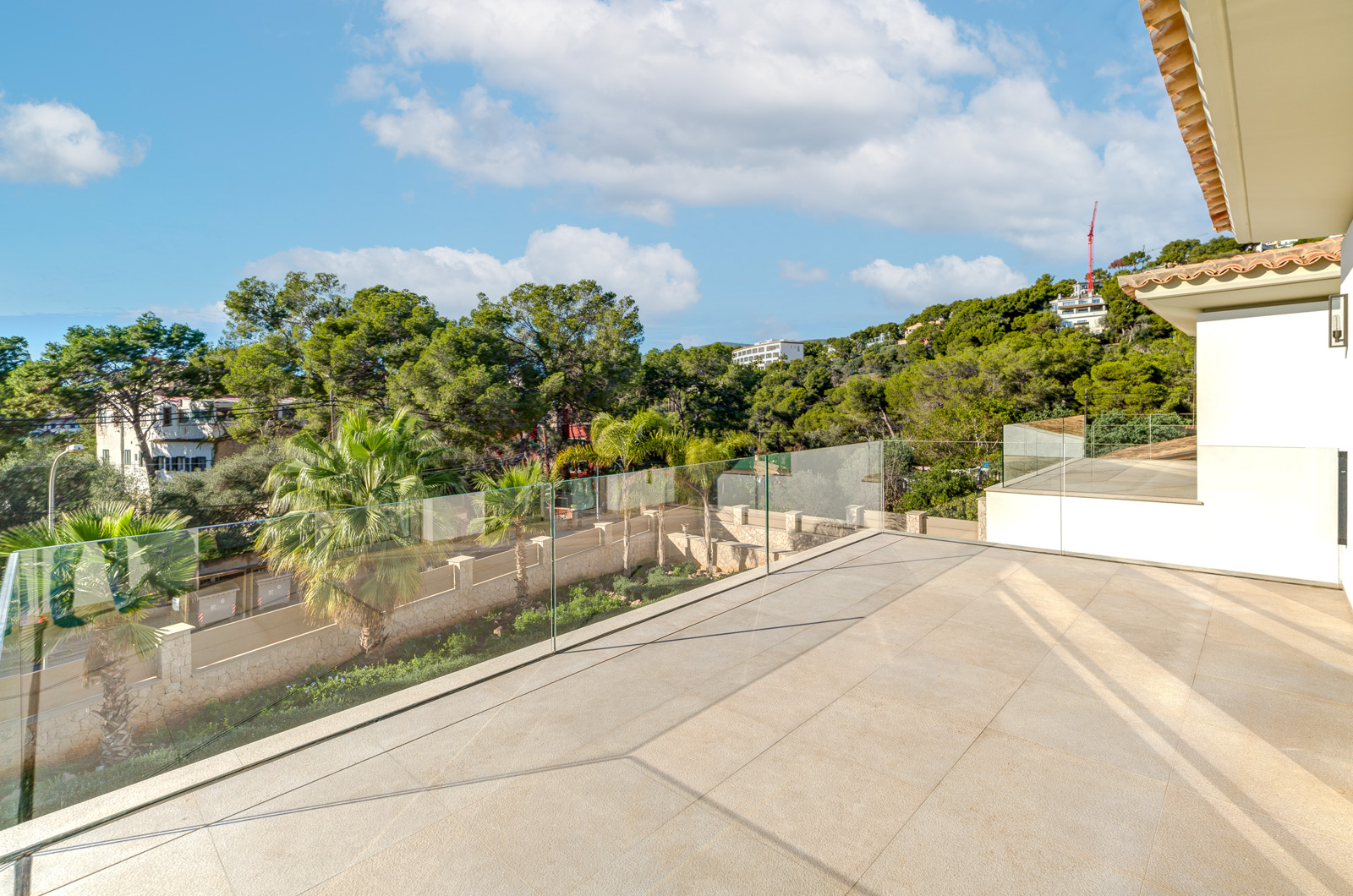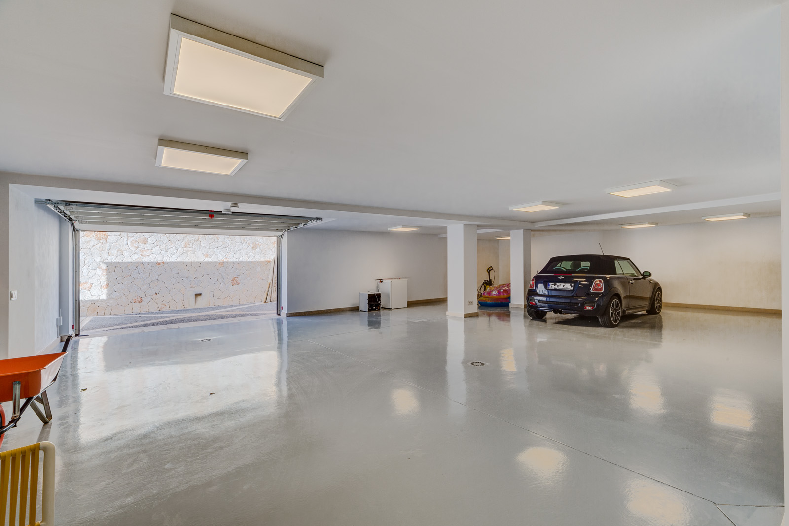 Villa orientada al Sur, construida en 2020 a poca distancia de la playa de Portals Nous de arquitectura mediterránea construida con materiales de gran calidad como piedra natural en el exterior, suelos de parquet Vassaletti, cocina Birgit Müller Esta villa de aproximadamente 520m2 de superficie cuenta con tres plantas. En el sótano con acceso directo a la casa se encuentra el garaje subterráneo con espacio para 4 coches. En la planta principal hay la cocina, comedor, sala de estar independiente, un aseo de invitados y grandes ventanales que conducen al porche y ofrecen bellas vistas al jardín y a la piscina de 12x4 , en esta planta se encuentra un dormitorio de invitados independiente con baño en suite. En la primera planta se encuentran el dormitorio principal y dos dormitorios de invitados, que comparten un baño. Características de esta villa mediterránea son: Suelos de piedra natural, parquet , calefacción por suelo radiante, aire acondicionado frío/calor, chimenea de gas, sistema domótico, sistema de alarma, lavadero, despensa. MallorcaSite, su agencia inmobiliaria en Mallorca, le recomienda esta villa por su calidad, por su jardín y por estar en una de las zonas más demandadas de Mallorca