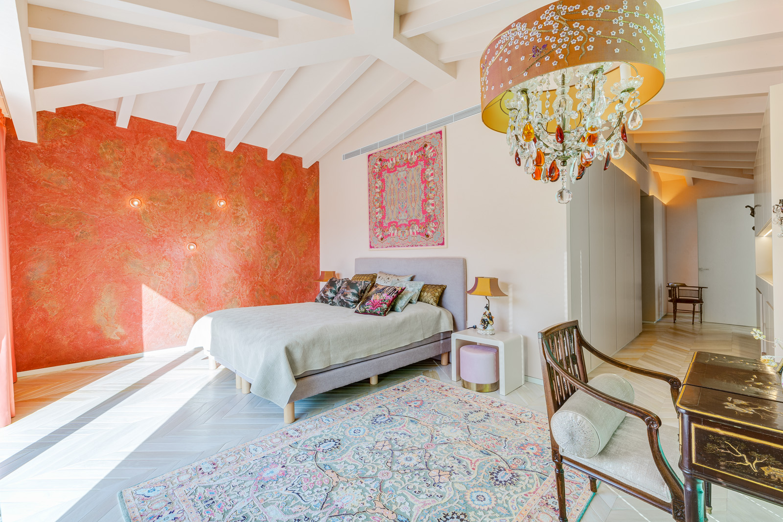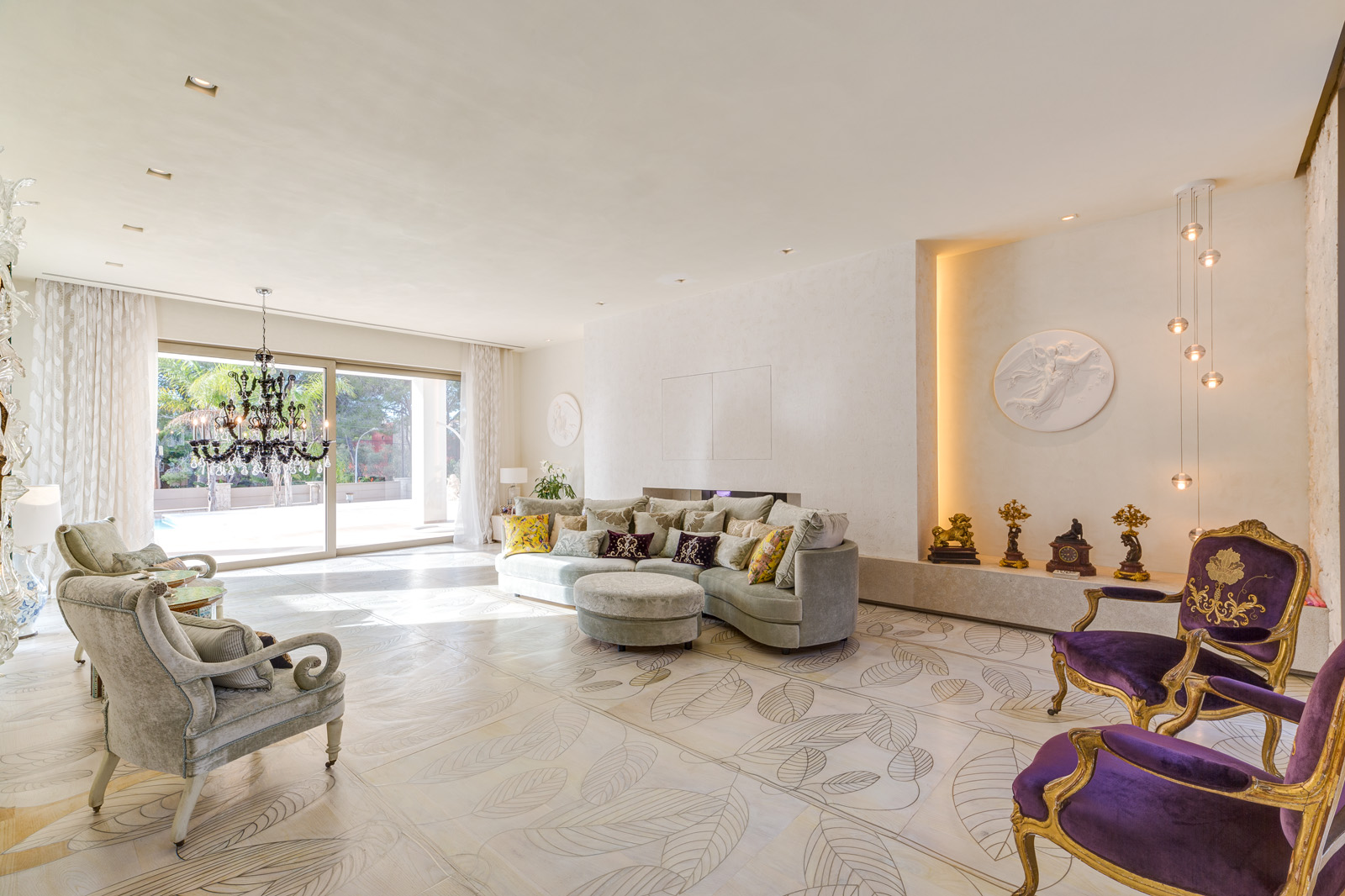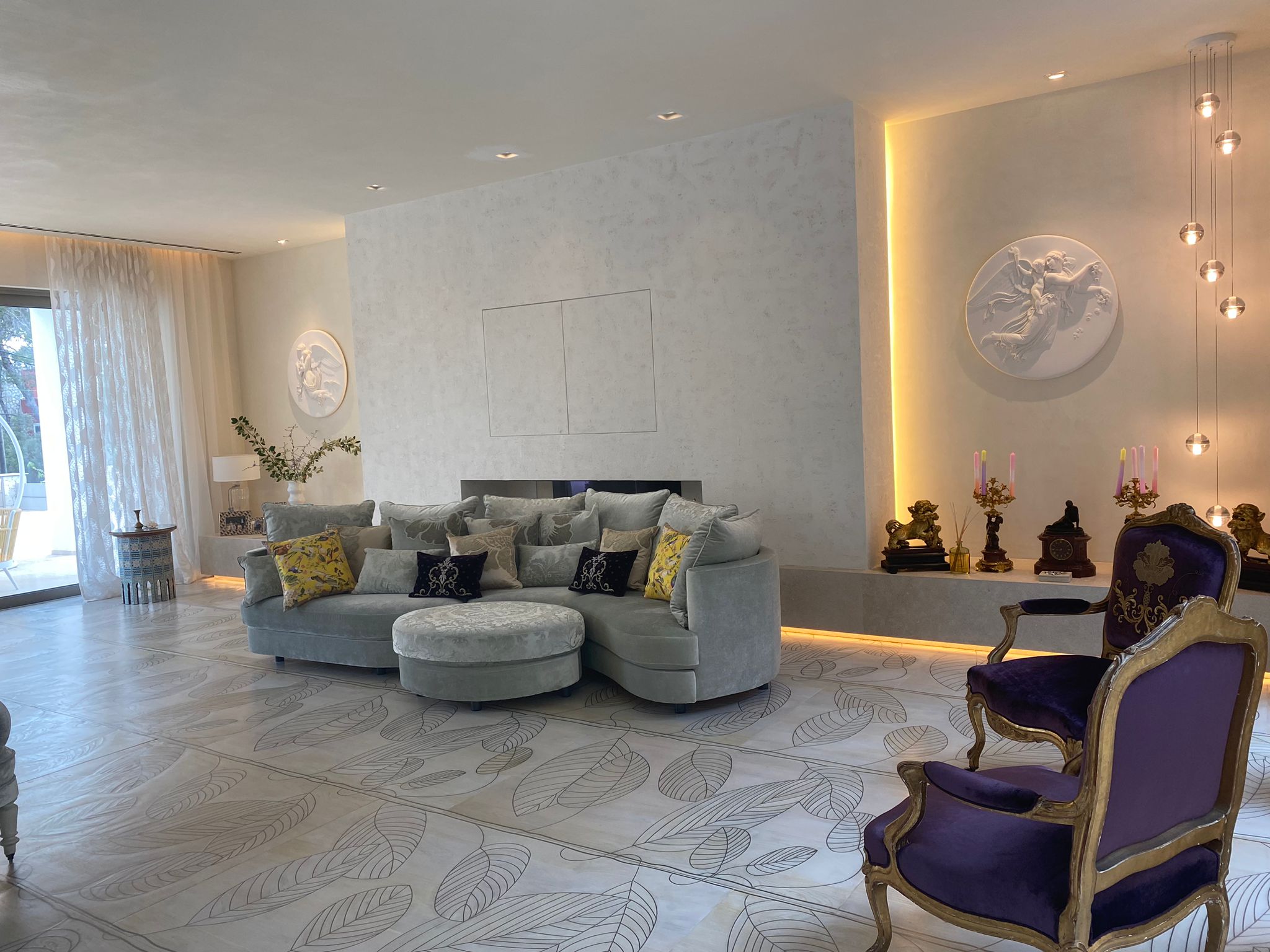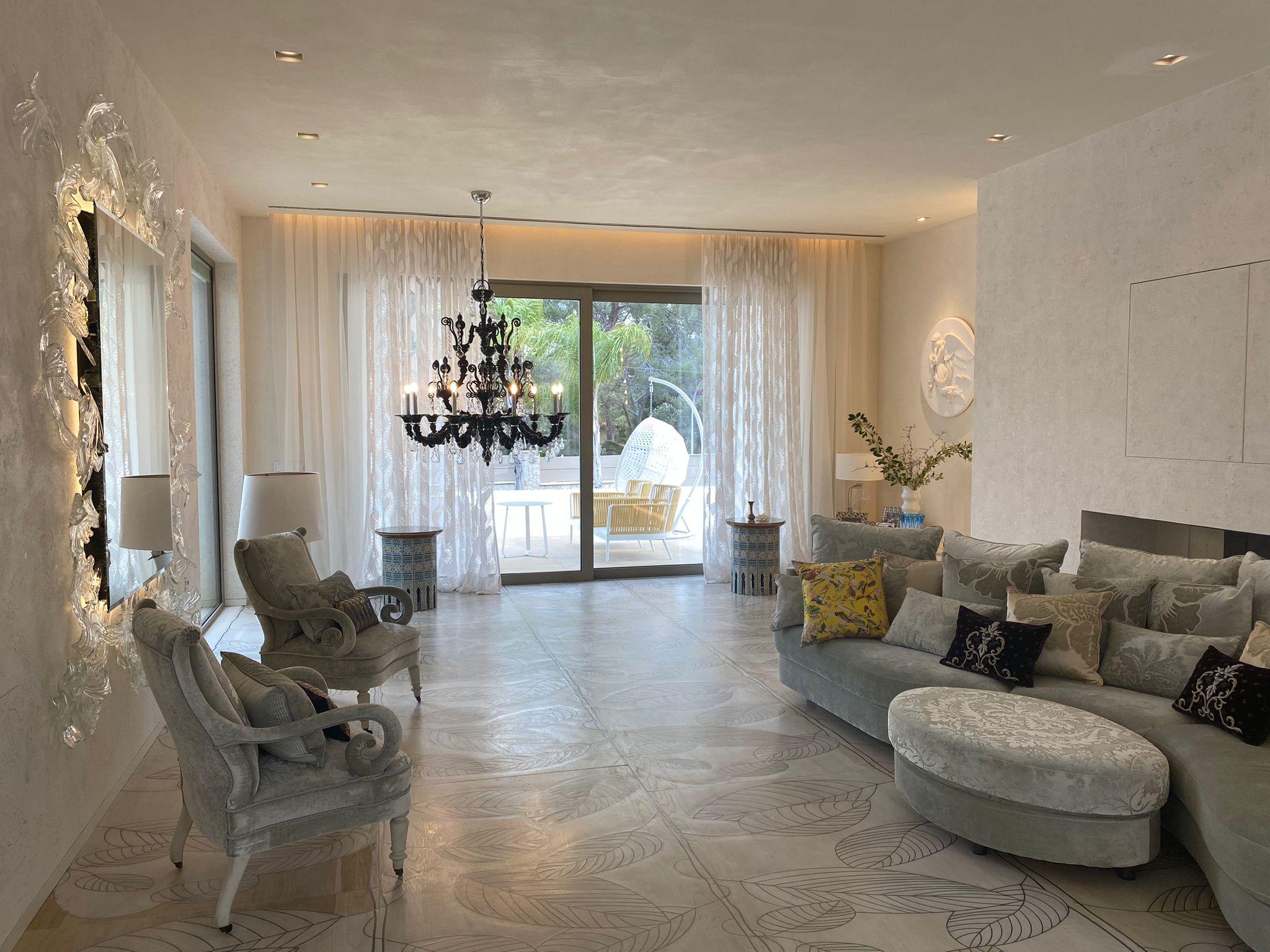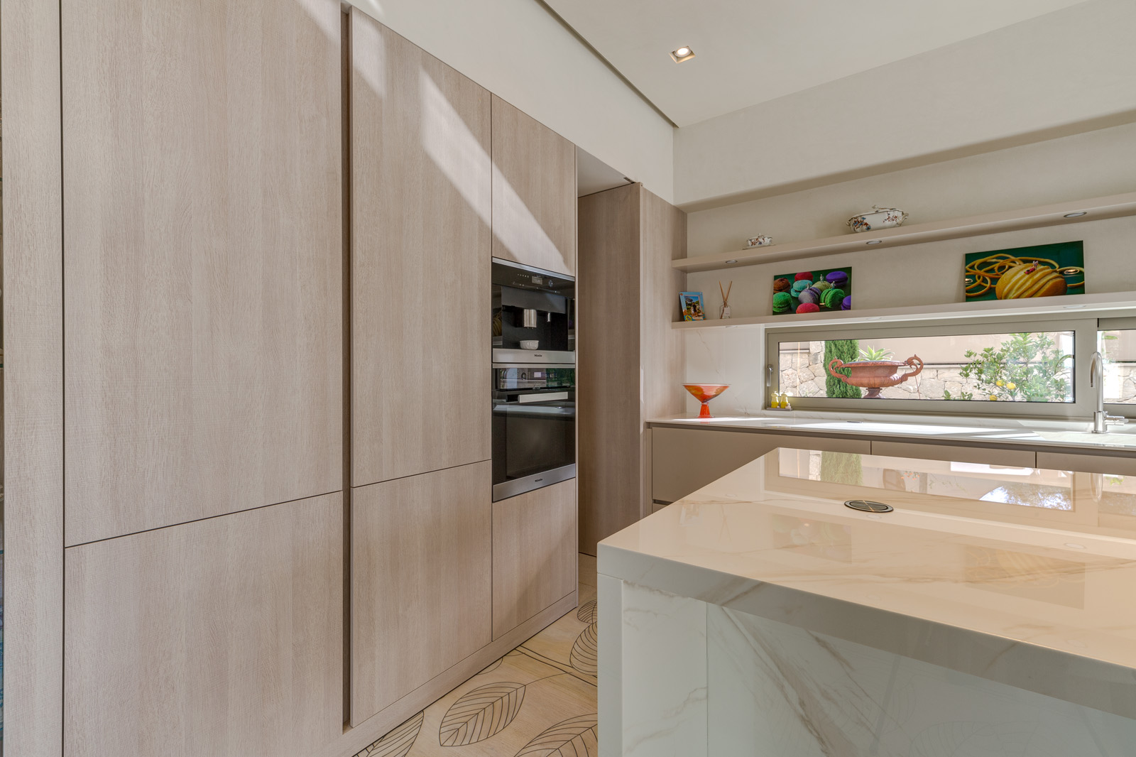 Villa orientada al Sur, construida en 2020 a poca distancia de la playa de Portals Nous de arquitectura mediterránea construida con materiales de gran calidad como piedra natural en el exterior, suelos de parquet Vassaletti, cocina Birgit Müller Esta villa de aproximadamente 520m2 de superficie cuenta con tres plantas. En el sótano con acceso directo a la casa se encuentra el garaje subterráneo con espacio para 4 coches. En la planta principal hay la cocina, comedor, sala de estar independiente, un aseo de invitados y grandes ventanales que conducen al porche y ofrecen bellas vistas al jardín y a la piscina de 12x4 , en esta planta se encuentra un dormitorio de invitados independiente con baño en suite. En la primera planta se encuentran el dormitorio principal y dos dormitorios de invitados, que comparten un baño. Características de esta villa mediterránea son: Suelos de piedra natural, parquet , calefacción por suelo radiante, aire acondicionado frío/calor, chimenea de gas, sistema domótico, sistema de alarma, lavadero, despensa. MallorcaSite, su agencia inmobiliaria en Mallorca, le recomienda esta villa por su calidad, por su jardín y por estar en una de las zonas más demandadas de Mallorca