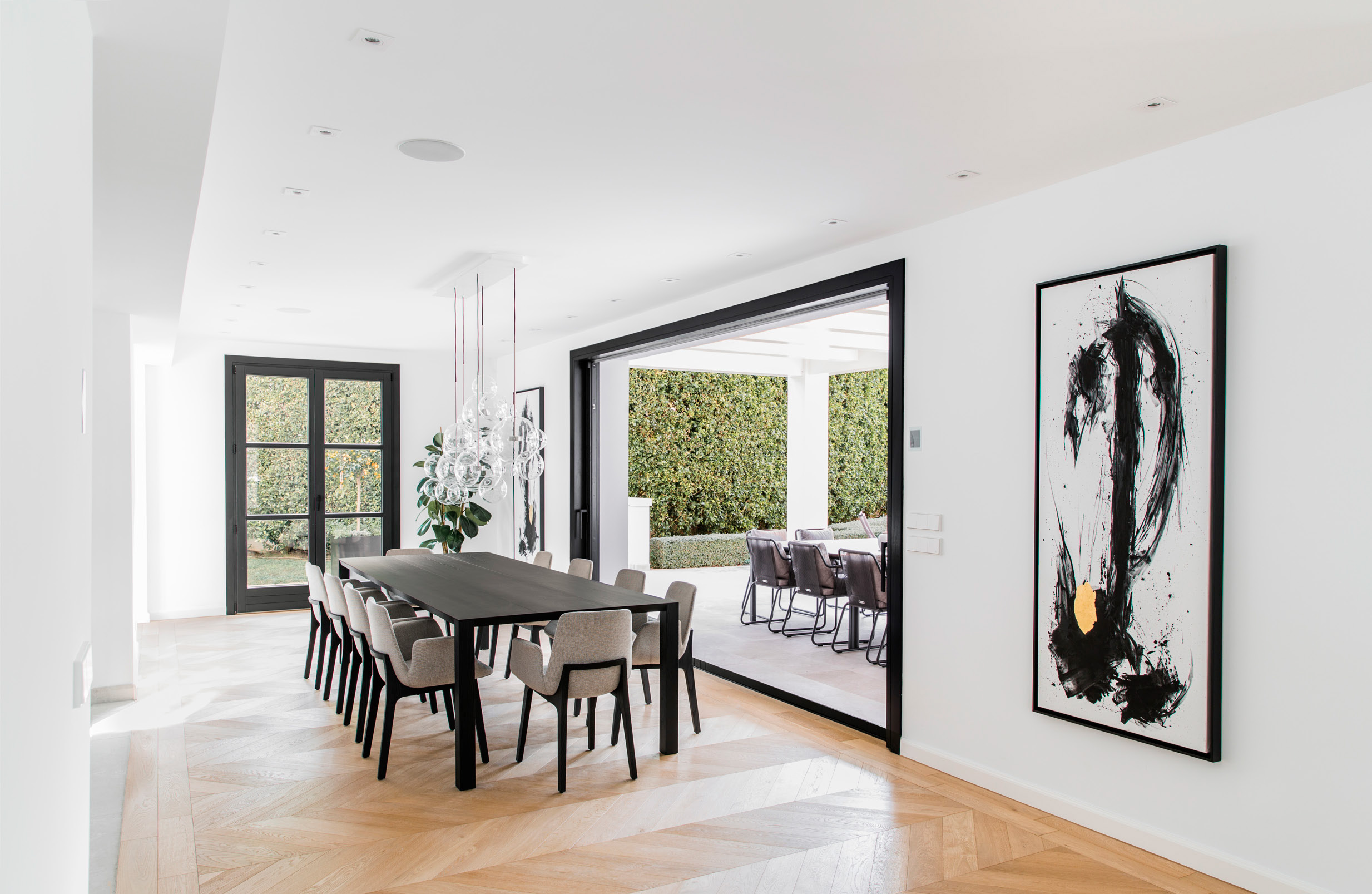 La estética holística de la villa se encuentra en perfecta armonía con su entorno. Una pieza de arquitectura llamativa y acogedora, el diseño de dos niveles ha creado un retiro privado tanto espacioso como moderno.Definida por proporciones clásicas, la villa cuenta con 5 suites, además de una terraza elevada con vista al mar que da a un jardín perfectamente proporcionado con piscina. Salga al aire libre a un espacio verde y relajante con lugares tranquilos y sombreados perfectos para compartir.Disfruta de la vida de planta abierta en su máxima expresión; un espacio contemporáneo impregnado de elegancia atemporal: hay fluidez y consistencia en toda la casa. La moderna cocina personalizada con electrodomésticos Miele se encuentra en el centro de una espaciosa sala de estar y comedor con puertas de vidrio de altura completa que enmarcan seductoras vistas al jardín.Los suelos de espiga de roble claro y una escalera característica complementan una variedad de carpintería a medida en toda la propiedad. Calefacción por suelo radiante, iluminación personalizada, ascensor privado y un sistema de audio se suman a la mezcla. Texturas cálidas y un estilo de diseño refinado ayudan a crear una sensación de calma en todo momento. Los socios confiables de marcas de alta gama incluyen Poliform, Gaggenau, Roda, Giopato & Coombes y Kone.Inundado de luz natural, esta es una propiedad y una ubicación increíbles para vivir todo el año. Hay una elegante piscina, casa de la piscina, terraza, jardín privado y chimeneas por dentro y por fuera. Los restaurantes, bares y boutiques del puerto deportivo de Puerto Portals están a poca distancia, al igual que la playa rodeada de pinares y el famoso campo de golf de 18 hoyos en el antiguo Bendinat. MallorcaSite, su agencia inmobiliaria recomienda esta propiedad por su ubicación, sus vistas, por su amplitud interior y su amplio espacio exterior, por estar construido con materiales de alta gama.
