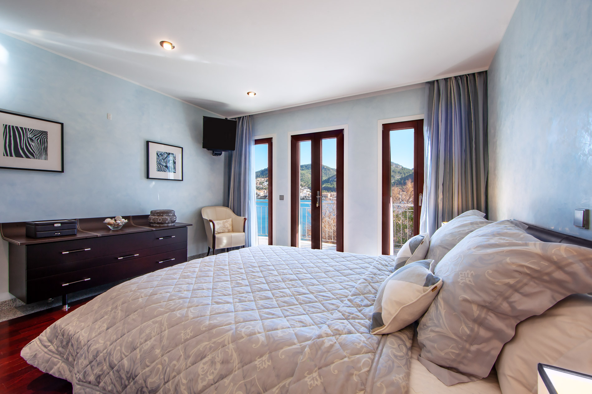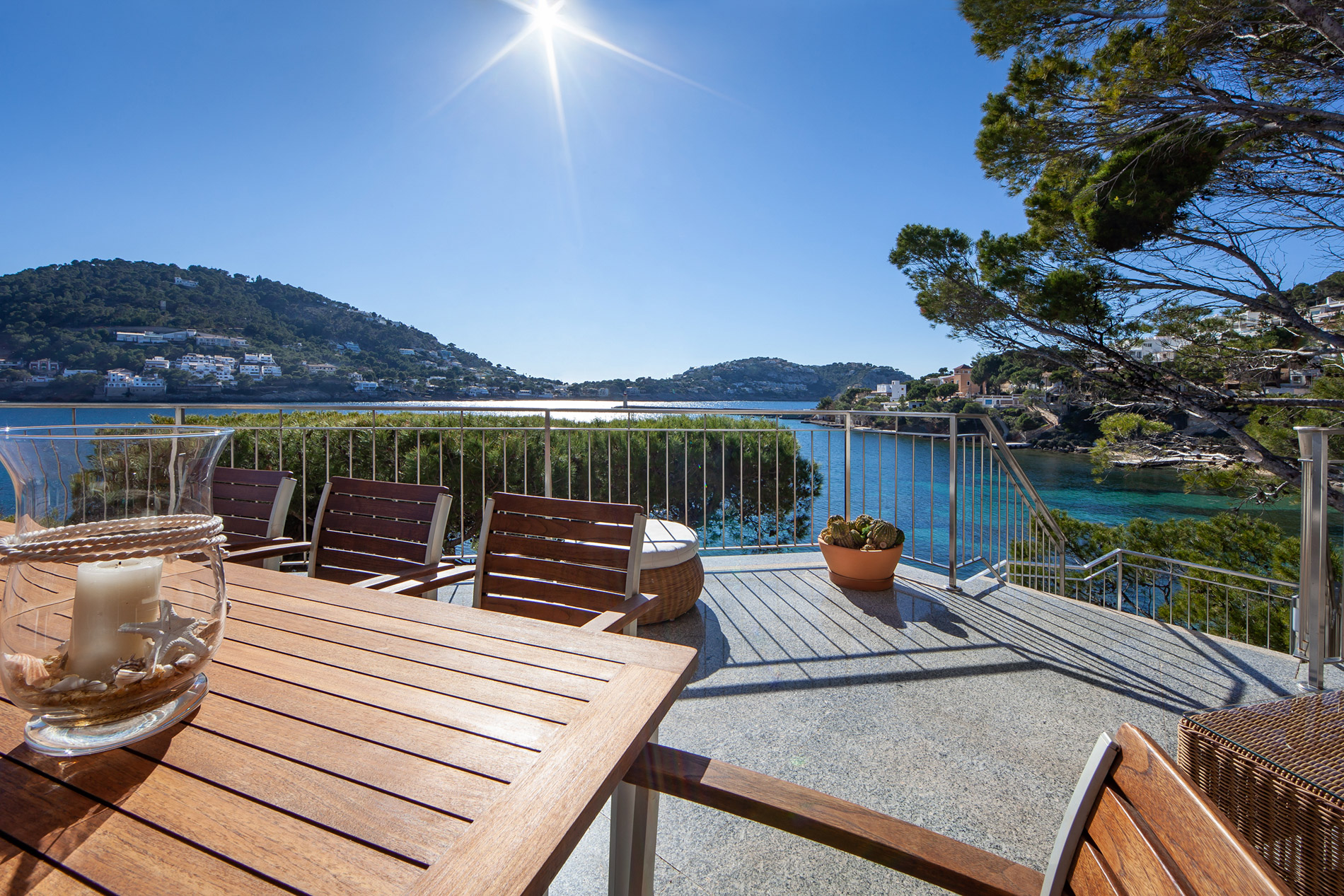 "The Mansion by the Docks": una propiedad única! Relájese y aprecie el momento: esta impresionante residencia de primera línea se encuentra en el elegante puerto de Puerto de Andratx y tiene su propio acceso al embarcadero y al cobertizo para barcos. La mansión junto a los muelles tiene un verdadero patrimonio mallorquín con su excelente ubicación, con vistas panorámicas al mar y al puerto. Esta villa se extiende sobre cuatro plantas (con fácil acceso a través de su propio ascensor) con un total de 557 metros cuadrados, 927 m2 de tamaño de parcela (incluyendo un muelle para barcos) y tiene cinco dormitorios con baños en suite. Además, hay una amplia área de oficina con mesa de conferencias, un cómodo salón comedor, cocina equipada con terraza de desayuno contigua, sala de cine con bar y tres plazas de aparcamiento exteriores. Destacan un apartamento de invitados independiente con acceso propio, tres plazas de aparcamiento exterior, calefacción por suelo radiante + sistema de agua caliente (gasoil), aire acondicionado, armarios calefactables, garaje propio para barcos, gran embarcadero para un total de tres barcos. El área exterior alberga tumbonas y un comedor. MallorcaSite, su agencia inmobiliaria en Mallorca, le recomienda esta propiedad por sus vistas, por tener embarcadero privado y por la ubicación. Fotos by Kristina Müller