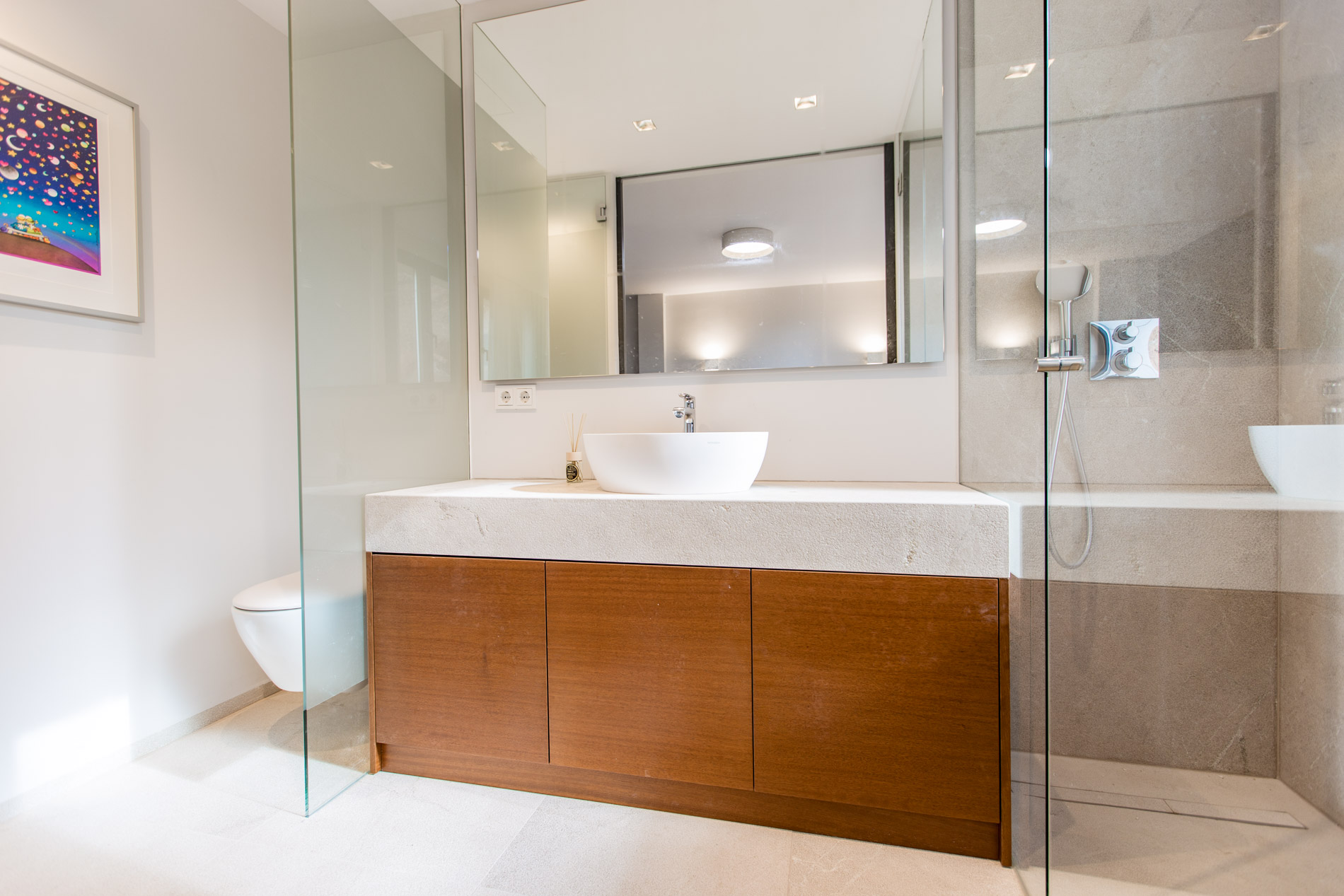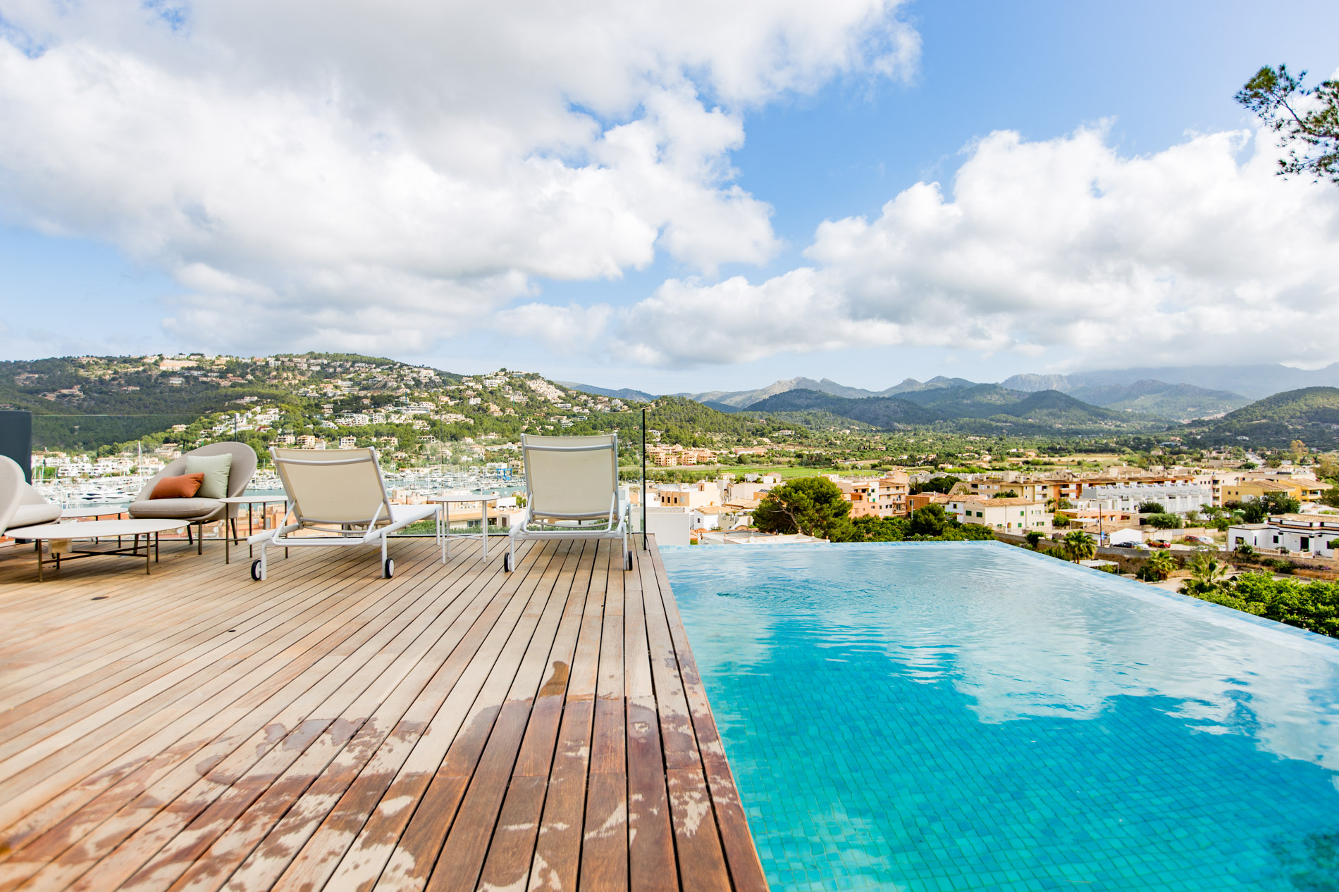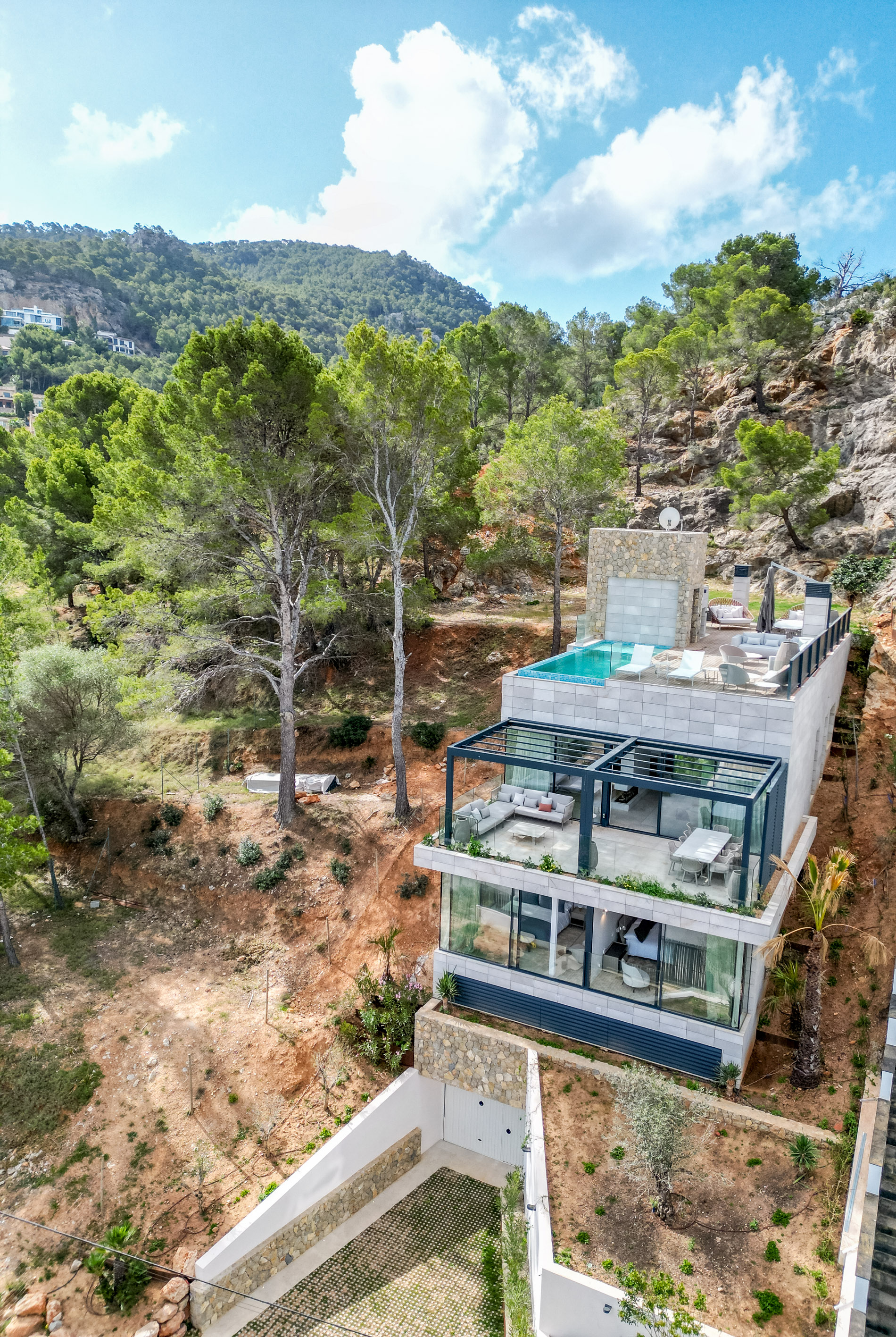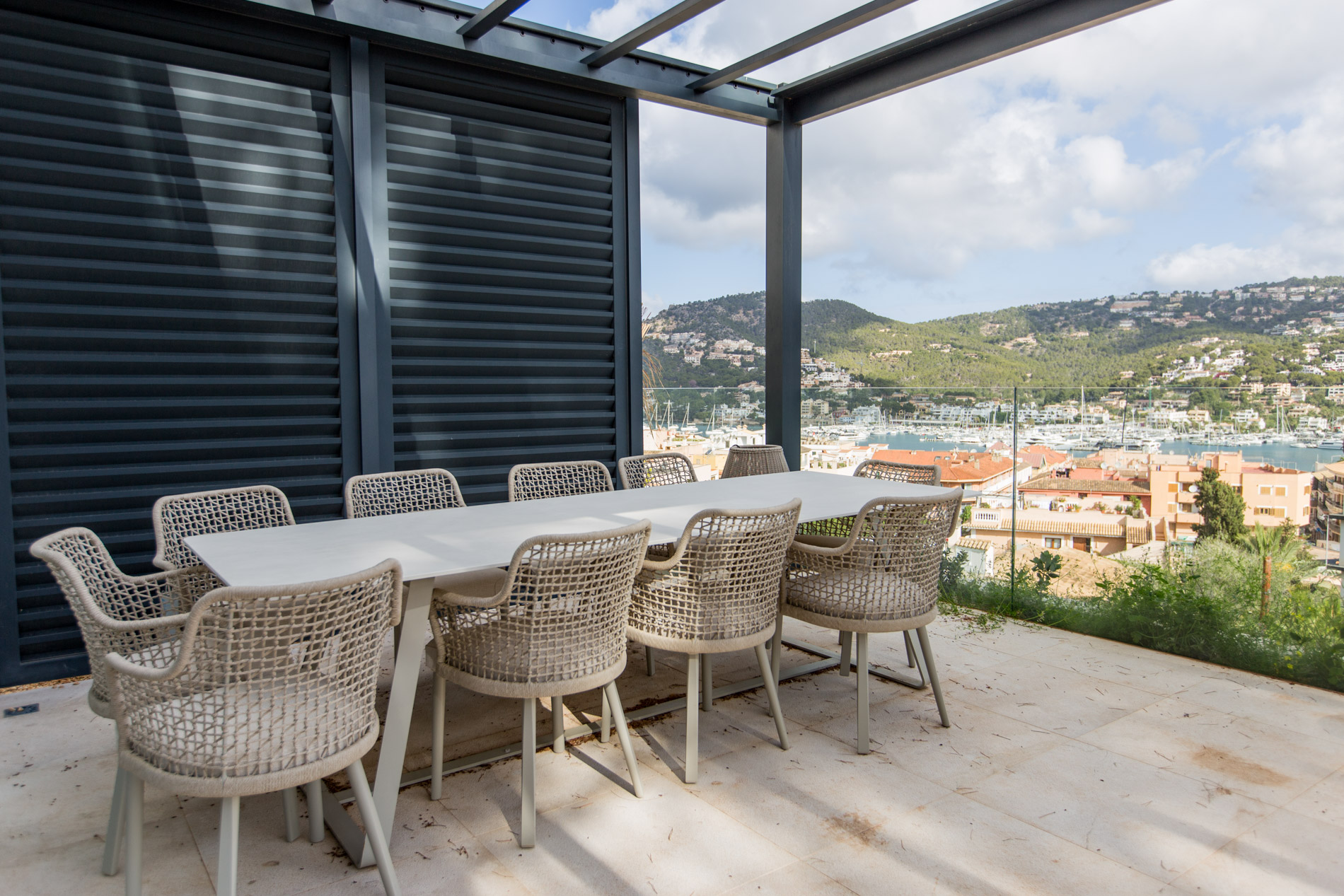 Villa estratégicamente ubicada en una de las áreas más prestigiosas de Port d'Andratx. Esta residencia combina de manera magistral vistas panorámicas al mar y a las montañas, ofreciendo la conveniencia de acceder fácilmente a pie a todos los encantos de este puerto emblemático. Esta majestuosa propiedad cuenta con 4 niveles, cada uno con su propio encanto y funcionalidad. Al entrar, te recibirán unas vistas inspiradoras gracias a su entrada con techo abierto, que también alberga un moderno gimnasio con sauna, un baño completo y una práctica área de lavandería. En los dos primeros niveles, descubrirás el lujo en cada rincón, con 4 dormitorios elegantemente diseñados, cada uno con su propio baño en suite. Destaca especialmente una habitación que cuenta con un amplio vestidor de diseñador, un tocador y una lujosa bañera independiente, todo ubicado en la planta baja. La vida social se despliega en el tercer nivel, donde un espacioso salón y un área de cocina-comedor se fusionan en un espacio abierto y luminoso. Desde aquí, accederás a una impresionante terraza que ofrece vistas panorámicas del mar y de la majestuosa Serra de Tramuntana. La guinda del pastel se encuentra en la azotea, donde te espera un oasis privado: una piscina deslumbrante con su propio solárium, un elegante comedor al aire libre, una zona de barbacoa y una cocina totalmente equipada. Todo esto rodeado de exuberantes jardines, proporcionando un ambiente sereno para disfrutar al aire libre. Además, la villa cuenta con la comodidad de 4 plazas de aparcamiento, incluyendo 2 espacios cubiertos, y 2 aseos adicionales para invitados. No podemos olvidar mencionar el ascensor que te llevará sin esfuerzo desde el garaje hasta la impresionante terraza en la azotea