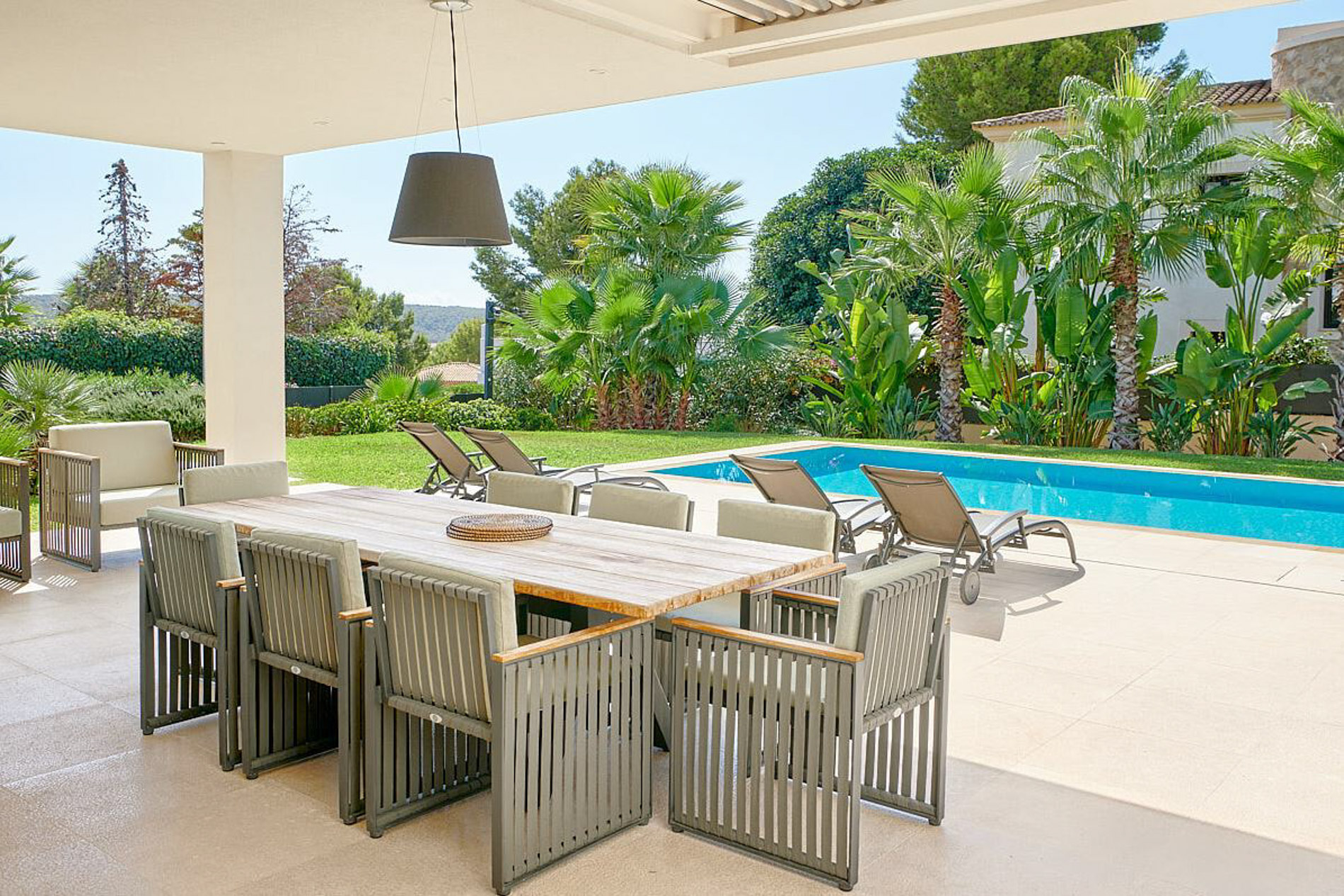 En una de las zonas más codiciadas de Nova Santa Ponsa, donde el silencio elegante de las villas mediterráneas marca el ritmo de la vida, emerge esta propiedad construida en 2020 como una declaración de calidad, diseño y confort. Su arquitectura limpia y contemporánea se abre al exterior con grandes ventanales que dibujan un diálogo constante entre luz, naturaleza y sofisticación . La villa se despliega sobre una generosa parcela de más de 1.300 m², abrazando un estilo de vida cálido y moderno. Su imponente entrada a doble altura anticipa la amplitud que domina el interior, donde materiales nobles, una bodega de diseño y espacios fluidos configuran un ambiente sereno y atemporal. Con aproximadamente 452 m² de superficie habitable y 595 m² construidos, la casa ofrece cinco dormitorios y seis baños, incluyendo una habitación independiente ideal para invitados, garantizando privacidad y comodidad para familia y visitas . El gran espacio social conecta salón, comedor y cocina premium en un entorno que invita a disfrutar la casa tanto en invierno como en verano. La chimenea y la calefacción por suelo radiante aportan calidez en los meses más fríos, mientras que las terrazas cubiertas y el aire libre se convierten en el epicentro de la vida estival. El espectacular infinity pool climatizado de 16 metros, con más de 60 m² de lámina de agua, convierte cada momento en una experiencia de bienestar mediterráneo . Los exteriores, rodeados de jardines cuidados y zonas de sombra, ofrecen distintos rincones para relajarse, leer, desconectar o compartir comidas al aire libre. Desde las terrazas superiores, la mirada se extiende sobre el entorno verde y la atmósfera tranquila que define esta exclusiva zona residencial. Situada en una de las calles más prestigiosas de Nova Santa Ponsa, la villa goza de un entorno sereno y elegante, muy cerca de Port Adriano, sus restaurantes, boutiques y el vibrante ambiente náutico de uno de los puertos más exclusivos del Mediterráneo . MallorcaSite recomienda esta propiedad por su impecable calidad de construcción, su diseño contemporáneo y su fantástica ubicación en una de las zonas más deseadas del suroeste.