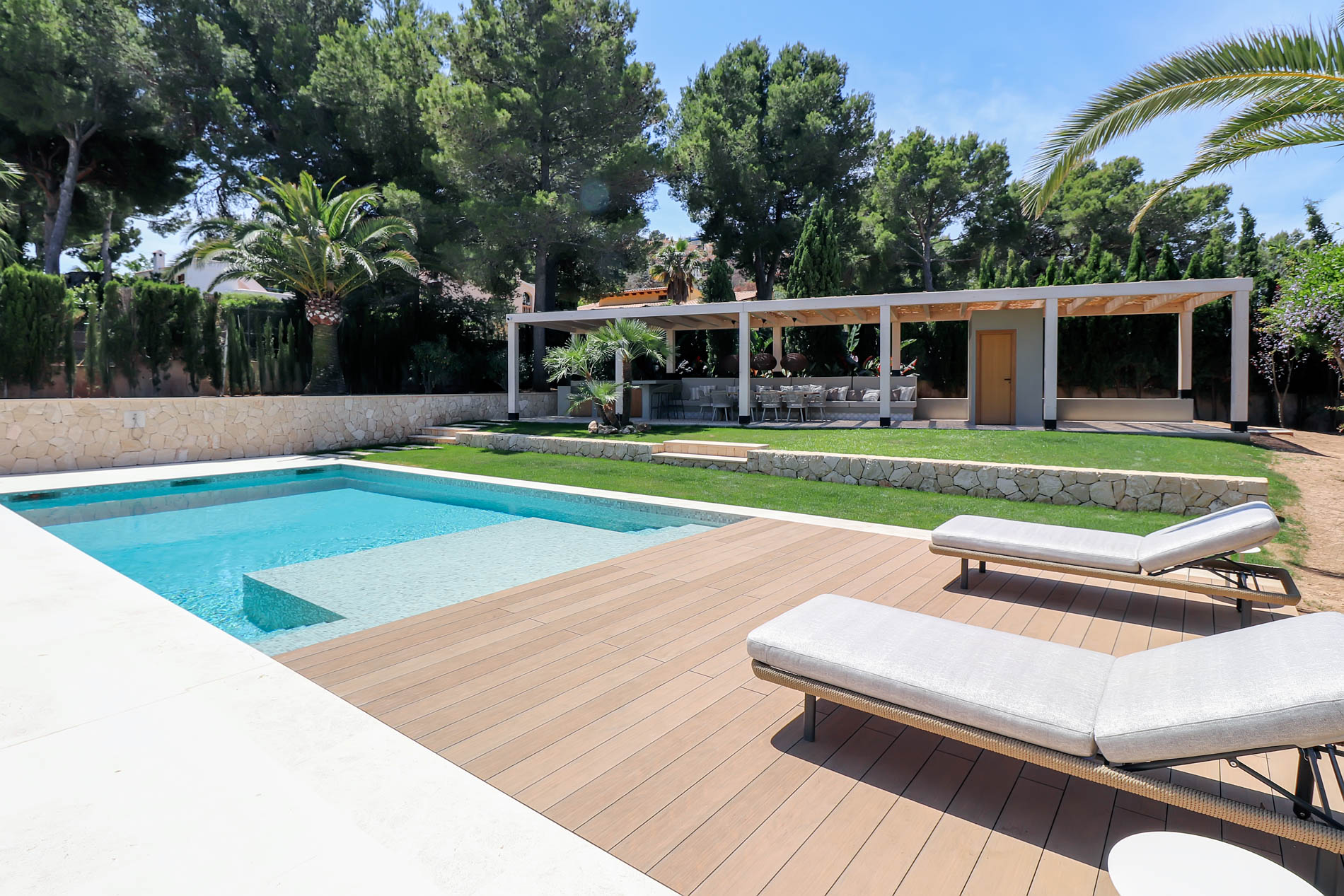 Experimente el verano mallorquín a través de esta increíble villa mediterránea en Santa Ponsa. Interiorismo, arquitectura y materiales nobles y autóctonos nos trasladan a un un mar de sensaciones desde donde disfrutar Mallorca en plenitud. Piedra, madera y vegatación mediterranea en un diseño cómodo con grandes espacios abiertos orientados al jardín son el deleite de la experiencia de vivir en el Mediterraneo.