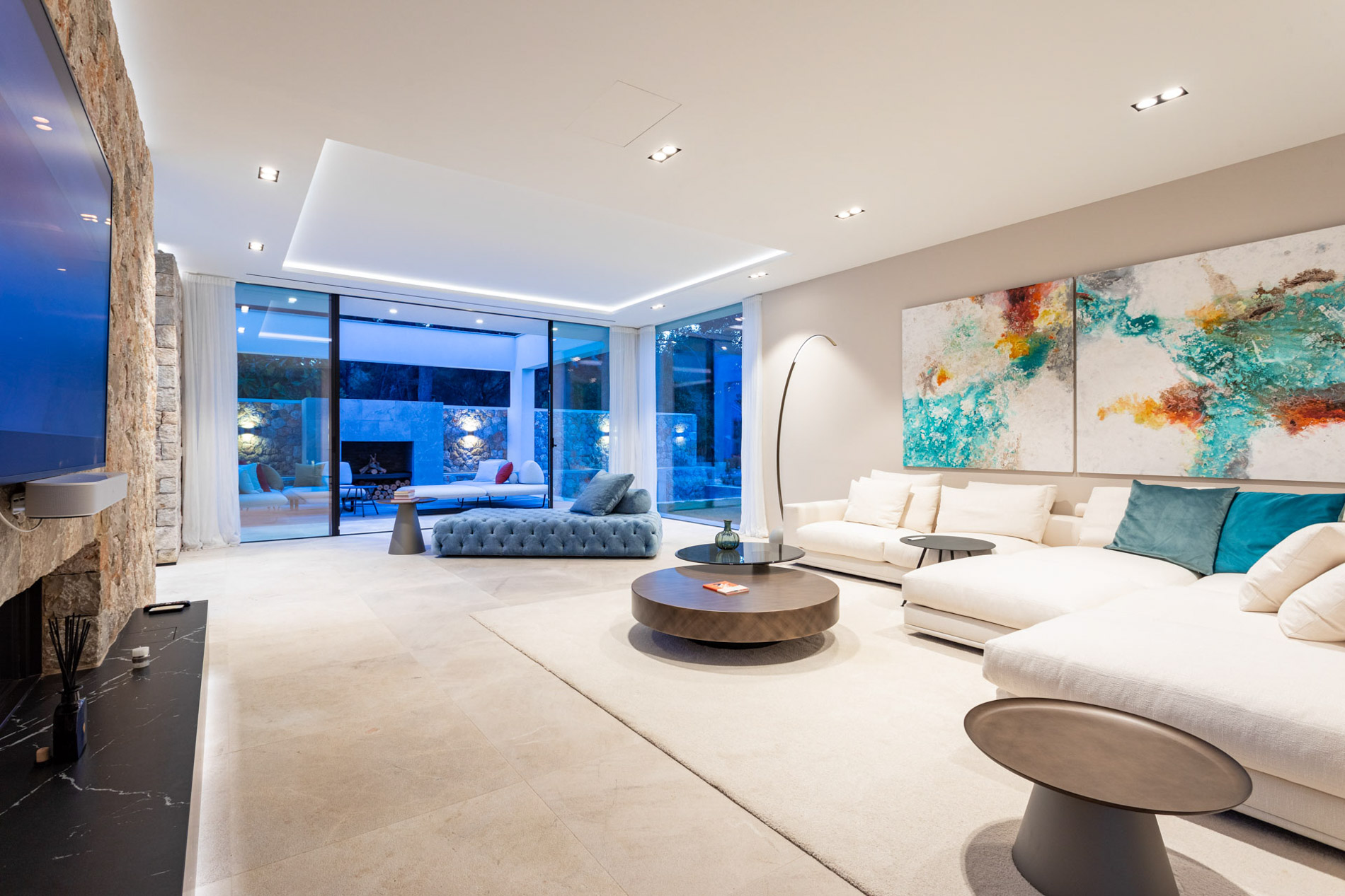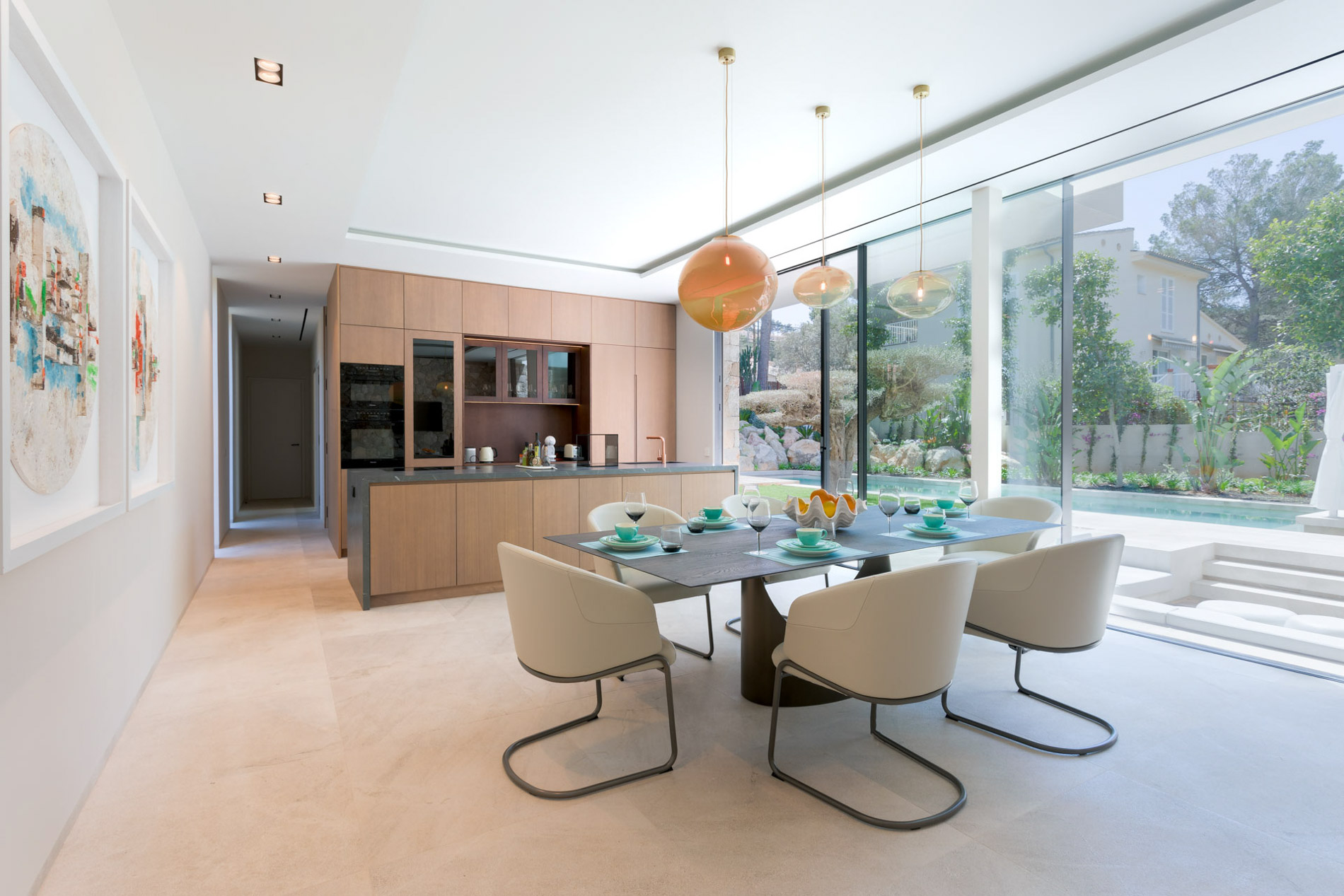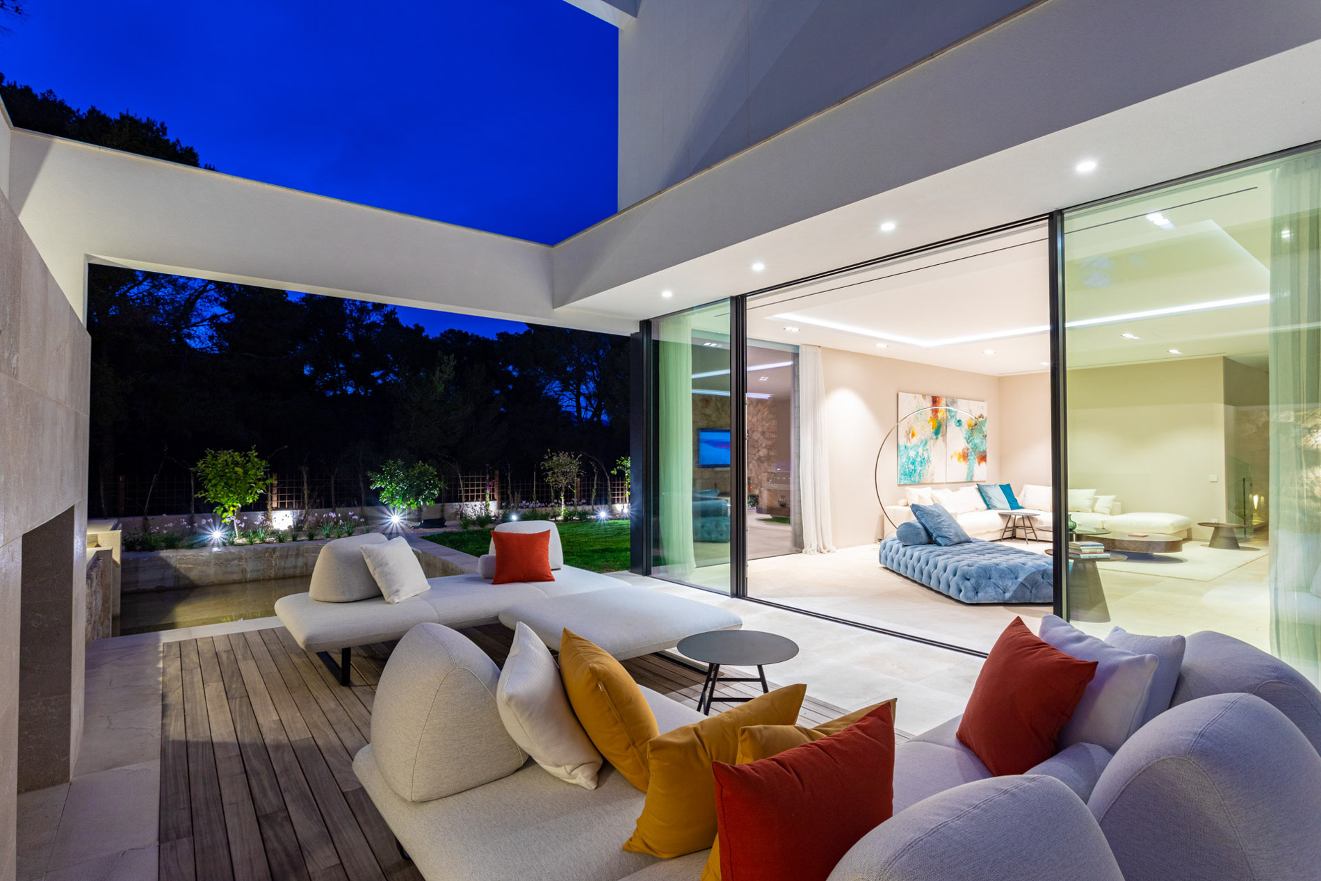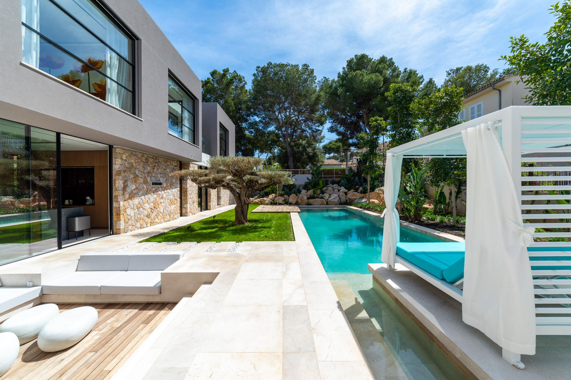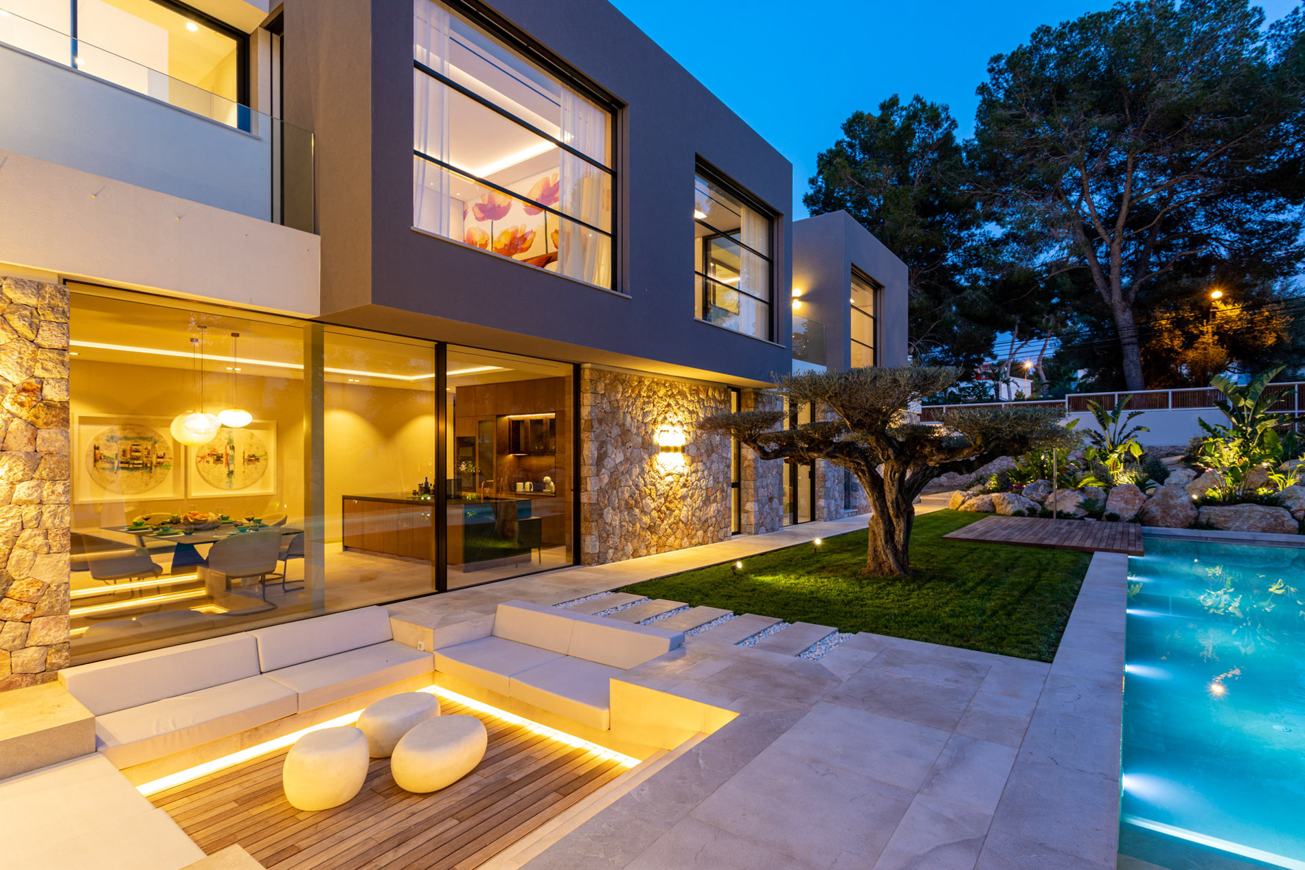 Descubra la Exclusividad Mediterránea: Esta lujosa villa enclavada en el corazón de Santa Ponsa, Mallorca, representa una rara oportunidad para quienes buscan un hogar que combine elegancia, comodidad y una ubicación privilegiada. Construida recientemente sobre una parcela llana y orientada al suroeste de aproximadamente 1.100m², esta impresionante residencia ofrece un entorno tranquilo y familiar, rodeado de exuberantes áreas verdes que aseguran la luz solar durante todo el día. Desde el momento en que se cruza la imponente entrada, los visitantes son recibidos por un majestuoso jardín que envuelve la casa, ofreciendo un ambiente de exclusividad y bienestar. El diseño interior, en la planta principal, se abre con una cocina de concepto abierto, un comedor contiguo y un espacioso salón que cuenta con una elegante chimenea de doble cara, conectando de manera fluida con el área de comedor. Desde estas estancias, se accede directamente al jardín y a la espléndida zona de piscina, ofreciendo una distribución perfecta para aquellos que buscan una residencia en Mallorca que fusiona el interior con el exterior. Esta planta también alberga un dormitorio con baño en suite, un segundo lavadero y un aseo de cortesía, brindando una funcionalidad excepcional para la vida cotidiana. Al subir a la planta superior, se accede a la zona de descanso, que consta de 4 dormitorios, cada uno con su propio baño en suite. Destacando entre ellos, el amplio dormitorio principal cautiva con su chimenea de diseño exclusivo, creando un ambiente de romance y serenidad que invita al relax. En el nivel inferior, la villa revela su faceta de entretenimiento y bienestar. Un espacio dedicado al ocio y al cuidado personal, que incluye una galería de vinos, una sala de estar equipada con una pantalla gigante de 3x3 metros, un gimnasio completamente equipado con marcas de renombre, una sala multifuncional que puede albergar una sauna, una lavandería adicional con amplios armarios para un mayor almacenamiento y un baño completo con ducha. Además, se encuentra una sala técnica que garantiza el funcionamiento óptimo de todas las instalaciones. MallorcaSite, su agencia inmobiliaria en Mallorca, recomienda esta propiedad por su ubicación, por ser de nueva construcción y las calidades.