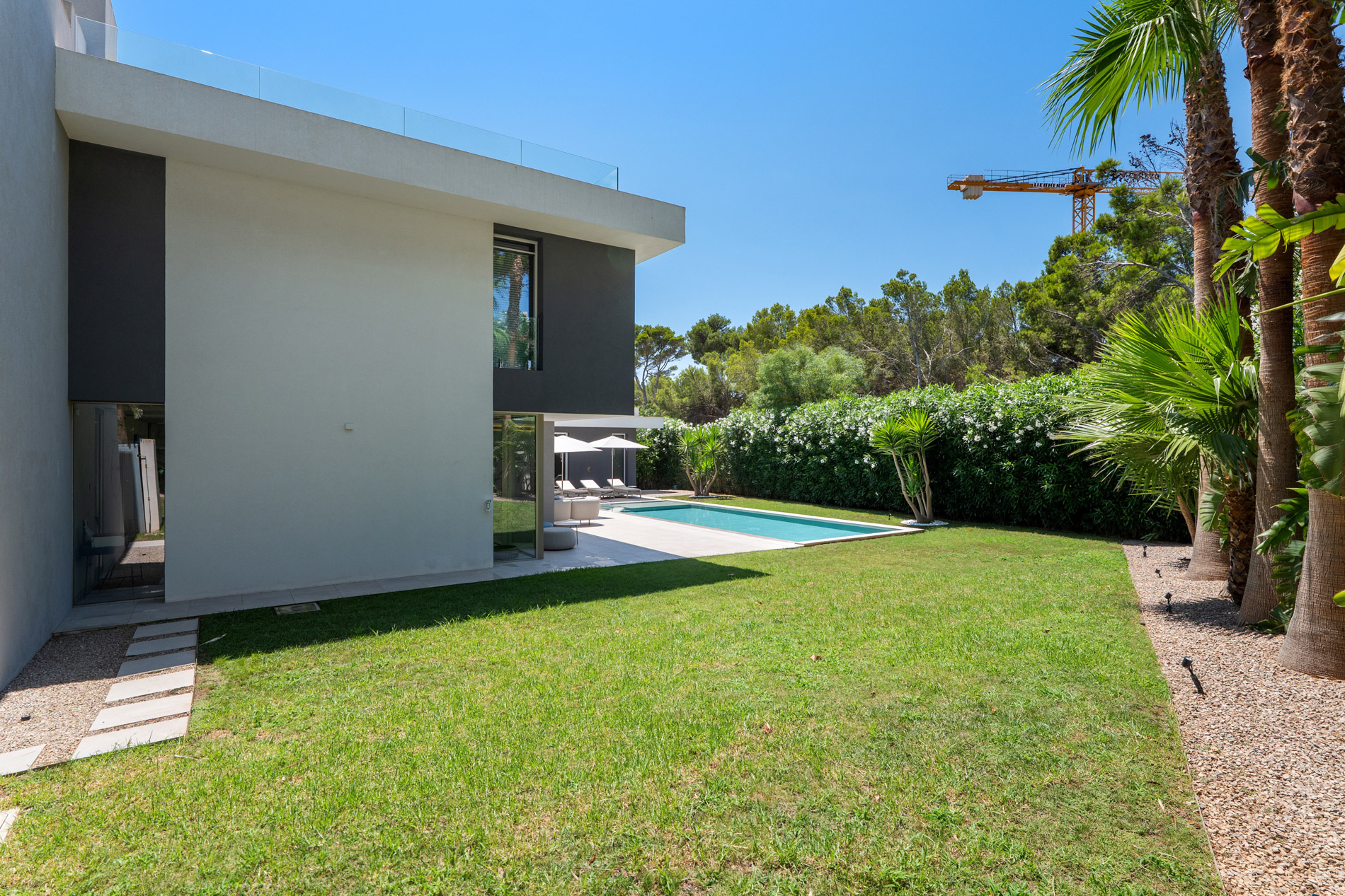 En una de las calles más tranquilas de Santa Ponsa, esta villa moderna despliega una estética serena que combina líneas puras, luz mediterránea y una arquitectura que invita a vivir sin prisas. Desde el primer paso, la casa transmite una sensación de orden, amplitud y calidez, gracias a sus materiales nobles y a un diseño que busca el equilibrio entre sofisticación y confort.