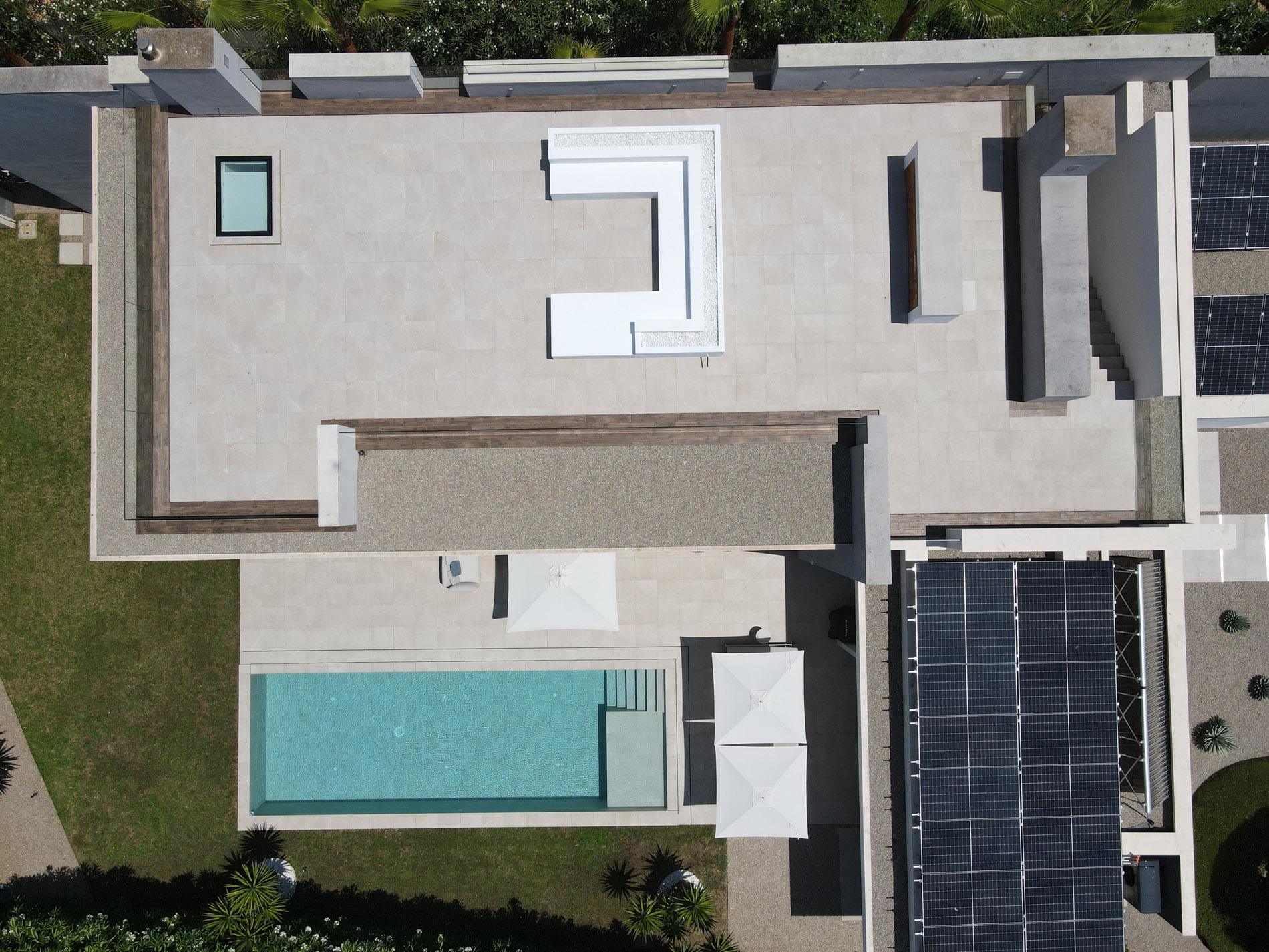 En una de las calles más tranquilas de Santa Ponsa, esta villa moderna despliega una estética serena que combina líneas puras, luz mediterránea y una arquitectura que invita a vivir sin prisas. Desde el primer paso, la casa transmite una sensación de orden, amplitud y calidez, gracias a sus materiales nobles y a un diseño que busca el equilibrio entre sofisticación y confort. Los grandes ventanales conectan el interior con el jardín privado, donde la piscina se convierte en el centro de las tardes lentas y los encuentros al aire libre. Todo fluye en la planta principal: una cocina contemporánea perfectamente integrada, un comedor amplio y un salón que se abre hacia la terraza, creando un ambiente continuo donde la luz es protagonista. Las cuatro habitaciones, distribuidas con criterio y privacidad, ofrecen vistas verdes y una atmósfera apacible. La suite principal destaca por su amplitud, el vestidor y un baño que invita al ritual cotidiano del bienestar. Espacios adicionales como la oficina, la zona de fitness o el amplio garaje subrayan la comodidad de la vida diaria. La azotea, diseñada como un refugio exterior, regala un horizonte abierto y la posibilidad de disfrutar del clima mallorquín desde otra perspectiva. Una casa que combina modernidad y calma, pensada para quienes buscan un refugio elegante en una de las zonas más demandadas del suroeste de Mallorca. MallorcaSite, su agencia inmobiliaria en Mallorca, recomienda esta propiedad por su diseño equilibrado, su privacidad y su cuidada calidad de vida. MallorcaSite, su agencia inmobiliaria en Mallorca, recomienda esta propiedad por su arquitectura moderna y equilibrada, su privacidad, la excelente calidad de sus acabados y su ubicación privilegiada en una de las zonas más demandadas de Santa Ponsa.