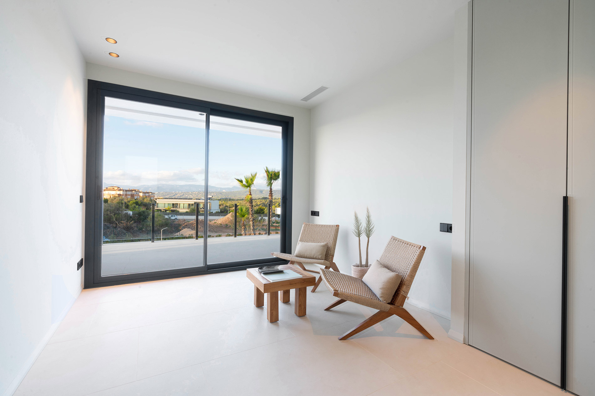 En una de las zonas residenciales más tranquilas y codiciadas del centro de Mallorca, surge esta villa contemporánea que combina un diseño arquitectónico de líneas limpias con una construcción sostenible basada en madera laminada cruzada (CLT), un sistema que aporta eficiencia energética, aislamiento natural y una estética cálida y moderna. La propiedad se despliega sobre un amplio terreno de 2.000 m² y ofrece 350 m² de vivienda donde cada espacio ha sido concebido para disfrutar de la luz, la amplitud y las vistas abiertas hacia la Bahía de Palma y la Serra de Tramuntana. En el interior, los materiales nobles y los detalles de diseño crean una atmósfera elegante y serena: suelos de Dekton, carpinterías de alta calidad y una distribución fluida que invita a vivir la casa con calma. La zona de día se abre hacia el jardín a través de grandes ventanales que conectan salón, comedor y exteriores de manera natural. La cocina, moderna y perfectamente integrada, actúa como núcleo social de la vivienda. Los cuatro dormitorios y tres baños combinan funcionalidad y confort, ofreciendo privacidad y luz en cada estancia. El exterior se convierte en un oasis perfecto para el clima mediterráneo: una piscina rodeada de vegetación, una casa de la piscina ideal para encuentros veraniegos, amplias terrazas que suman 195 m² y un comedor exterior pensado para prolongar la vida al aire libre. La villa cuenta además con un garaje subterráneo, ascensor desde el sótano hasta la azotea y espacios polivalentes que pueden destinarse a gimnasio, cine o bodega. Situada a solo quince minutos de Palma y muy cerca del prestigioso campo de golf de Son Gual, la propiedad ofrece la combinación perfecta entre naturaleza, privacidad y conexión con la ciudad. A pocos minutos, el encantador pueblo de Algaida dispone de todas las comodidades necesarias para la vida diaria. MallorcaSite, su agencia inmobiliaria en Mallorca, recomienda esta propiedad por su arquitectura sostenible, su diseño contemporáneo y su magnífica ubicación.