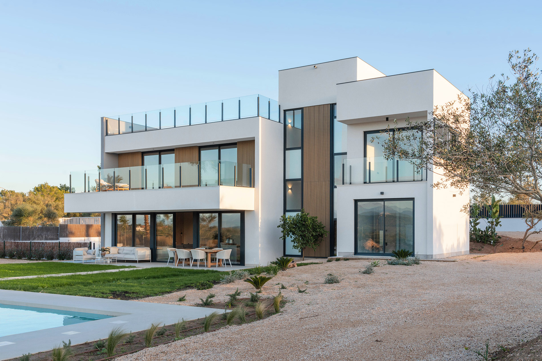 En una de las zonas residenciales más tranquilas y codiciadas del centro de Mallorca, surge esta villa contemporánea que combina un diseño arquitectónico de líneas limpias con una construcción sostenible basada en madera laminada cruzada (CLT), un sistema que aporta eficiencia energética, aislamiento natural y una estética cálida y moderna.