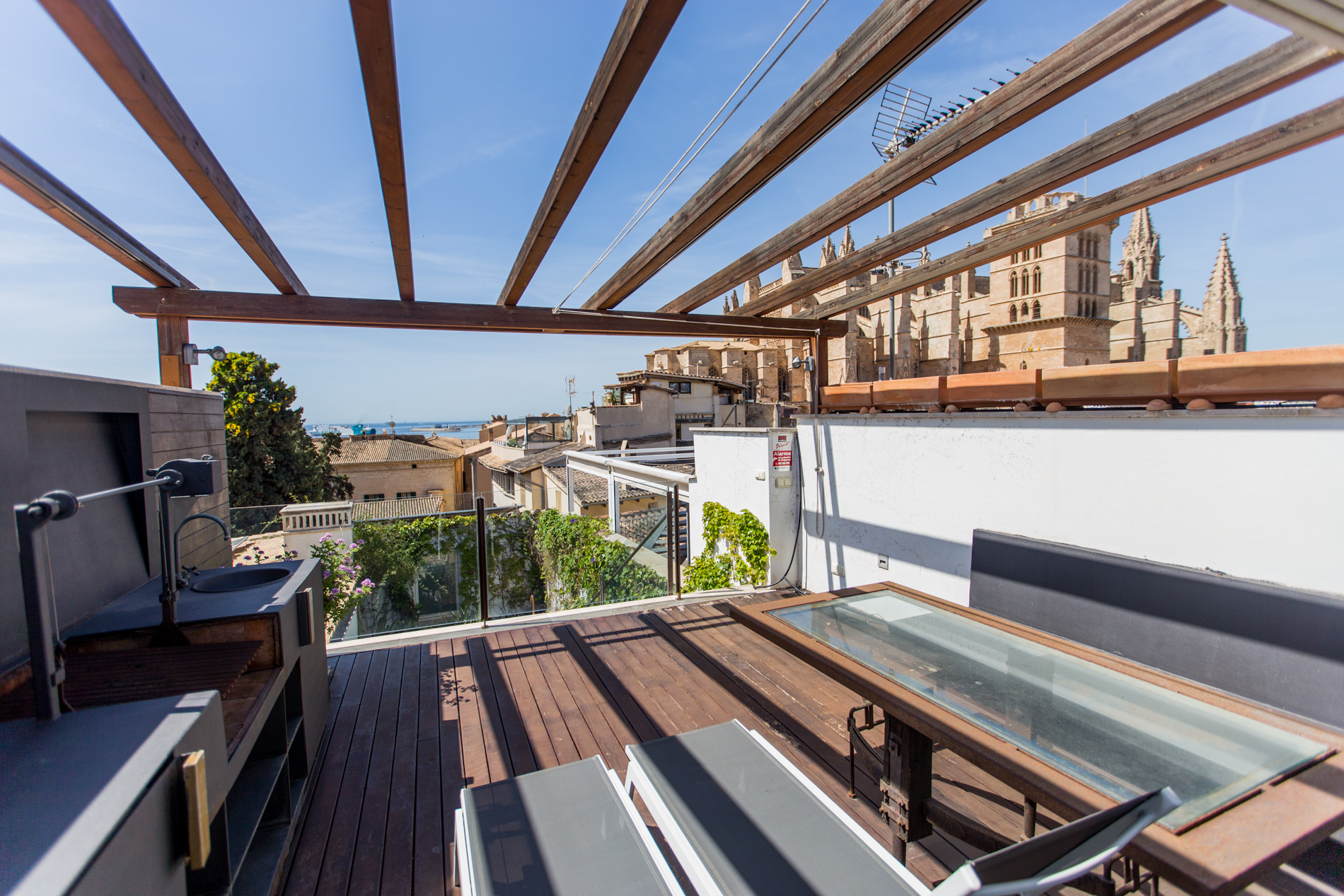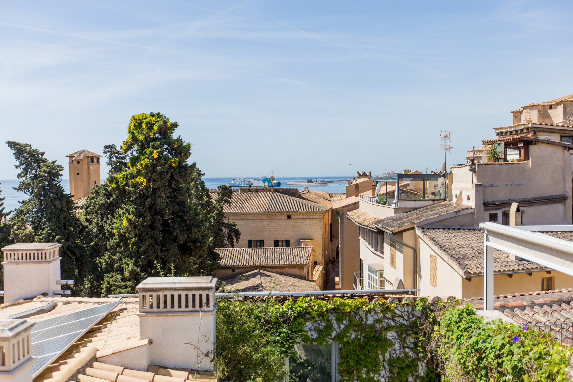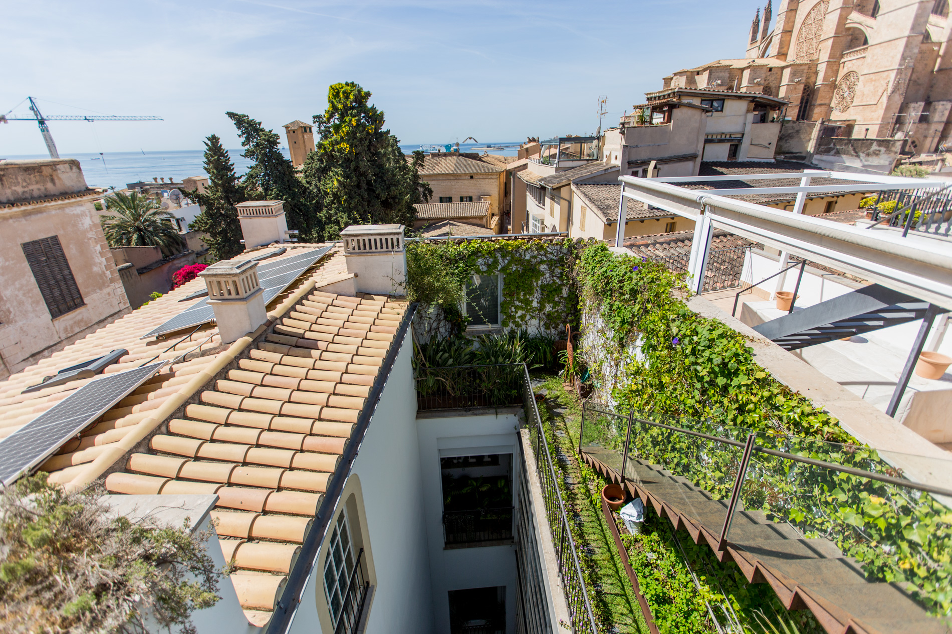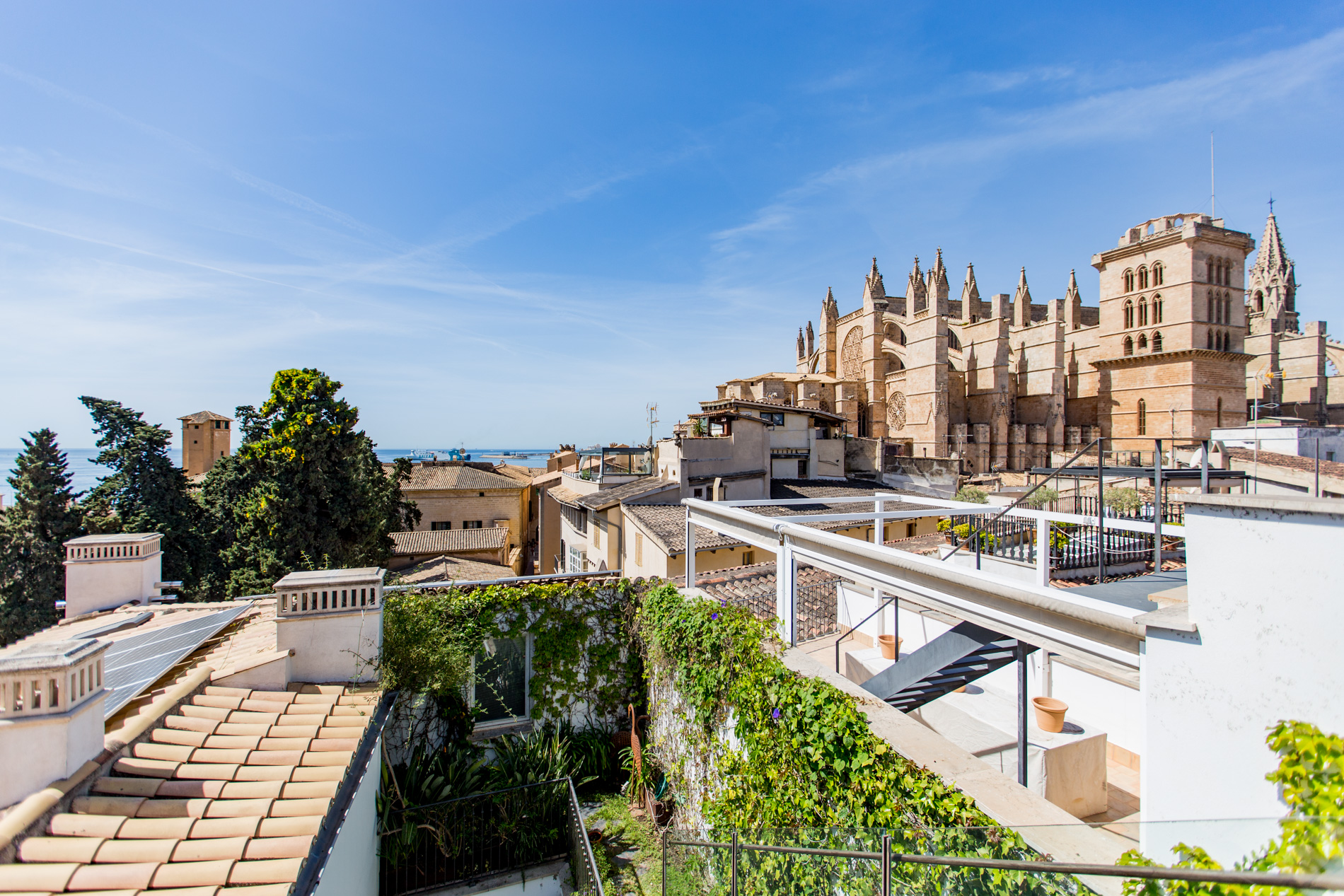 Casa señorial con vistas al mar y a la catedral de Palma con terraza solarium.A tan solo dos minutos andando de la catedral y en una de las mejores zonas del Casco Antiguo , emerge esta joya del siglo XIX donde el pasado y el presente se dan la mano.