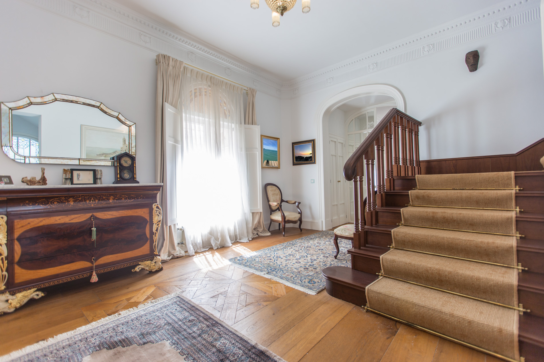 Casa señorial con vistas al mar y a la catedral de Palma con terraza solarium. A tan solo dos minutos andando de la catedral y en una de las mejores zonas del Casco Antiguo , emerge esta joya del siglo XIX donde el pasado y el presente se dan la mano. La casa distribuye superficie de aprox. 875m2 en varias plantas conectadas mediante ascensor y escaleras. El luminoso patio interior con un jardín vertical y otro japonés nos da la bienvenida y a la vez tiene el privilegio de estar conectado con el garaje. Cuenta con 8 dormitorios con baños en suite, más otro baño adicional, dispone de varios salones con gran luminosidad y carácter que gozan de vistas hacia los jardines de la vecindad , cocina equipada con electrodomésticos de alta gama para preparar deliciosos platos para disfrutarlos con su familia y amigos en alguno de los dos comedores o en la terraza solarium. En la planta de abajo se ubica la zona de spa con baño de vapor, piscina climatizada y zona de gimnasio. Otra de las exclusividades de esta propiedad es su amplia terraza solarium con cocina de verano dónde disfrutar de las vistas al mar y a la Catedral . MallorcaSite, su agencia inmobiliaria recomienda esta propiedad por su emplazamiento, por su historia, por su amplitud, por contar con terraza, ascensor y garaje, los tres ticks más buscados en el casco antiguo de Palma.