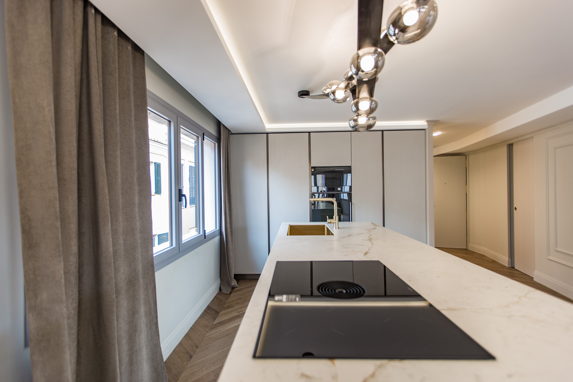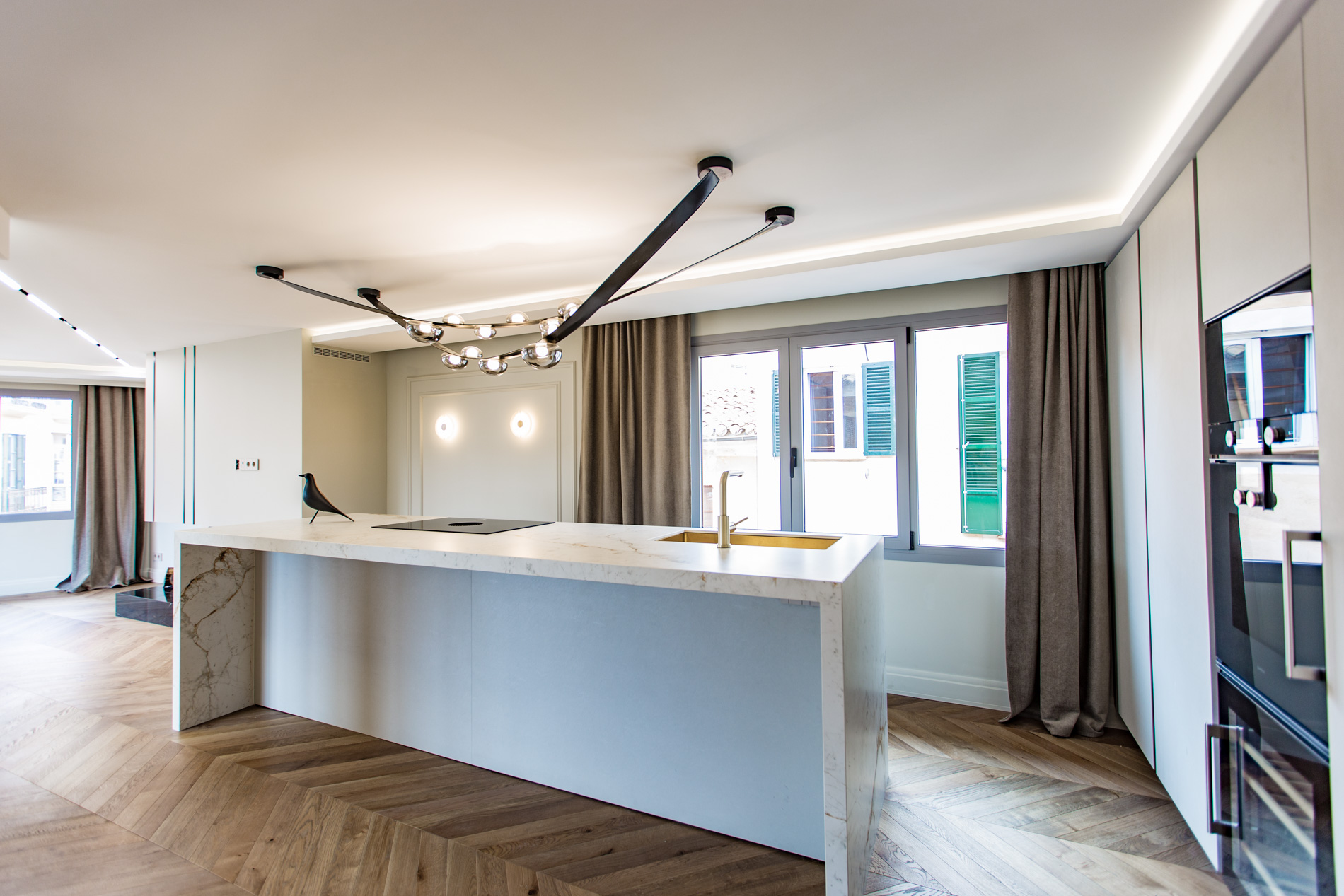 Apartamento en cuarta planta, con 161m2 utiles, dentro de un edificio con solarium comunitario en el corazón del casco antiguo de Palma. Con amplias vistas del casco antiguo desde su residencia así como el encanto de un barrio vibrante, los residentes disfrutarán de la máxima privacidad junto con la inmersión en las muchas actividades culturales de la ciudad. Con una ubicación perfecta en el corazón del casco antiguo de Mallorca, este piso ofrece delicias tanto naturales como históricas. El piso completamente reformado con altas calidades ofrece tres dormitorios dobles, uno de ellos con baño en suite, y otro dormitorio individual. Baños sofisticados y una cocina de diseño con una amplia isla, junto a un amplio salón con chimenea aseguran que su hogar cumpla todos sus deseos. La vivienda cuenta con ascensor y con plaza de aparcamiento en el mismo edificio. MallorcaSite, su agencia inmobiliaria en Mallorca, le recomienda esta propiedad por su ubicación, por ser de nueva construcción y las calidades.