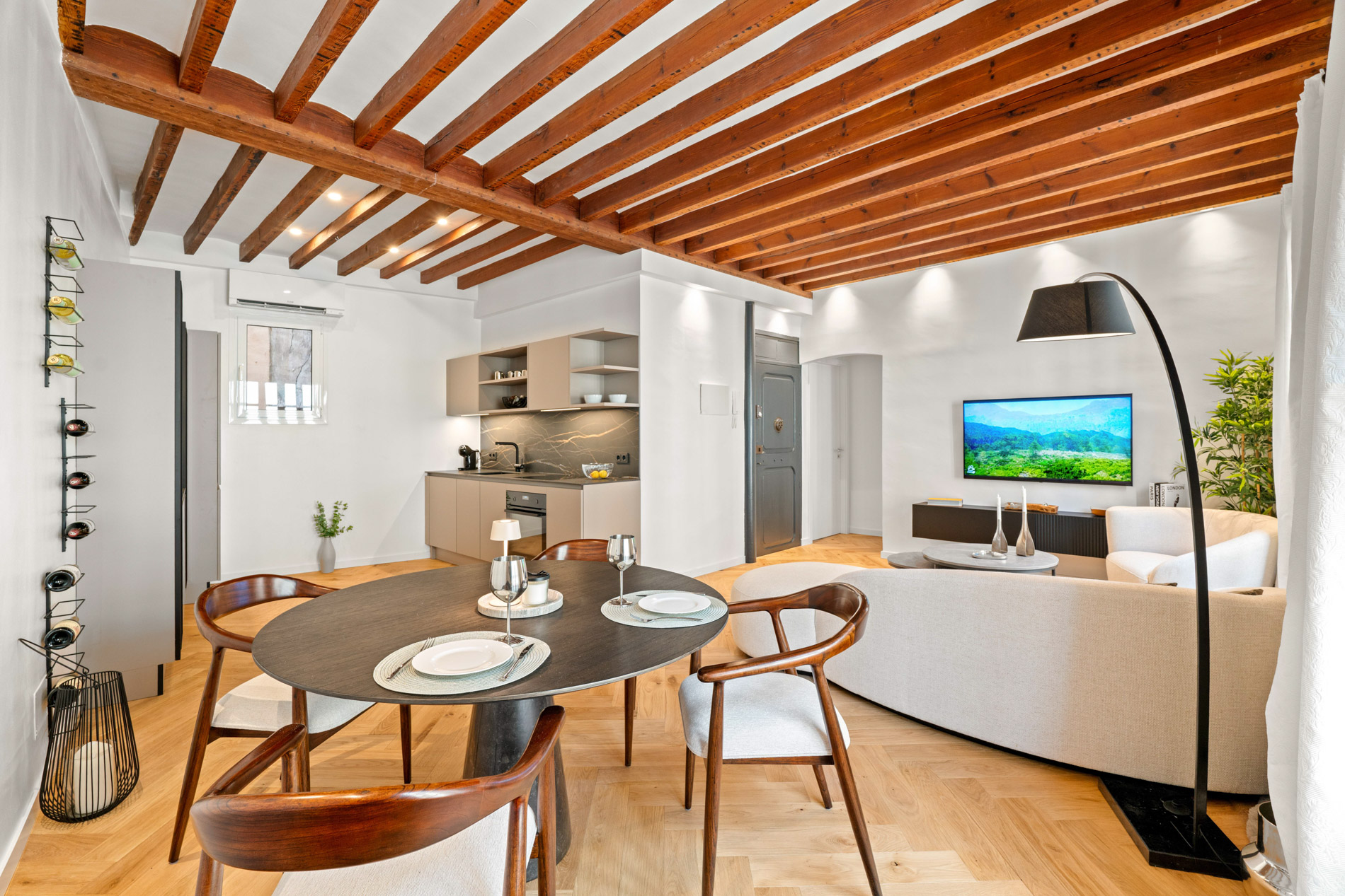 Descubre este elegante apartamento de un dormitorio y un baño, situado a escasos pasos de la emblemática Plaza Mayor. La propiedad ha sido completamente reformada con exquisito gusto, combinando el encanto de la arquitectura tradicional con las comodidades modernas.