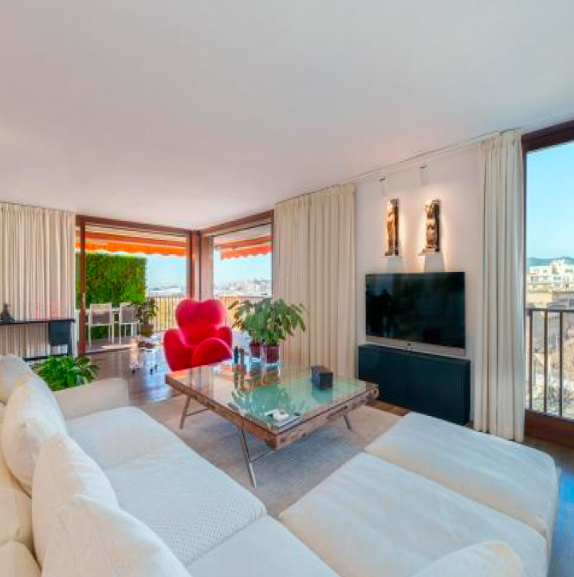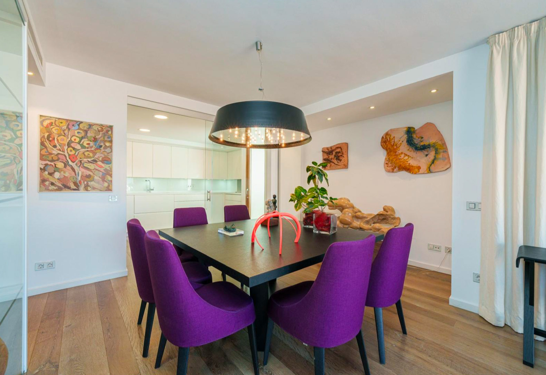 Descubre esta joya en Paseo Mallorca, ubicada en una impresionante finca con vistas panorámicas al mar, la ciudad y la majestuosa catedral. Con un diseño diáfano y lleno de luz natural, esta propiedad te recibe con un amplio hall de entrada que te invita a explorar cada rincón. El espacioso salón comedor, con puertas correderas que se abren al balcón, ofrece un ambiente perfecto para relajarse o recibir a tus invitados mientras disfrutan de las vistas. La cocina, abierta pero discretamente separada por un elegante panel de cristal, garantiza que la convivencia sea armoniosa, sin interferencias de los vapores de la cocina. Dos acogedores dormitorios, con armarios empotrados, comparten un moderno baño con ducha, mientras que la suite principal te brinda un oasis de tranquilidad con su baño privado, completo con ducha, bañera y un balcón privado con vistas a la catedral. Además, cuenta con una práctica zona de lavandería. Los impresionantes techos altos, los suelos de parquet y los espacios luminosos te envuelven en una atmósfera de elegancia y comodidad. La orientación sur asegura una iluminación natural durante todo el día. Y no te preocupes por el aparcamiento, ya que esta propiedad incluye dos plazas de garaje accesibles directamente desde el ascensor de la finca. La comodidad se completa con un sistema de calefacción por radiadores a gas y aire acondicionado. MallorcaSite, su agencia inmobiliaria en Mallorca, recomienda esta propiedad por su ubicación, sus vistas y por ser reformado.