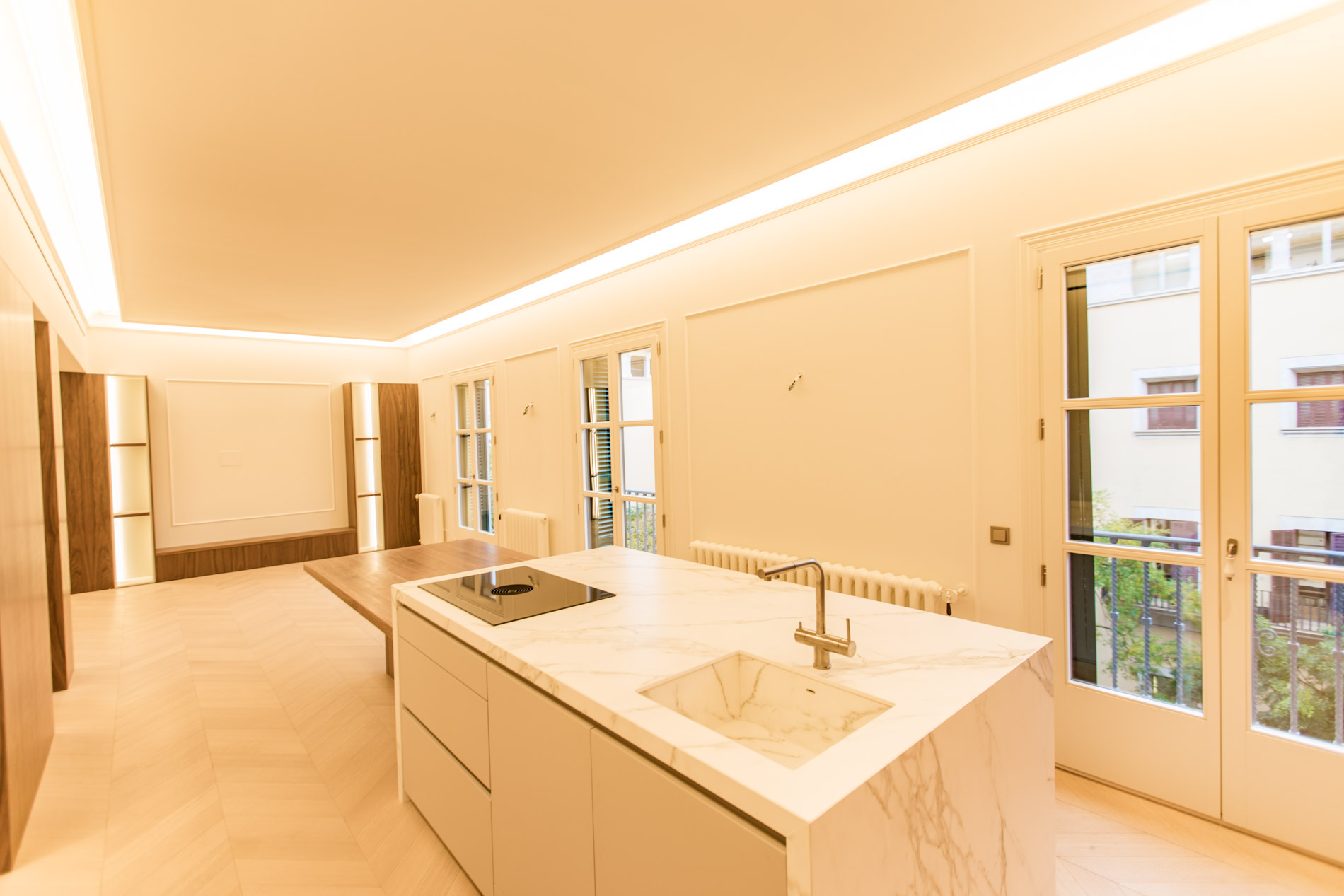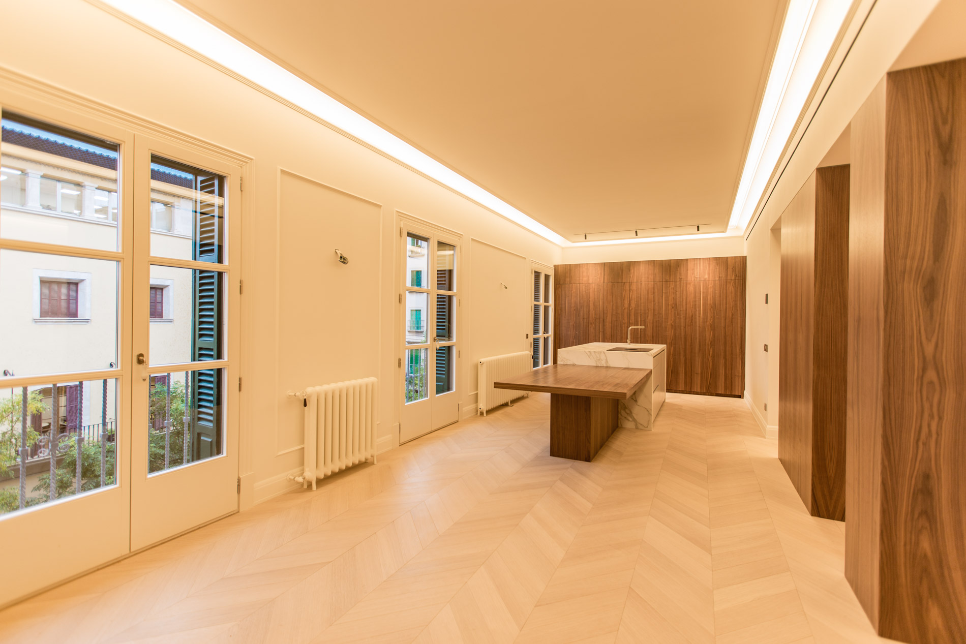 Descubre la elegancia redefinida en este magnífico piso, completamente renovado con meticulosa atención al detalle y utilizando solo los materiales más exquisitos. Ubicado frente al animado Mercat de Olivar en Palma, este hogar ofrece una experiencia única que combina tranquilidad en una zona serena de la ciudad, con la comodidad de tener tiendas, restaurantes y teatros a solo unos pasos.