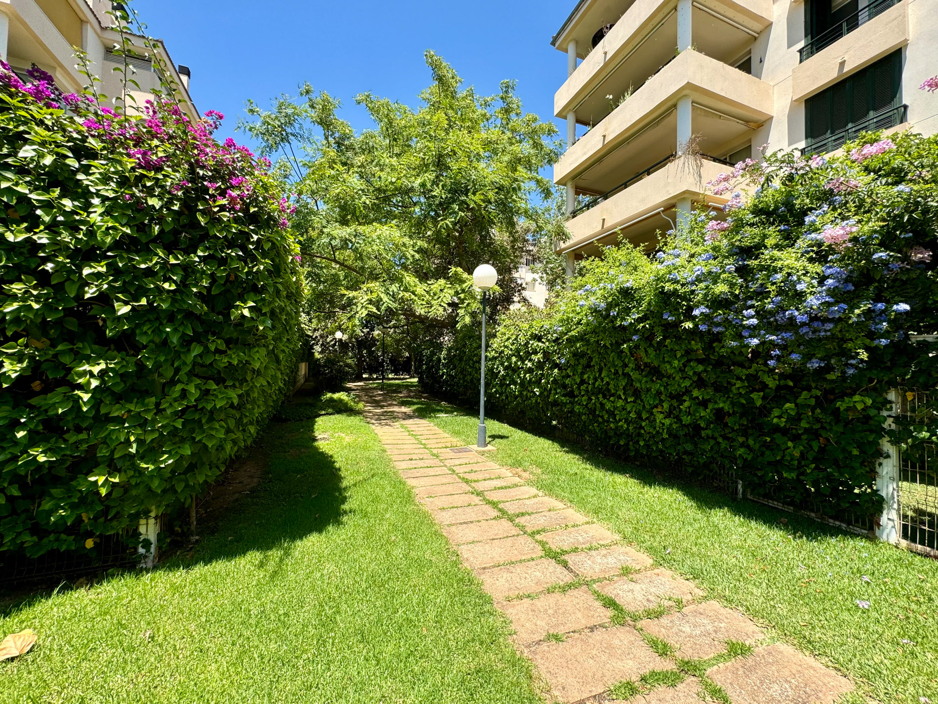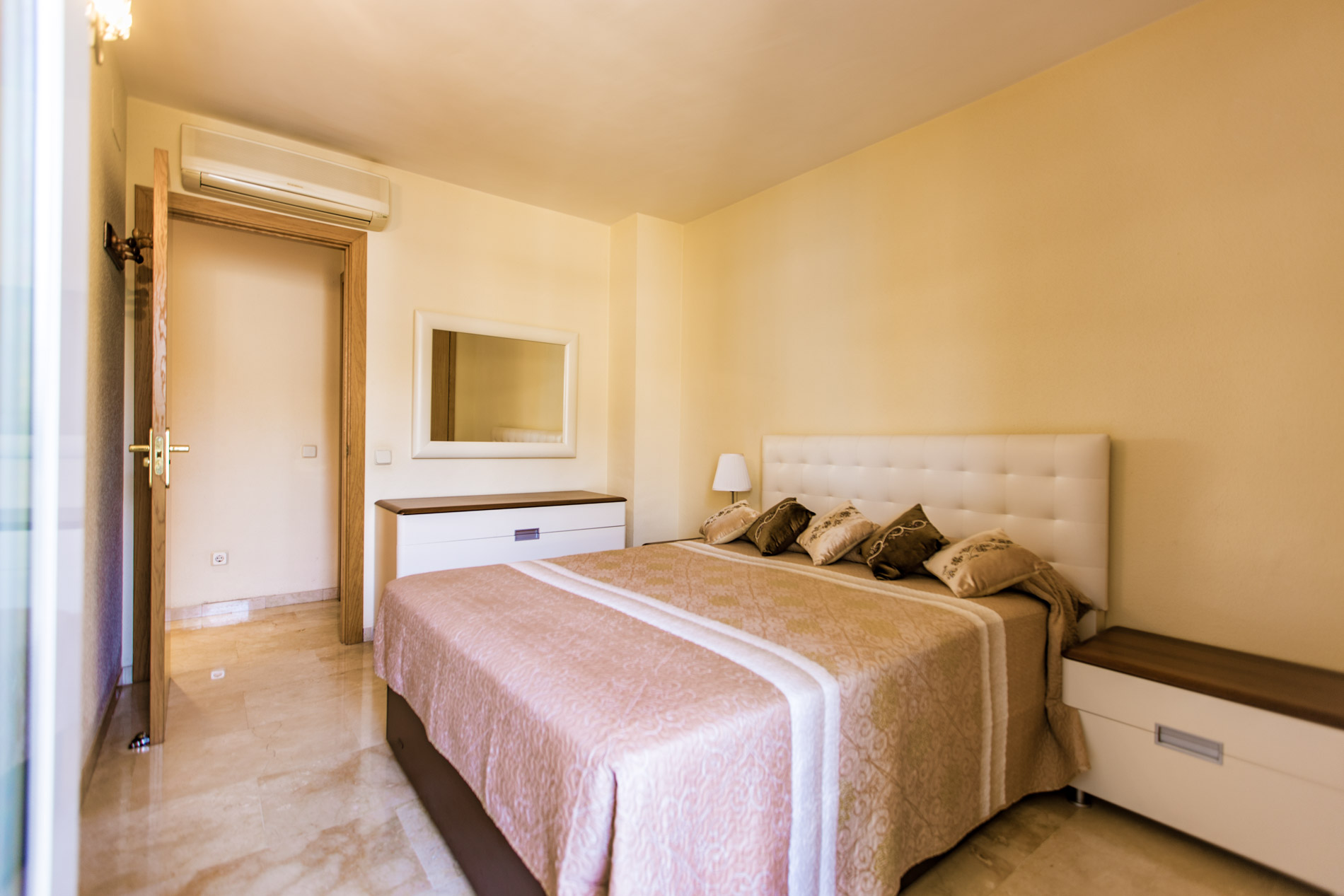 Piso de 126m2 situado en el principio de El Arenal (a las afueras de Palma), a 7 Km. del aeropuerto de Palma. El piso cuenta con salón comedor con terraza, cocina, lavadero, 3 dormitorios, 2 baños, armarios empotrados, aire acondicionado, calefacción, garaje y trastero, en el centro de la comunidad, nos encontramos ante una zona comunitaria para todos los vecinos con una gran piscina y parque infantil. La vivienda esta dividida en tres zonas: a la derecha se encuentra la cocina con lavadero, en frente el salón-comedor y a la izquierda las habitaciones y baños. La cocina está totalmente amueblada (incluyendo electrodomésticos) y da a un pequeño lavadero. El salón da a una amplia terraza con vistas despejadas. Los tres dormitorios tienen armarios empotrados. Los dos baños también están totalmente amueblados. El piso incluye un parking amplio en el garaje y un trastero. MallorcaSite, su agencia inmobiliaria recomienda esta propiedad por estar cerca a la playa, de Palma y por ser una comunidad bien cuidada.