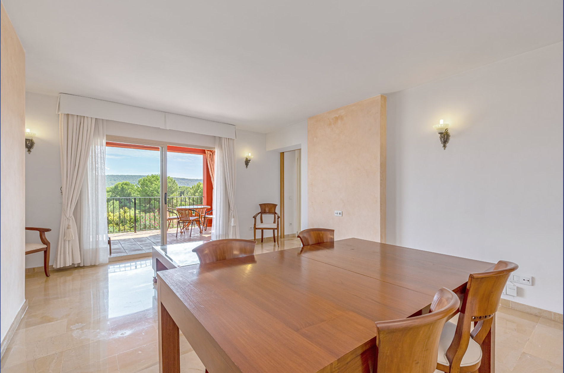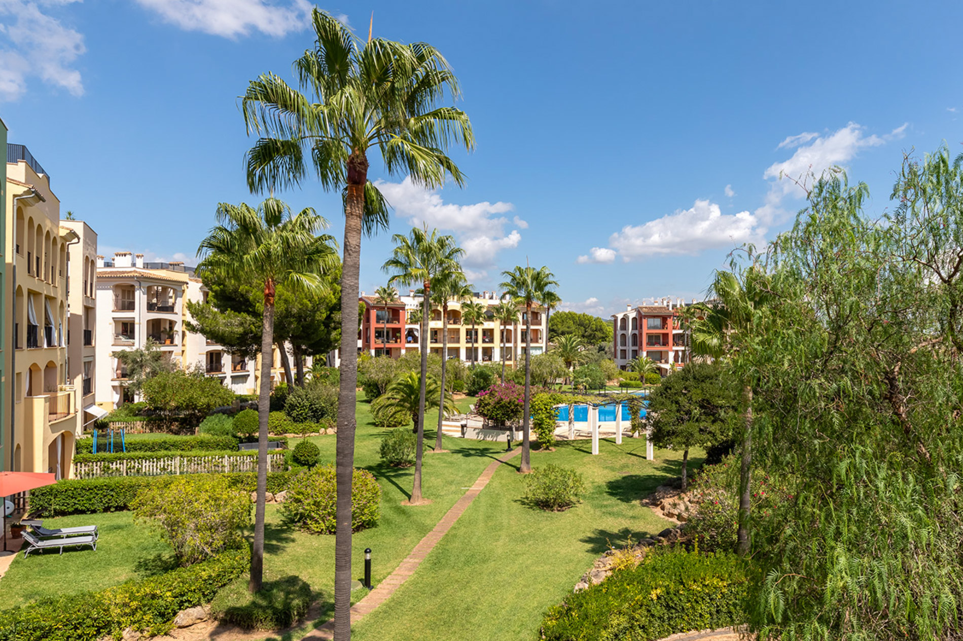 Descubre este luminoso apartamento en la exclusiva comunidad residencial Golf Santa Ponça III, un oasis de tranquilidad perfectamente cuidado. Al ingresar, te recibirá un acogedor salón que conecta con todas las estancias: tres elegantes dormitorios con baños en suite, un amplio salón ideal para compartir momentos inolvidables, y una cocina independiente completamente equipada con electrodomésticos Bosch, perfecta para los amantes de la cocina. Imagina disfrutar de la suave brisa del Mediterráneo desde tus dos terrazas cubiertas, donde podrás relajarte y disfrutar del entorno. El apartamento cuenta con puertas de madera de calidad, suelos de mármol brillantes y un mobiliario de alta gama que añaden un toque de sofisticación. Otras comodidades incluyen aire acondicionado reversible y un práctico filtro de agua, con la opción de instalar una chimenea para esos momentos acogedores. La comunidad ofrece un estilo de vida inigualable, con tres amplias piscinas y una piscina infantil, rodeadas de un jardín pintoresco y bien cuidado. Además, contarás con seguridad las 24 horas, una plaza de parking de 20 m² y un trastero de 12 m². Ubicado a solo 5 minutos a pie de la playa y el puerto deportivo de Port Adriano, este apartamento te ofrece maravillosas vistas al campo y la posibilidad de disfrutar de un ambiente vibrante. El centro de Palma está a 20 minutos en coche y el aeropuerto internacional a unos 30 minutos. Santa Ponsa es famosa por su hermosa bahía y su playa orientada al oeste, donde podrás disfrutar del sol durante todo el día. A lo largo de la costa, encontrarás un encantador parque, un extenso paseo marítimo y una variedad de restaurantes, cafés y tiendas. En la parte superior, se sitúan complejos residenciales y villas de alto standing que completan este atractivo destino. ¡No pierdas la oportunidad de hacer de este lugar tu nuevo hogar!