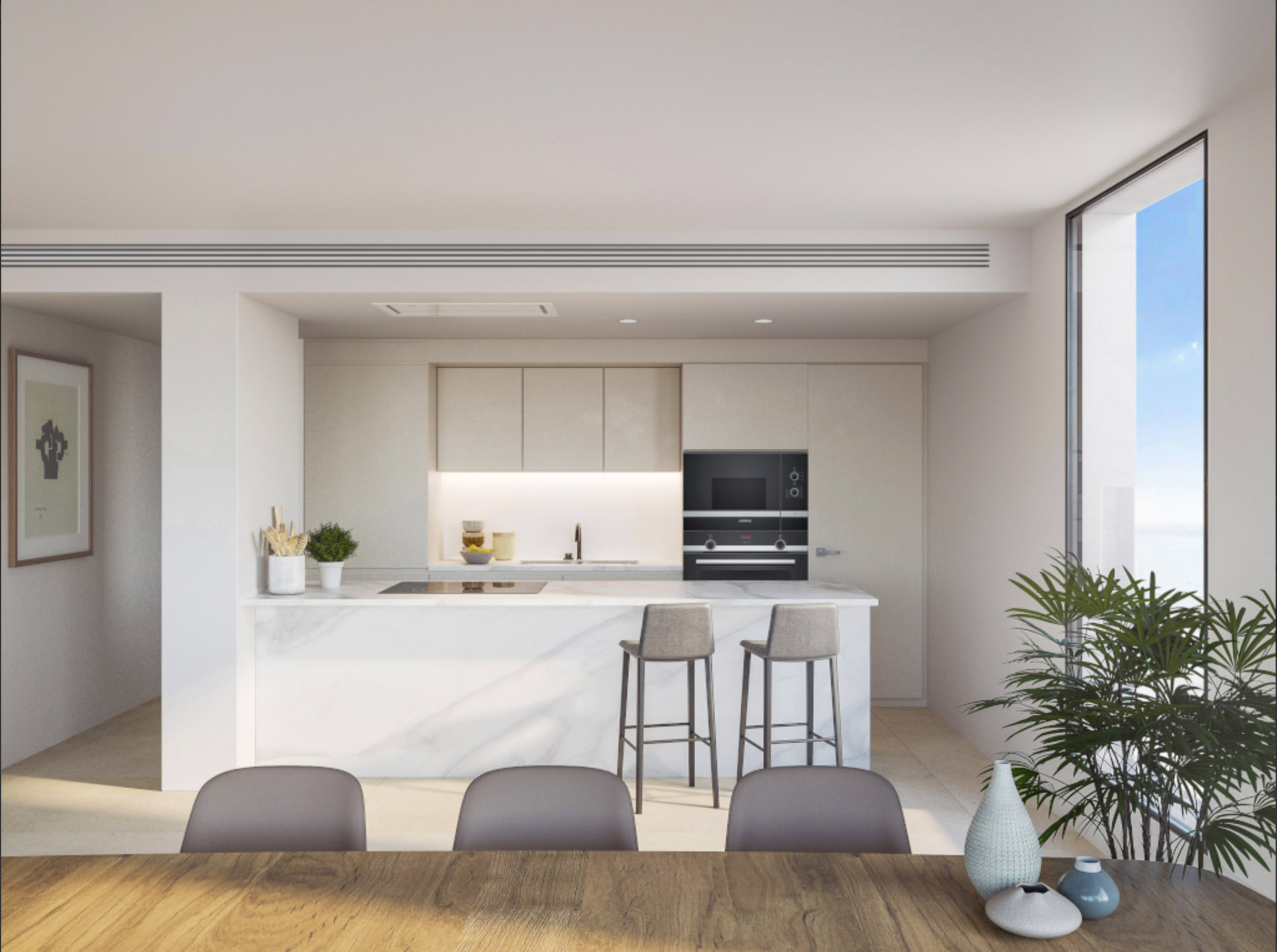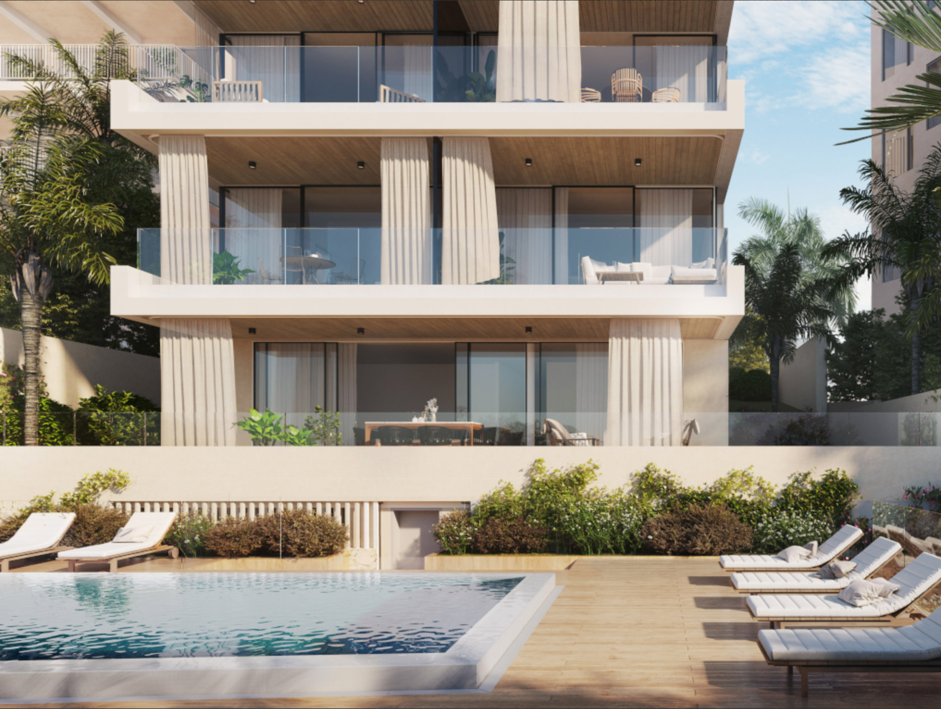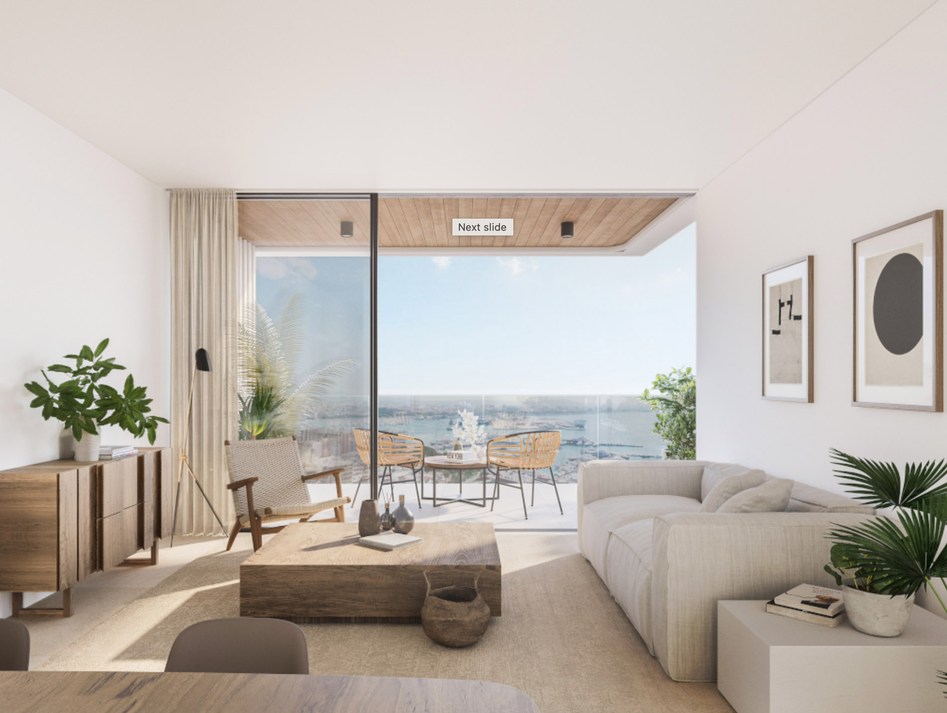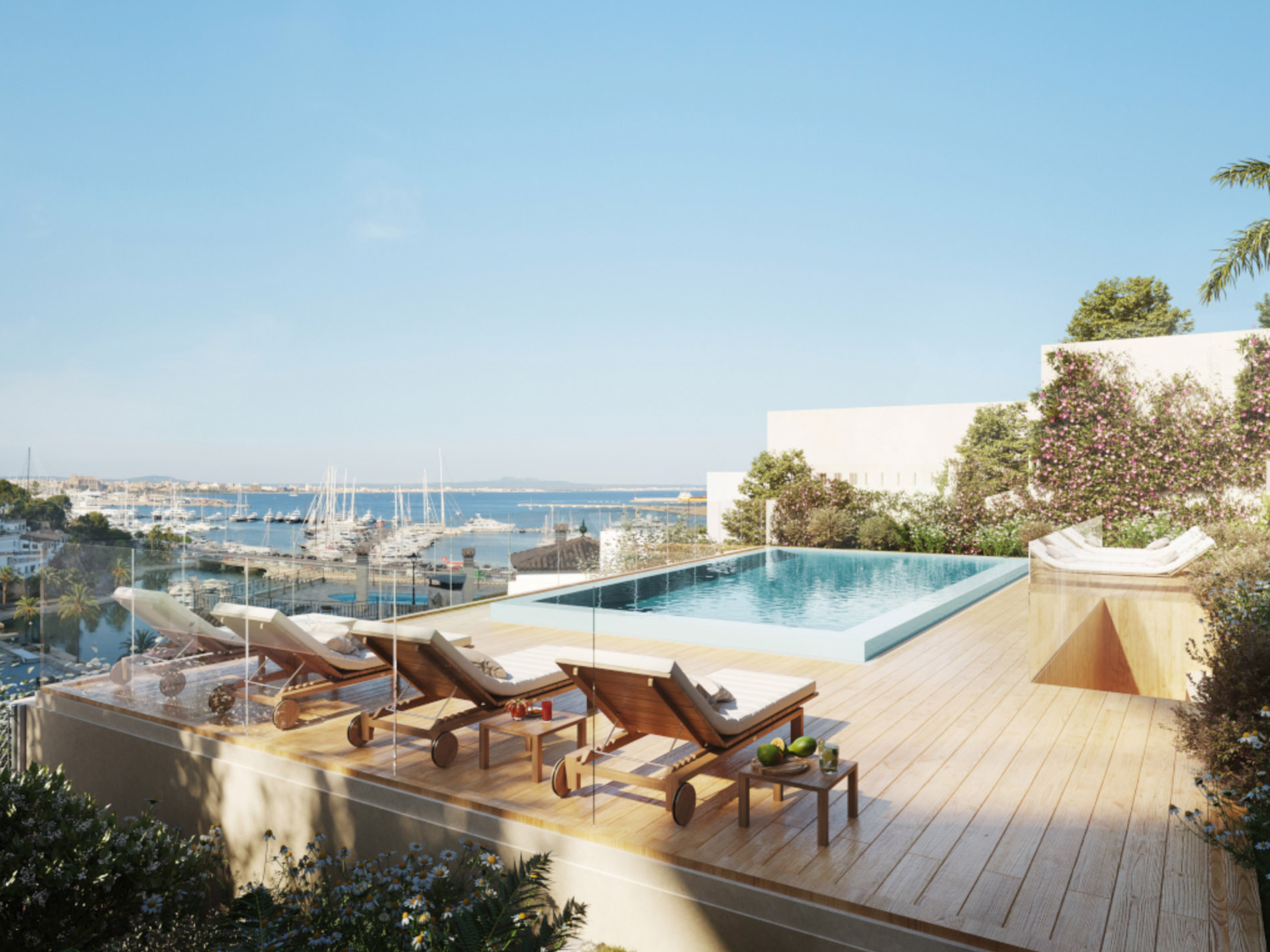 Cada apartamento ha sido meticulosamente diseñado con un enfoque contemporáneo, fusionando líneas limpias y elegancia atemporal. Los espacios abiertos y luminosos crean una armoniosa fusión entre el interior y el exterior, amplificados por generosos ventanales que enmarcan las cautivadoras vistas al puerto de Palma y la icónica catedral "La Seu".