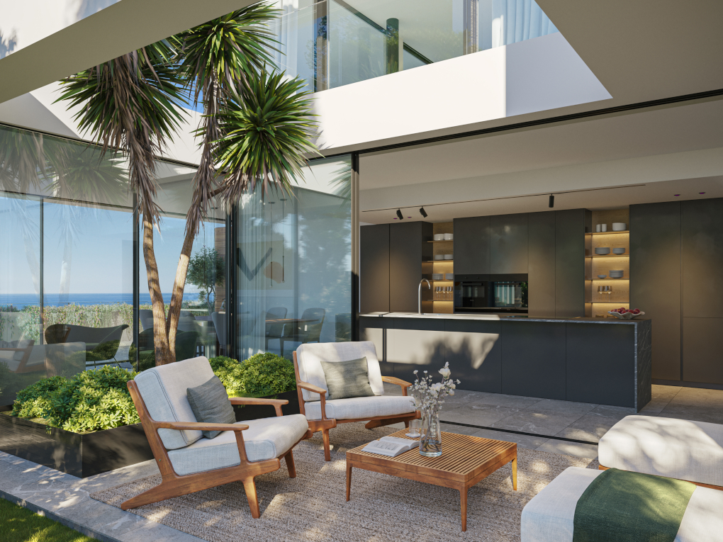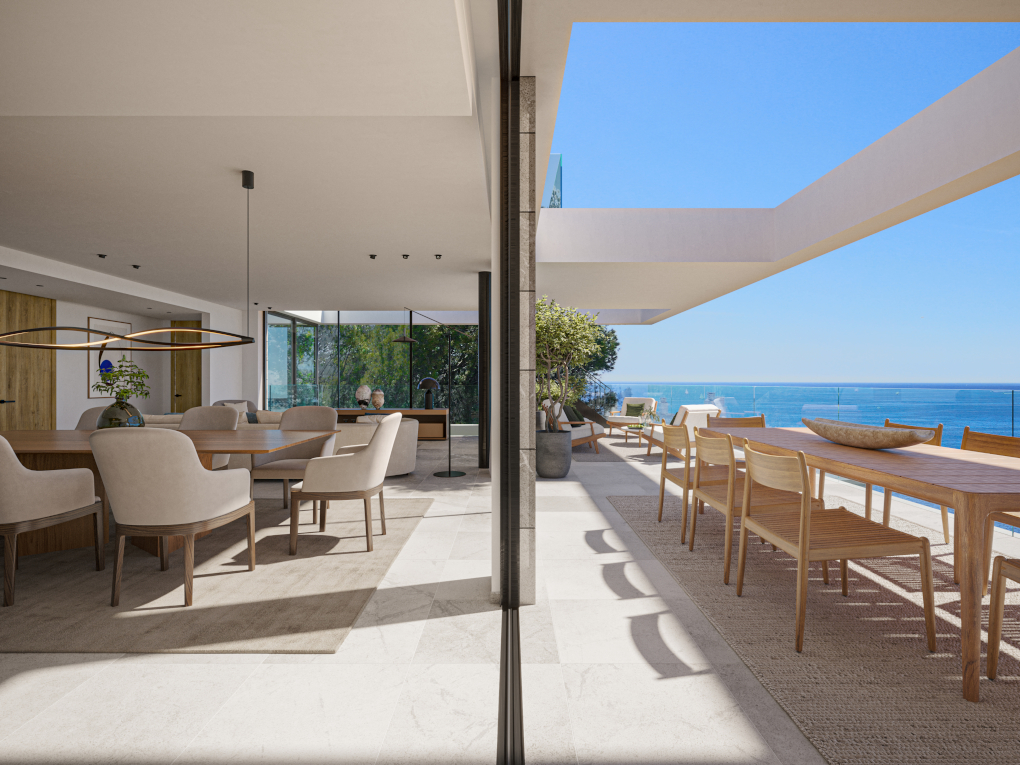 La exclusiva promoción de obra nueva Ever Marivent se está construyendo en una ubicación tranquila pero céntrica en Cala Major, a sólo unos metros del palacio real de Marivent. Consta de 14 apartamentos de alta calidad con 2 a 4 dormitorios en dos edificios con orientación suroeste y arquitectura contemporánea. Las zonas comunes de Ever Marivent incluyen 2 atractivas piscinas con solárium para tomar el sol, jardines mediterráneos, un gimnasio con aire acondicionado, una zona de spa y 2 garajes subterráneos. El centro de de Palma está a sólo 10 minutos en coche y en pocos minutos se puede llegar a pie a la bonita playa de Cala Major. Además de la buena ubicación y del equipamiento de alta calidad, las luminosas residencias en Ever Marivent disfrutan de una fantástica vista al mar. Incluso la mayoría de las viviendas en planta baja con jardín ofrecen una bonita vista al mar. Gracias a los grandes ventanales en el salón y en los dormitorios, se puede disfrutar de la vista desde diferentes zonas del apartamento. Otra ventaja de todas las unidades es la distribución abierta y las amplias terrazas parcialmente cubiertas. El corazón de cada vivienda es el salón-comedor con cocina integrada con isla y acceso directo a la terraza. Numerosos dormitorios ofrecen acceso a zonas exteriores privadas. El dormitorio principal siempre cuenta con baño en suite y, dependiendo del tamaño de la vivienda, hay otros 1-3 dormitorios y 1-2 baños. Además de las grandes terrazas en el nivel de vivienda, los áticos también ofrecen un solárium con impresionantes vistas al mar. Aquí podrá disfrutar de maravillosas puestas de sol con una copa de vino o veladas de barbacoa con amigos. El equipamiento de alta calidad de los apartamentos de lujo incluye calefacción por suelo radiante, aire acondicionado, electrodomésticos integrados de Miele o similar, griferías de ICONICO, suelos de piedra natural "Gris Zarci", domótica KNX o similar y mucho más. El precio de compra de cada vivienda incluye 2 plazas de garaje, una de los cuales cuenta con estación de carga para vehículos eléctricos. Ever Marivent es un pequeño oasis cerca de la ciudad y de la playa, que le ofrece un alto nivel de vida y muchas comodidades. Por lo tanto, una vivienda en este complejo no sólo es la propiedad perfecta para vacaciones, sino también es ideal como residencia para todo el año. La entrega está prevista para el tercer trimestre de 2025.