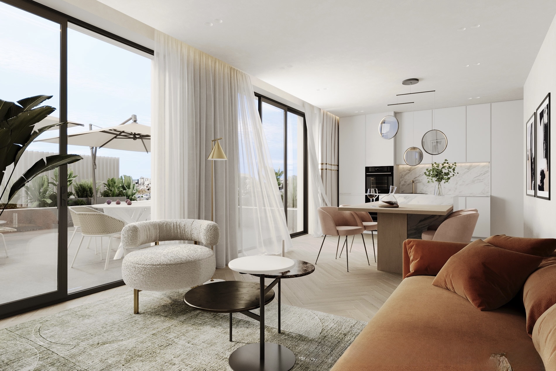 En una de las zonas más prometedoras de Palma, frente al Parc de Can Palou y a pocos pasos del Portixol, estas residencias de planta baja reinterpretan la vida urbana desde una perspectiva mediterránea. Su arquitectura contemporánea se integra con el entorno a través de líneas limpias, jardines privados y grandes superficies acristaladas que diluyen los límites entre interior y exterior. La luz natural inunda cada rincón, generando una atmósfera cálida, abierta y serena.