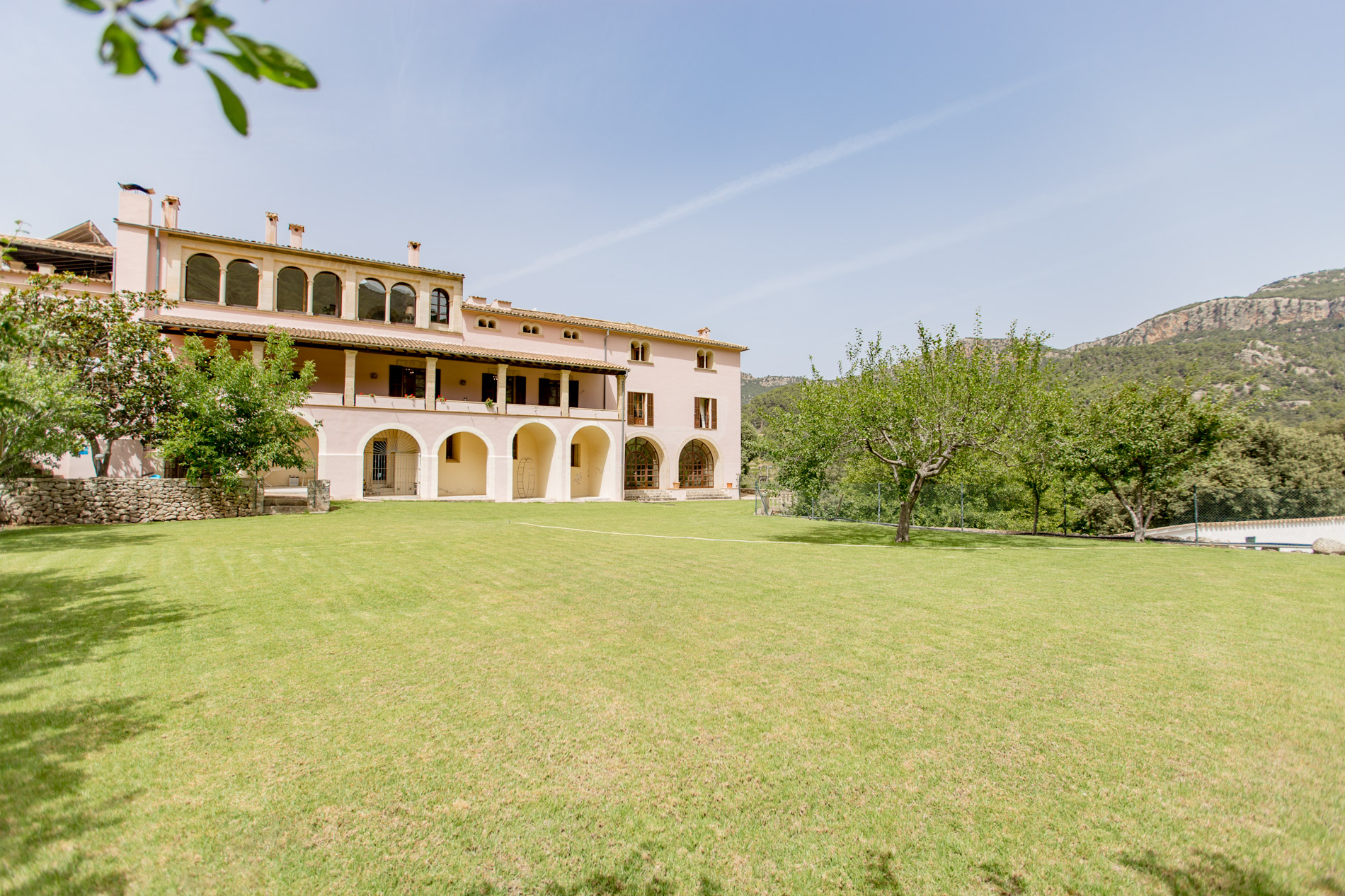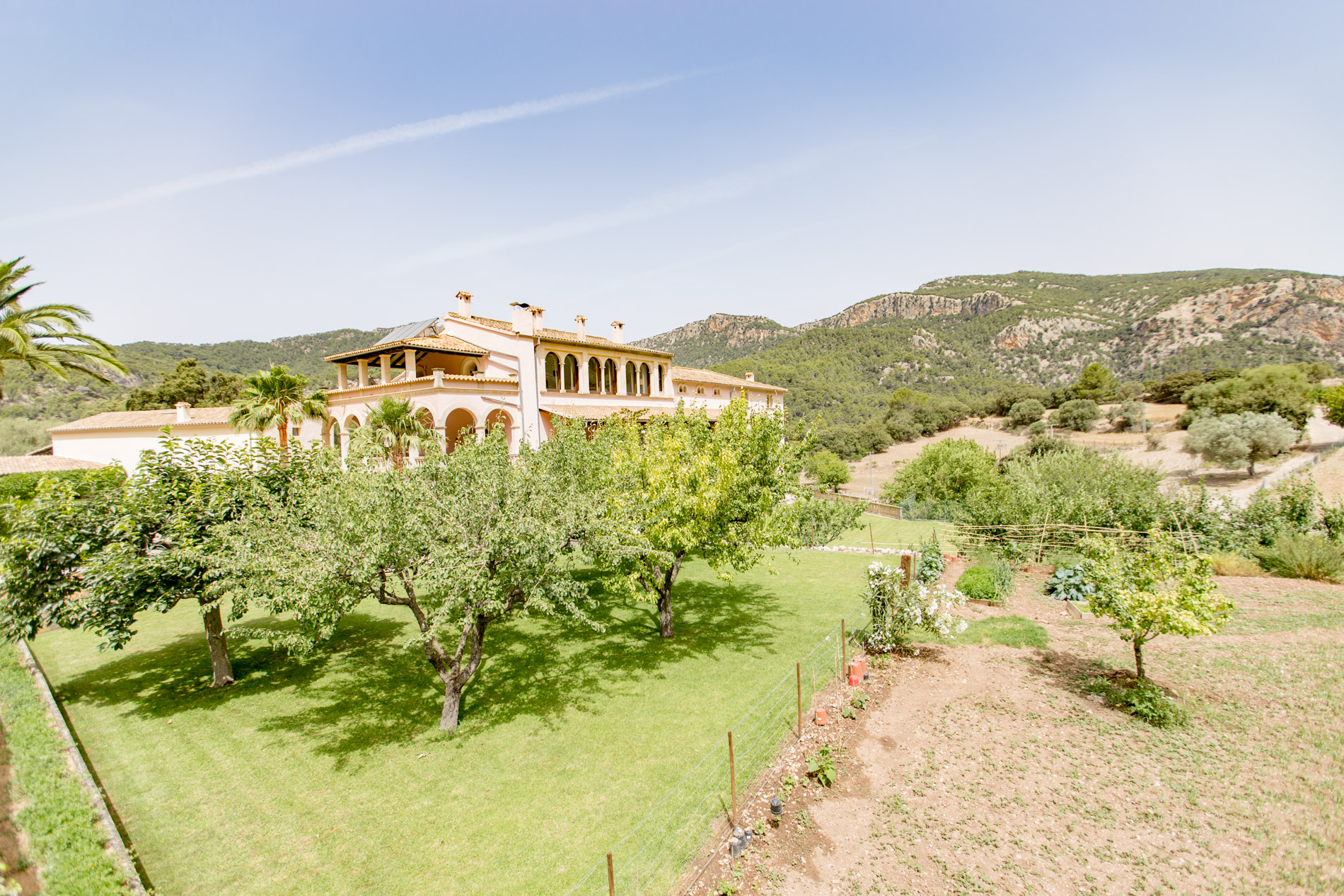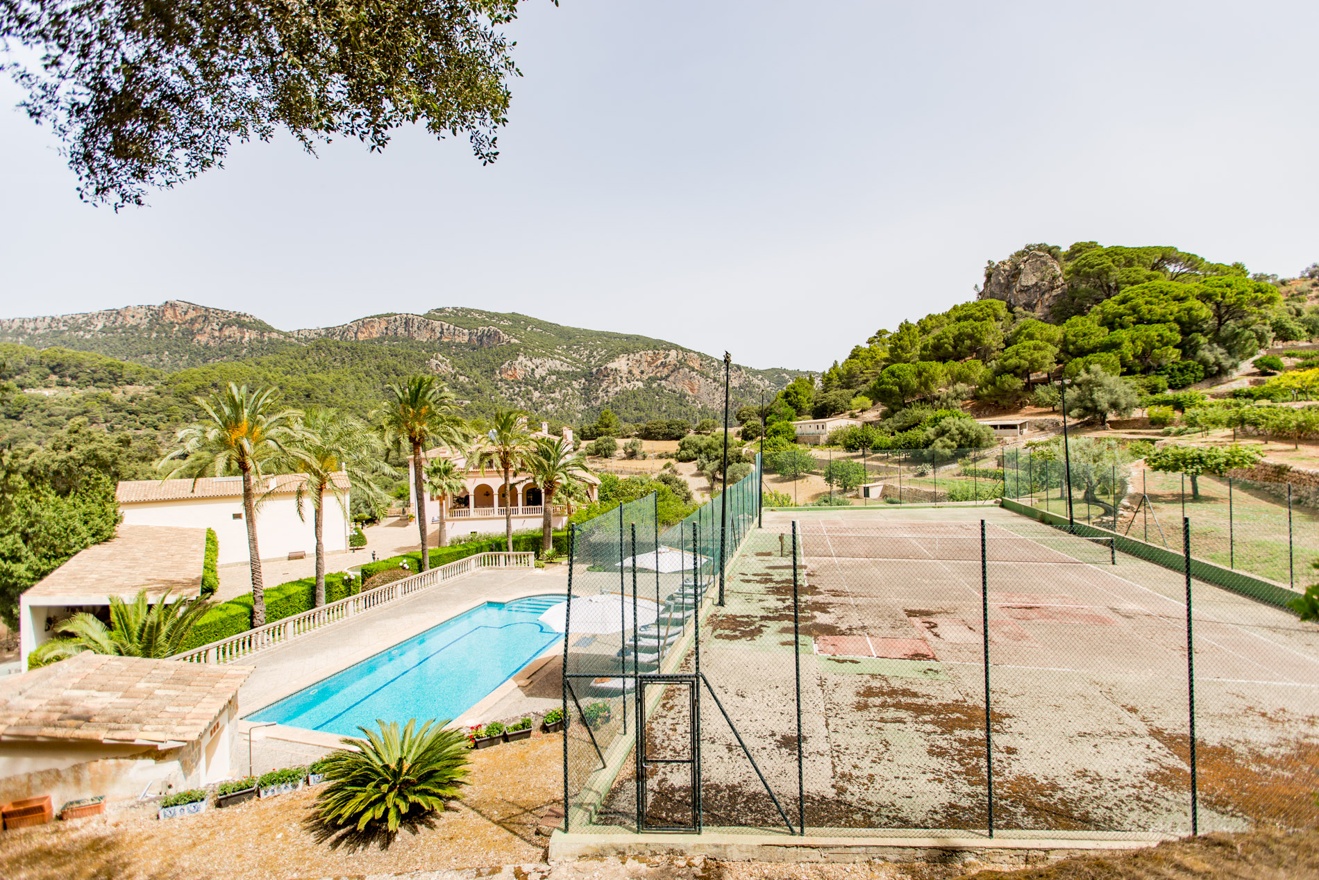 Hermosamente ubicado en la Tramuntana y a solo unos minutos de Esporles, esta singular finca del siglo XIX se extiende sobre 142 hectáreas de paisaje natural prístino y ofrece una privacidad inigualable. La mansión de 1.500 m² fue renovada extensamente en 1995 y cuenta con 12 dormitorios, incluyendo un apartamento separado para el personal. Las lujosas comodidades incluyen una gran piscina con vistas panorámicas, una cancha de tenis, establos, una capilla de 200 años de antigüedad y una prensa de aceitunas original. Al igual que todas las fincas históricas de Mallorca, aquí se valora mucho la autosuficiencia, lo que proporciona ventajas fiscales para el propietario. Se cultivan frutas y verduras, se crían ovejas y gallinas, y se producen alrededor de 1.200 litros de aceite de oliva anualmente. La propiedad también cuenta con su propio pozo de agua y una licencia de caza. Esta finca es ideal para celebraciones pequeñas y grandes, bodas, cumpleaños y todo tipo de eventos de alto nivel. Los huéspedes también pueden alojarse en uno de los edificios vecinos para asegurar la privacidad de la mansión.