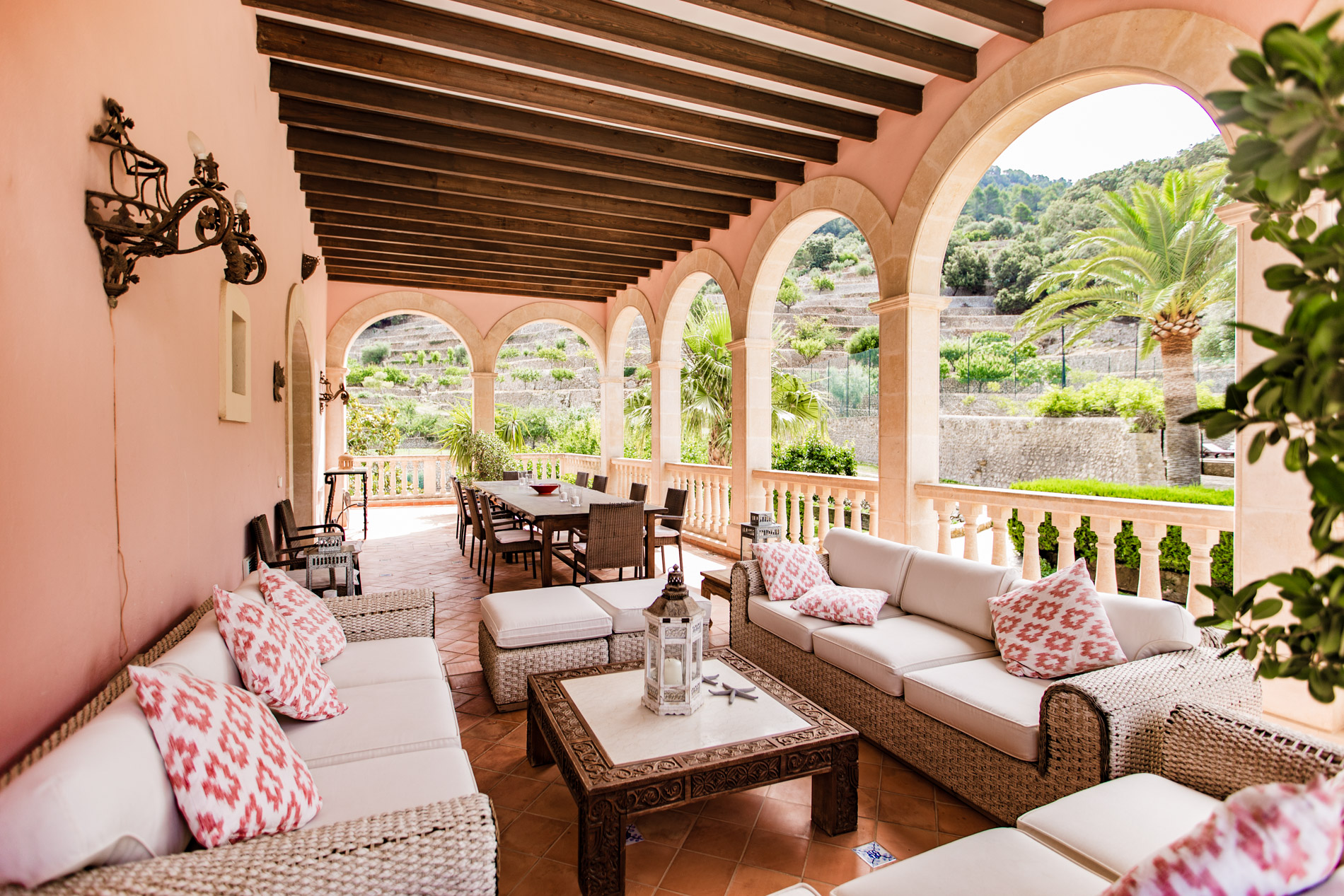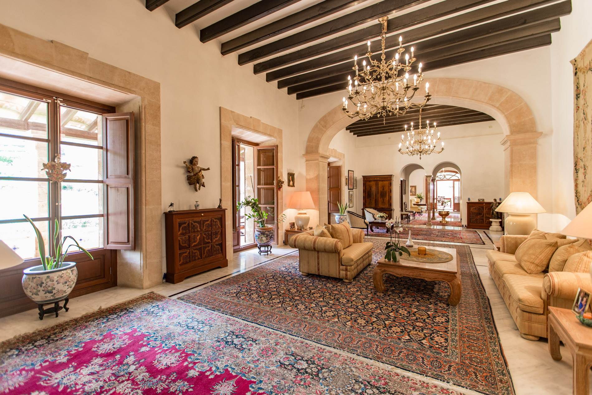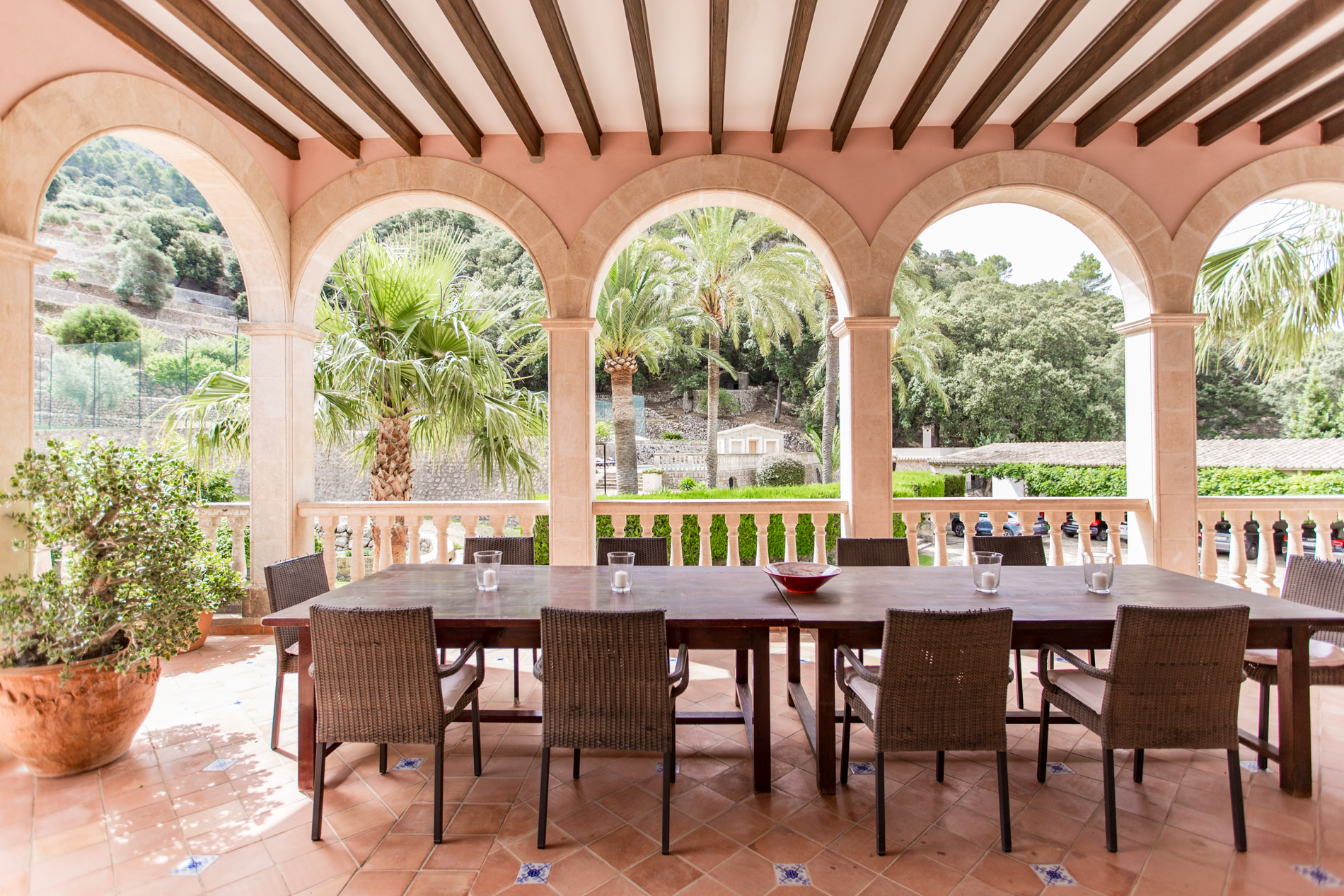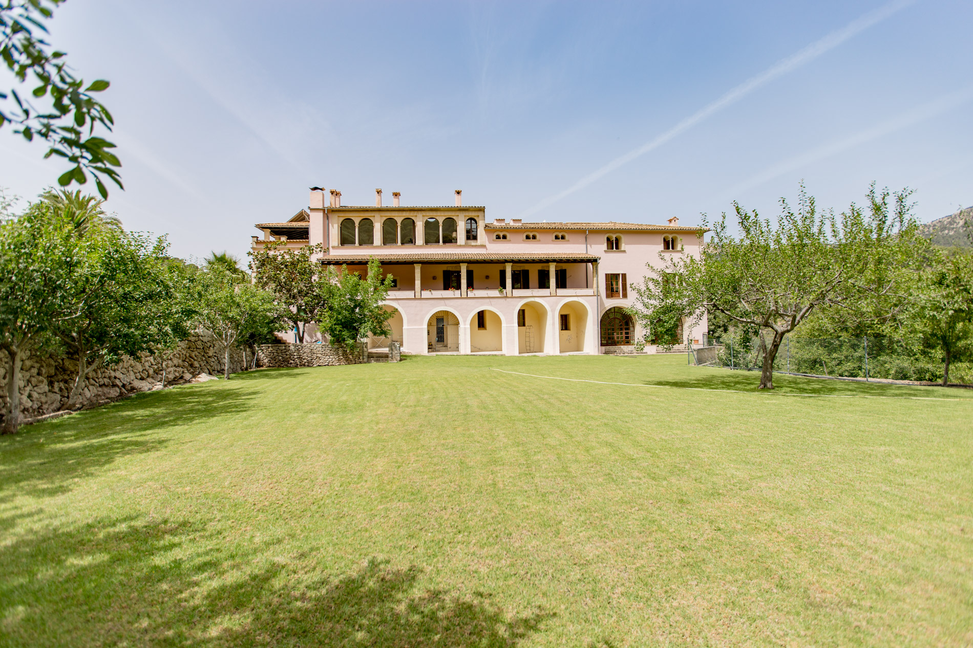 Hermosamente ubicado en la Tramuntana y a solo unos minutos de Esporles, esta singular finca del siglo XIX se extiende sobre 142 hectáreas de paisaje natural prístino y ofrece una privacidad inigualable. La mansión de 1.500 m² fue renovada extensamente en 1995 y cuenta con 12 dormitorios, incluyendo un apartamento separado para el personal. Las lujosas comodidades incluyen una gran piscina con vistas panorámicas, una cancha de tenis, establos, una capilla de 200 años de antigüedad y una prensa de aceitunas original. Al igual que todas las fincas históricas de Mallorca, aquí se valora mucho la autosuficiencia, lo que proporciona ventajas fiscales para el propietario. Se cultivan frutas y verduras, se crían ovejas y gallinas, y se producen alrededor de 1.200 litros de aceite de oliva anualmente. La propiedad también cuenta con su propio pozo de agua y una licencia de caza. Esta finca es ideal para celebraciones pequeñas y grandes, bodas, cumpleaños y todo tipo de eventos de alto nivel. Los huéspedes también pueden alojarse en uno de los edificios vecinos para asegurar la privacidad de la mansión.