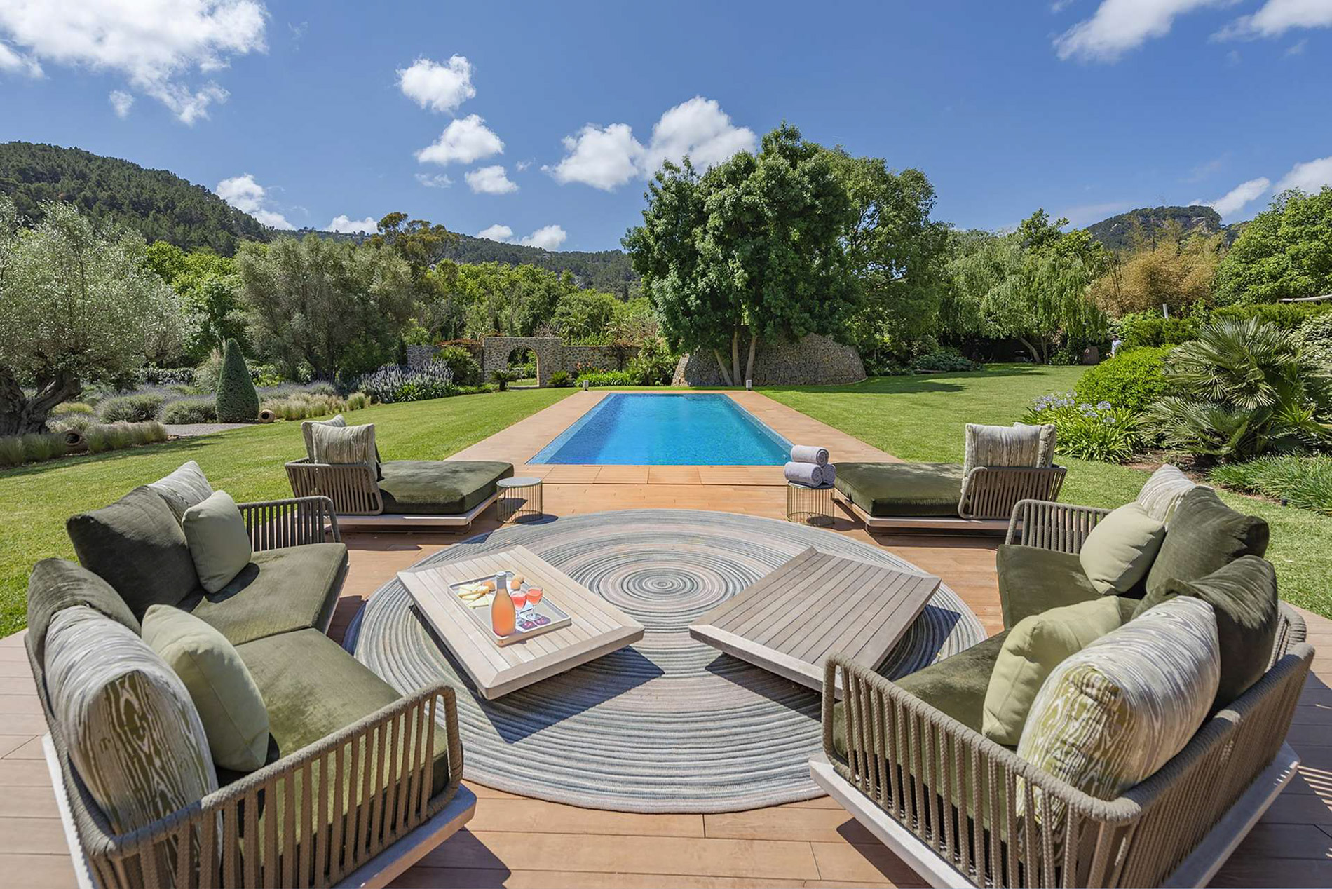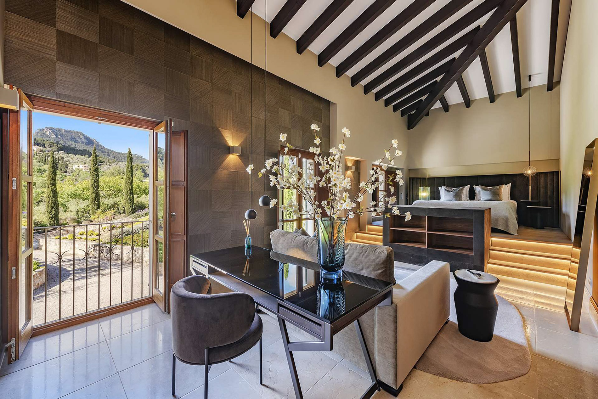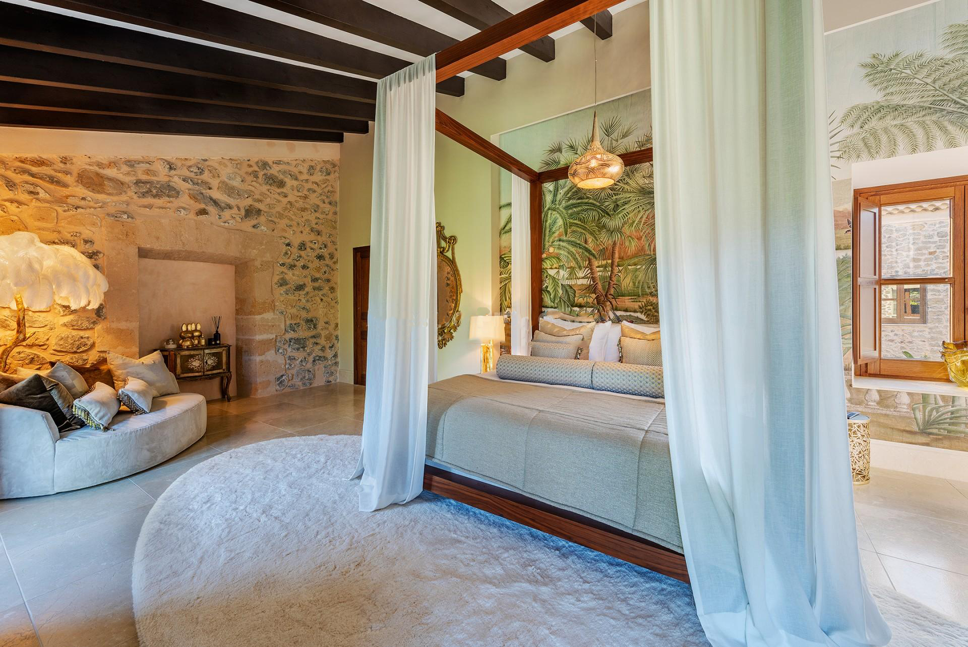 Finca histórica renovada con acabados de lujo con vistas fantásticas en Puigpunyent. 1.400 m2 construidos, 115.000 m2 de terreno, 9 habitaciones, 9 baños, varios salones, cocina equipada, zona de ocio, bodega, spa, dos piscinas y jardín.