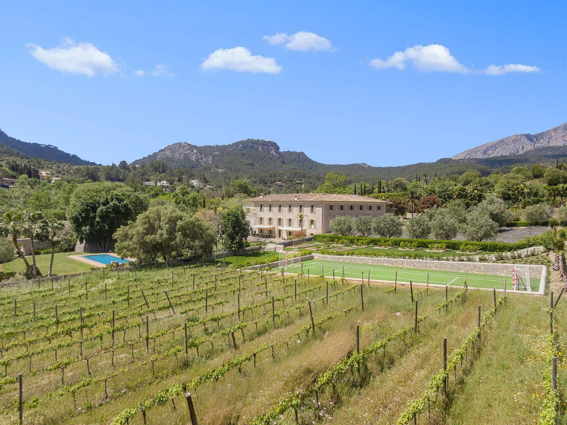 Una joya histórica en el corazón de Mallorca Esta espectacular finca mallorquina, cuya casa principal data de más de 200 años, ha sido completamente renovada con un gusto exquisito, respetando su esencia histórica pero incorporando todas las comodidades modernas. Rodeada de un extenso y encantador jardín, la propiedad cuenta con un viñedo para producir vino propio, árboles frutales y olivos, campos de lavanda, una gran piscina y varias zonas de relax al aire libre que invitan a disfrutar del clima mediterráneo. Además, en la finca se encuentra un edificio independiente con capacidad para seis vehículos y maquinaria agrícola. La propiedad también incluye tres pozos de agua propios y una encantadora casa de huéspedes independiente con dormitorio, cocina y salón. Ubicada en las afueras del pintoresco pueblo de Puigpunyent, a tan solo 15 minutos de la vibrante capital de Palma de Mallorca y a 25 minutos del aeropuerto, esta finca ofrece la combinación perfecta de tranquilidad y acceso rápido a la ciudad y conexiones internacionales. Puigpunyent, con su encanto tradicional, ofrece una variedad de tiendas, bares y restaurantes, además del lujoso Gran Hotel Son Net de 5 estrellas. Las vistas son simplemente inmejorables, con la majestuosa Sierra de Tramuntana, declarada Patrimonio de la Humanidad, como telón de fondo. El acogedor patio central, cubierto por una antigua parra que produce generosas cosechas de uvas, es uno de los muchos rincones con encanto que tiene esta finca. Las cuatro alas de la casa ofrecen amplios y versátiles espacios, con la elegancia de una gran mansión. Las habitaciones, todas suites, oscilan entre los 50m² y 100m², con dormitorios de más de 45m², cada uno con grandes ventanales o puertas francesas que ofrecen vistas espectaculares. El suelo de la casa combina piedra natural con una textura cálida y suave, mientras que los dormitorios lucen elegantes parqués de roble. Entre las áreas de ocio, se incluyen una sala de billar, una biblioteca, dos amplios salones con chimeneas majestuosas, un comedor y una cocina de diseño, creada por expertos. Además, la propiedad dispone de una acogedora zona "chill-out" y una impresionante bodega con techos abovedados. Los baños son luminosos y amplios, con duchas grandes, bañeras, espejos empotrados y muros de piedra que añaden un toque de lujo. La cocina y el comedor, con vistas al huerto de cítricos, se llenan de luz natural y crean un ambiente cálido y acogedor. Desde la terraza, una escalera conduce al jardín y al área de spa, que incluye un espacio ideal para sauna, gimnasio, vestuarios y una piscina interior de 15 metros, con un bar que ofrece servicio tanto interior como exterior. MallorcaSite, tu agencia inmobiliaria en Mallorca, recomienda esta finca por su exquisita renovación, su privilegiada ubicación, sus amplios espacios, su absoluta privacidad y su inigualable encanto.