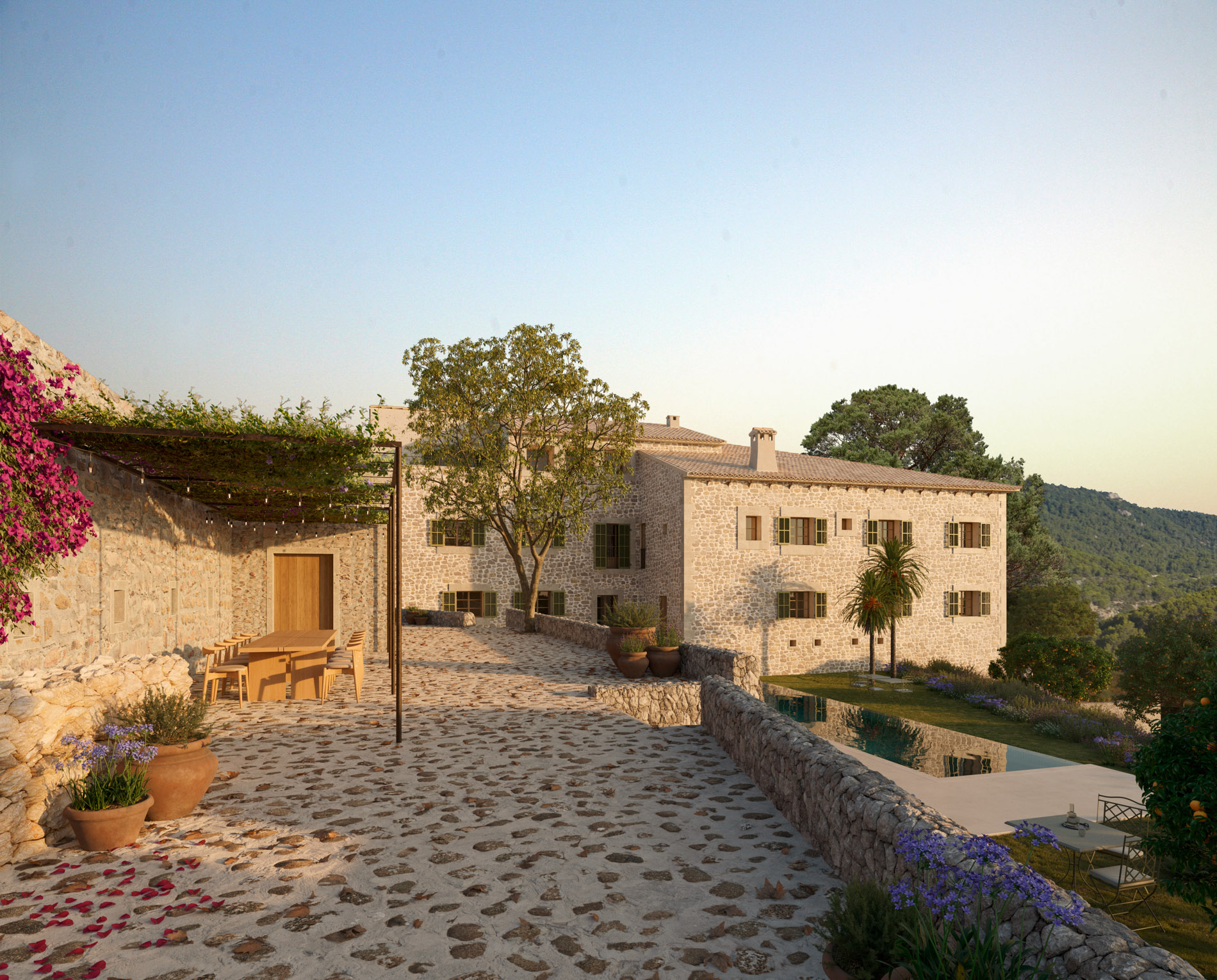 Un refugio excepcional en el corazón de la Serra de Tramuntana, una finca de 330.000 metros cuadrados que encarna la esencia más auténtica de Mallorca. Con orígenes en el siglo XVIII, esta antigua possessió se encuentra actualmente en proceso de una cuidada restauración, concebida para preservar su valioso patrimonio. Entre sus elementos más singulares se encuentra un complejo sistema histórico de gestión y almacenamiento de agua, testimonio vivo de la cultura y la historia de la isla. La intervención paisajística, ya en marcha, ha comenzado a recuperar la riqueza agrícola de la finca. Ya se ha plantado un impresionante viñedo de 4,5 hectáreas con variedades como Sauvignon Blanc y Mantonegro, además de conservarse olivares centenarios y establecerse un amplio huerto de frutales con cítricos, almendros, higueras y granados. La producción de aceite de oliva y miel elaborada con abejas locales ya está en funcionamiento, anticipando el renacer de una vida rural plena y autosuficiente. La vivienda principal, que contará con más de 2.000 metros cuadrados construidos, está diseñada para fusionar la arquitectura tradicional mallorquina con un estilo contemporáneo y minimalista. Una vez finalizada, albergará nueve dormitorios, siete de ellos en suite, distribuidos en espacios generosos y luminosos donde la piedra balear, la madera y los tejidos naturales como el lino dialogan con elementos escultóricos que aportan elegancia y serenidad. Cada ambiente ha sido proyectado para maximizar la conexión con el entorno, regalando vistas abiertas a viñedos y montañas. Entre las futuras instalaciones de la finca se incluyen un spa y zona de bienestar, una piscina infinita que se asoma al paisaje natural, patios interiores, terrazas orientadas al sol mediterráneo, una bodega subterránea y un taller, todos ellos concebidos como un homenaje contemporáneo a la funcionalidad de las antiguas possessions. Los exteriores están siendo diseñados con el máximo respeto por la naturaleza: muros de piedra seca, caminos de tierra compactada y jardines de plantas aromáticas como lavanda y romero evocan el carácter silvestre y mediterráneo del lugar. La finalización del proyecto está prevista para finales de 2026, lo que convierte esta propiedad en una oportunidad excepcional para formar parte de un legado histórico en una de las zonas más bellas y auténticas de Mallorca. MallorcaSite, su agencia inmobiliaria en Mallorca, recomienda esta propiedad por su privilegiada ubicación, su valor patrimonial y el carácter único de su restauración.